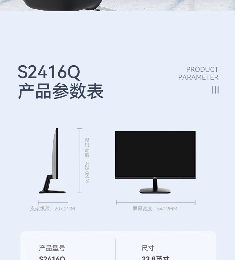 HKC 23,8-Zoll-2K-IPS-Display, 100-Hz-E-Book-Modus, geringes Blaulicht, flimmerfrei, großer Farbraum, Heim-, Geschäfts-, Büro-Computermonitor S2416Q
