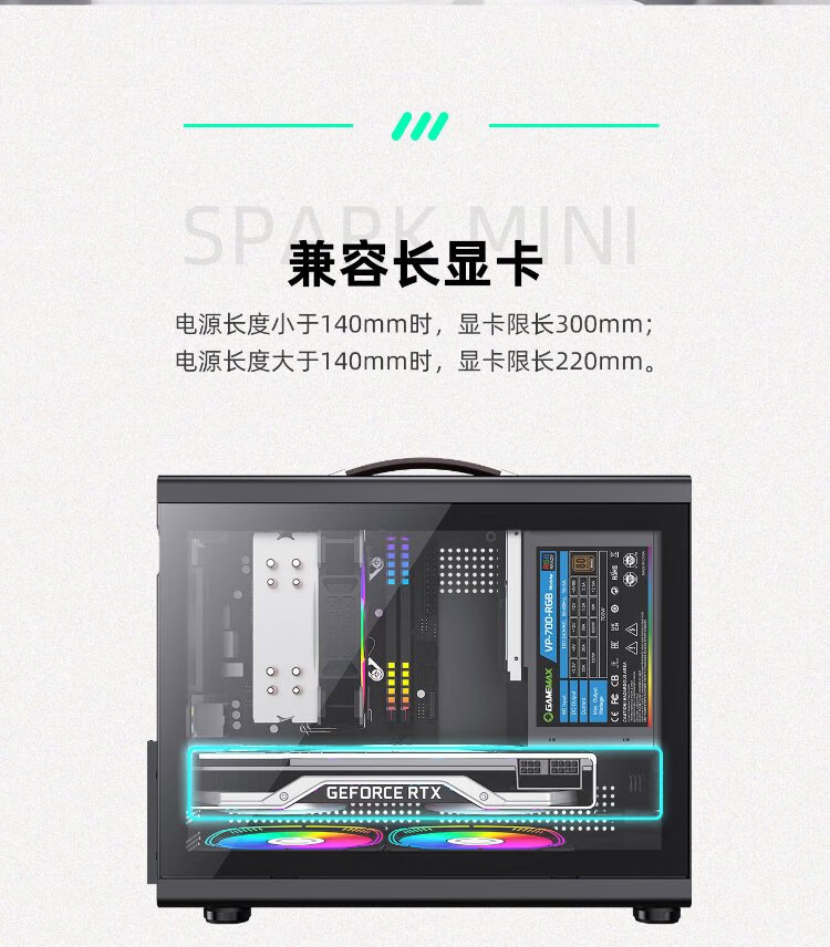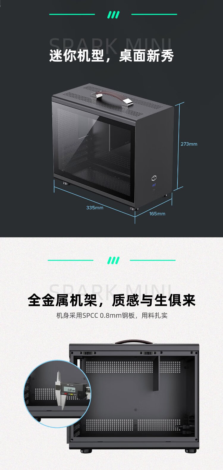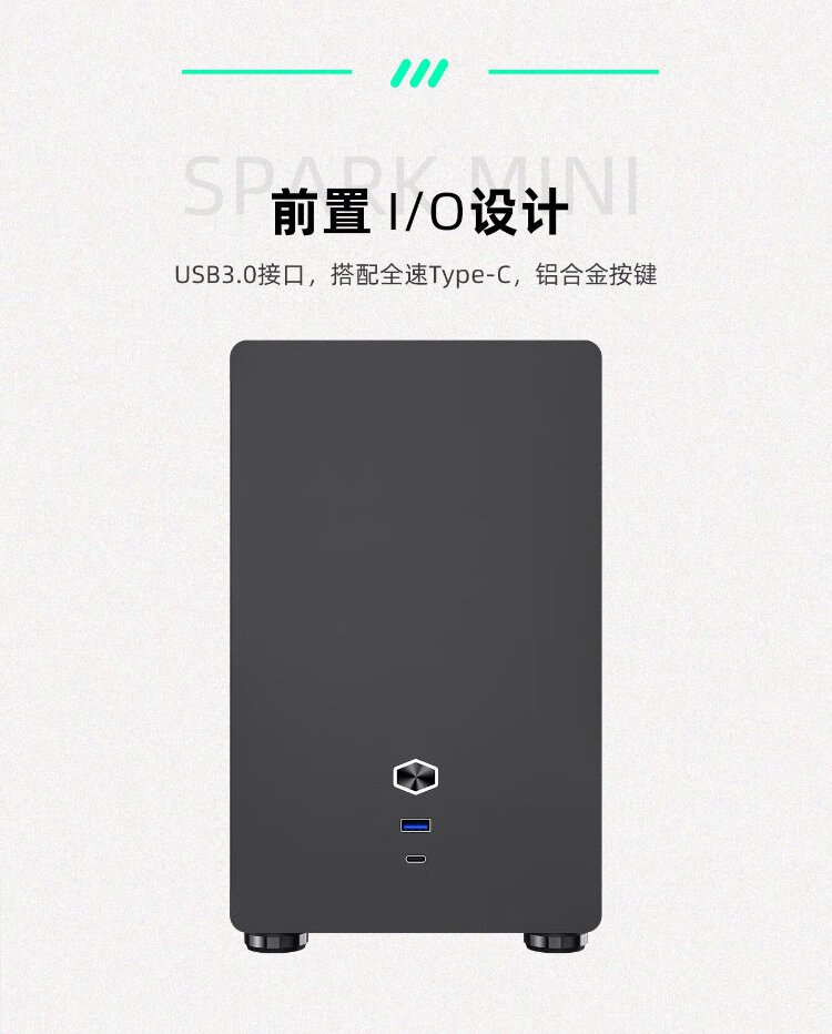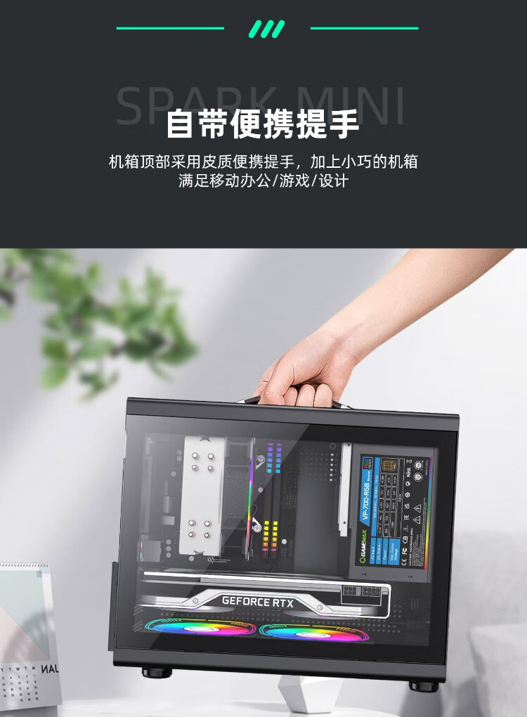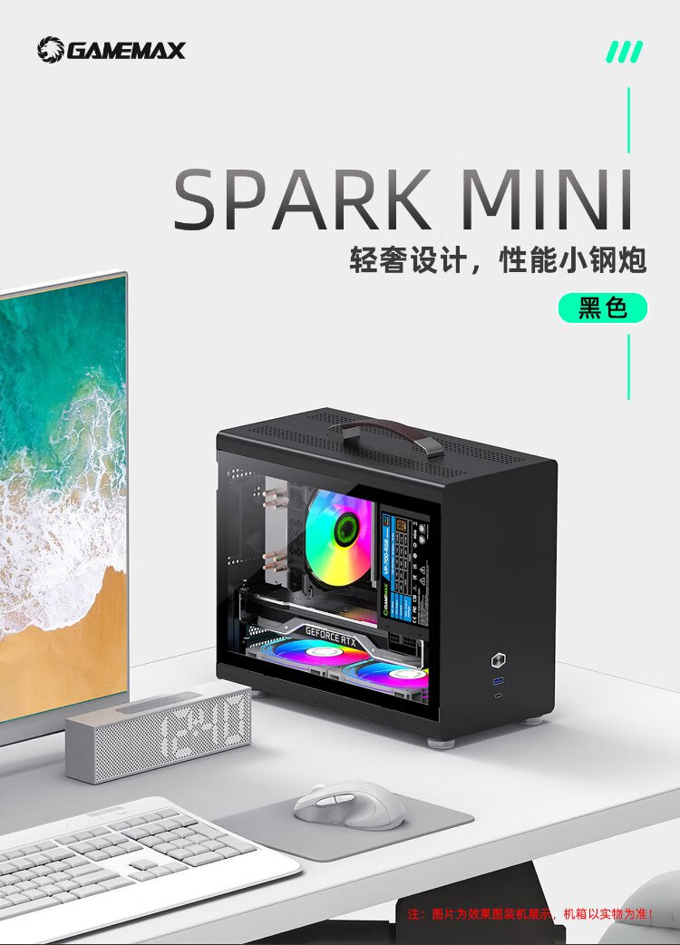 游戏帝国(GAMEMAX)Spark火种Mini手提电脑机箱/ITX塔式散热黑色Typc-C(0.8mm/侧透/便携小钢炮/ATX电源)