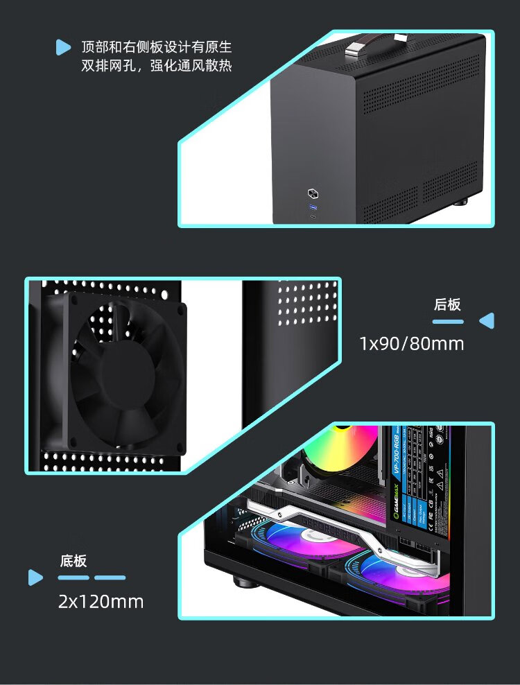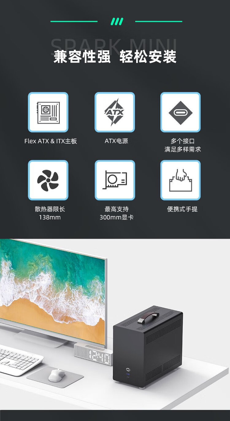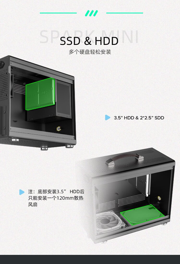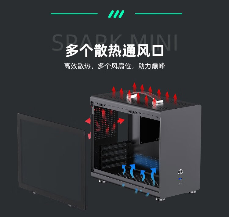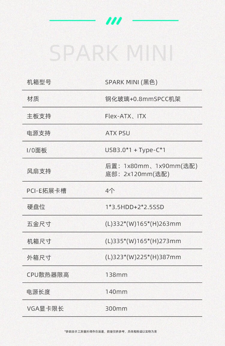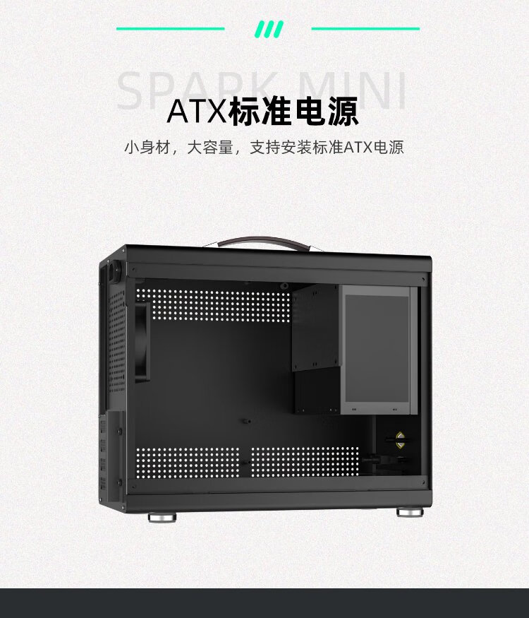 游戏帝国(GAMEMAX)Spark火种Mini手提电脑机箱/ITX塔式散热黑色Typc-C(0.8mm/侧透/便携小钢炮/ATX电源)