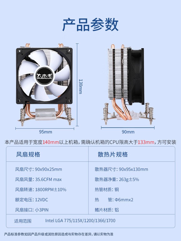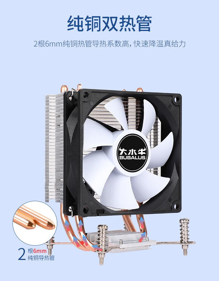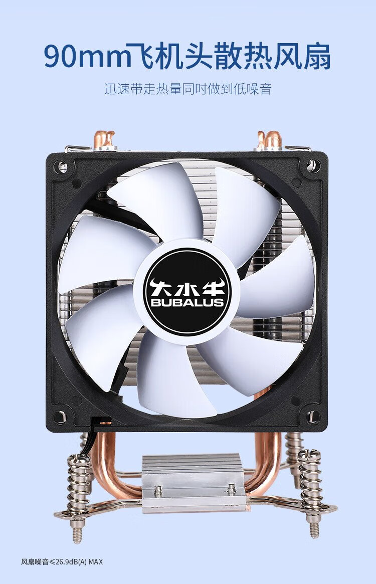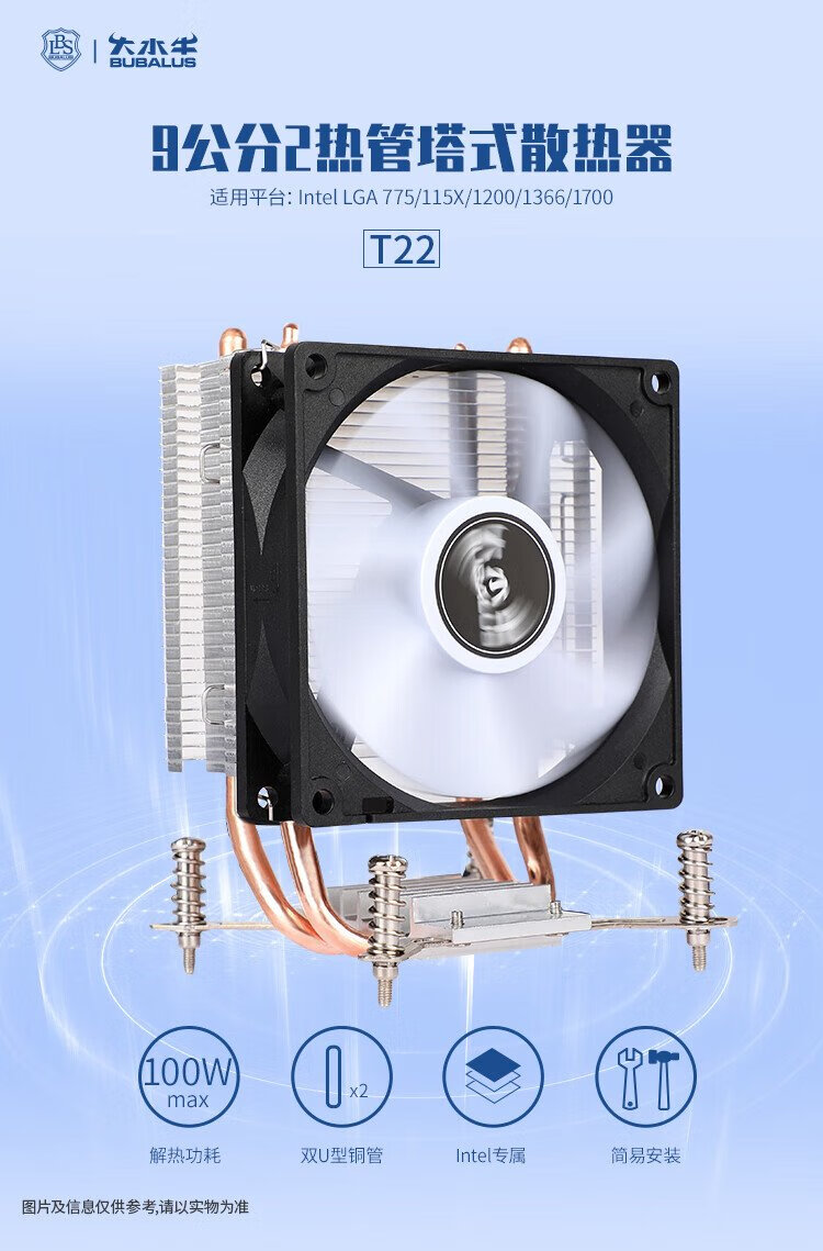 Радиатор процессора BUBALUS T22 (2 тепловые трубки/мультиплатформенность Intel/поддержка матового вентилятора 1700/9 см/замок для легкой установки/воздушное охлаждение корпуса компьютера)