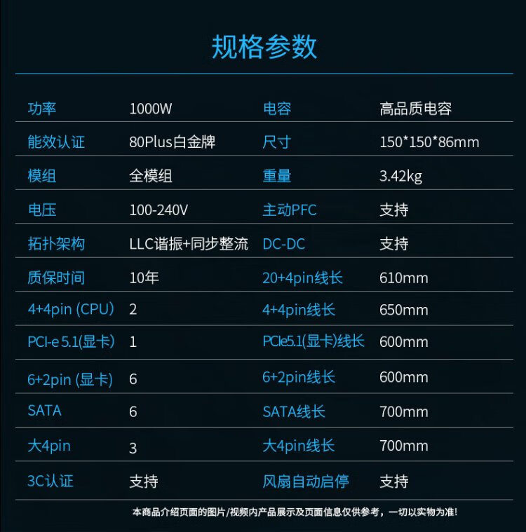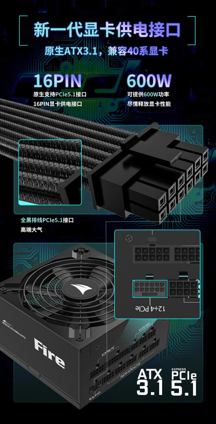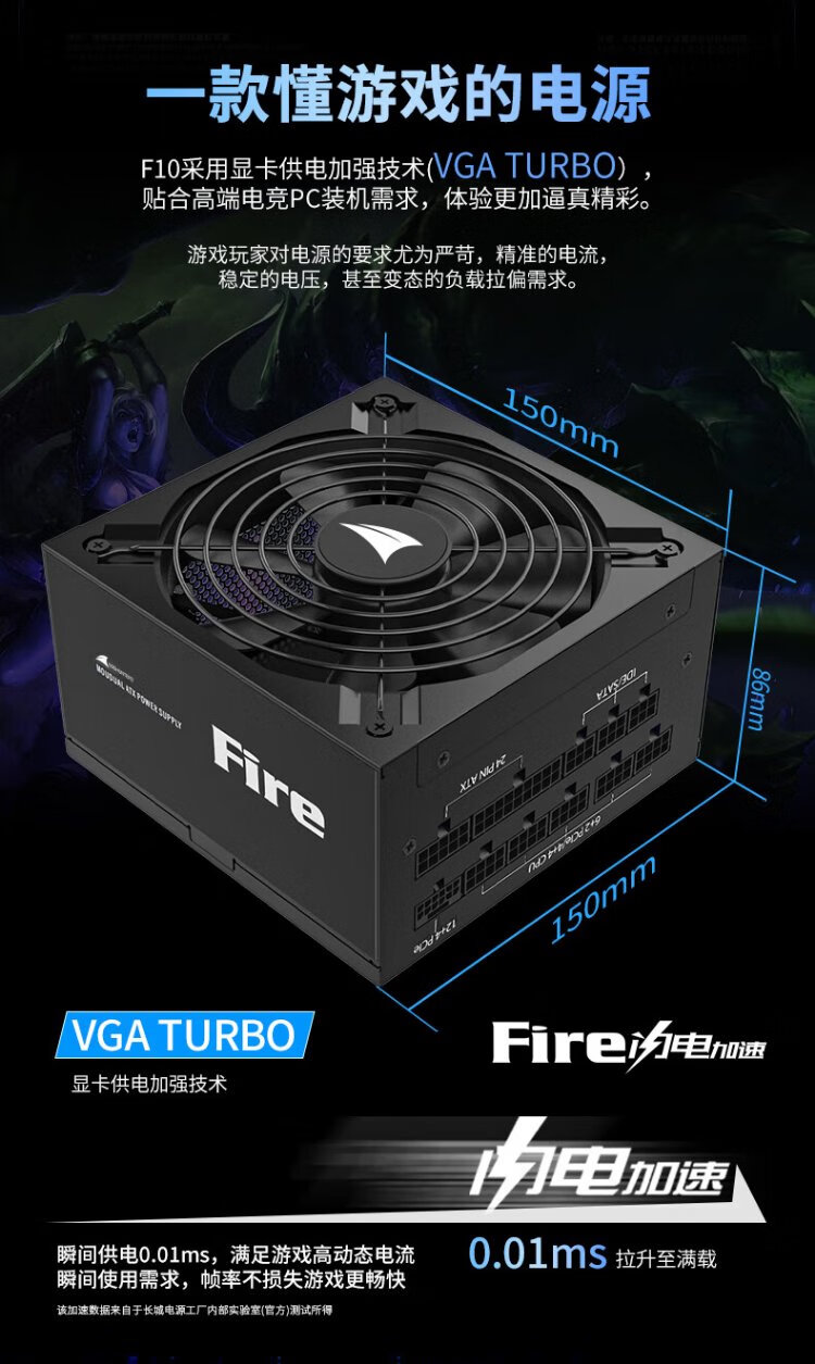 Great Wall-zertifiziertes 1000-W-F10-Platinum-Vollmodul-Netzteil (ATX3.1/natives PCIe5.1/automatischer Start/Stopp/volle Spannung/Blitzbeschleunigung)