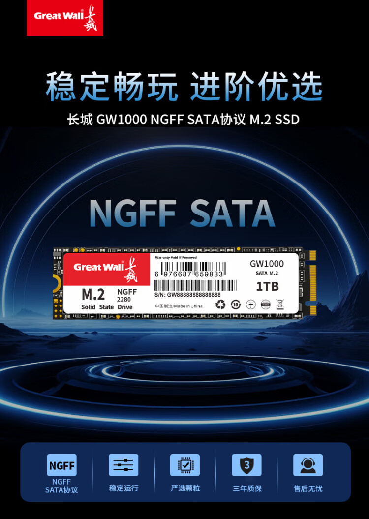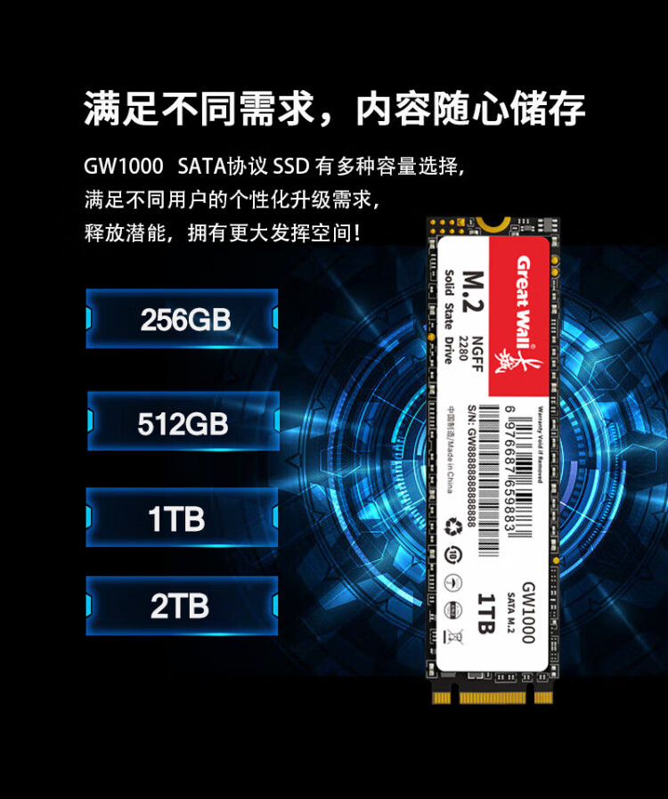 Great Wall 256GB SSD solid state drive M.2 interface SATA protocol reading speed 540MB/S GW1000 series