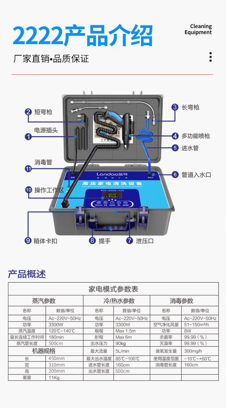 Blue Guide Home Appliance Cleaning Equipment Range Hood Air Conditioning Water Heater Multi-function High-Temperature High Pressure Steam Cleaner