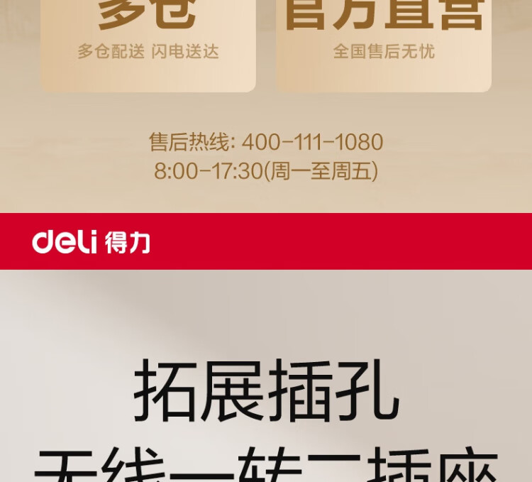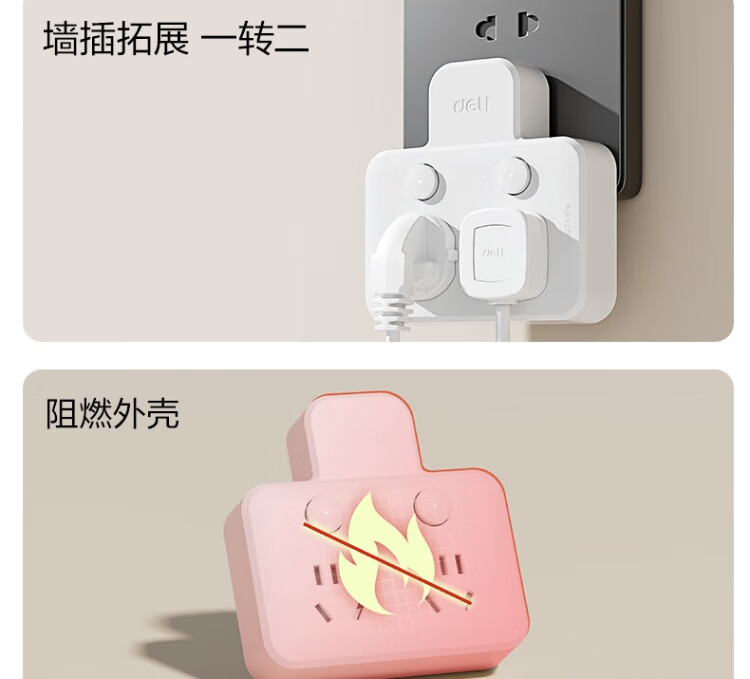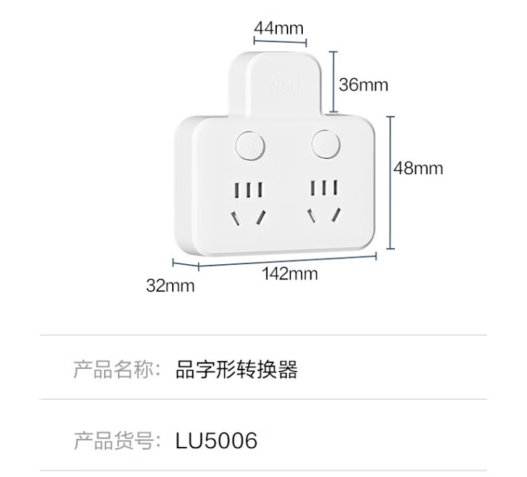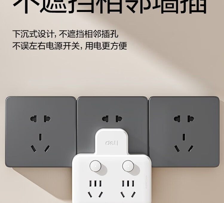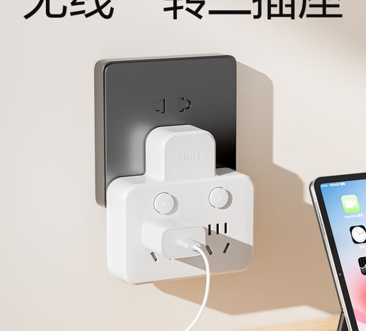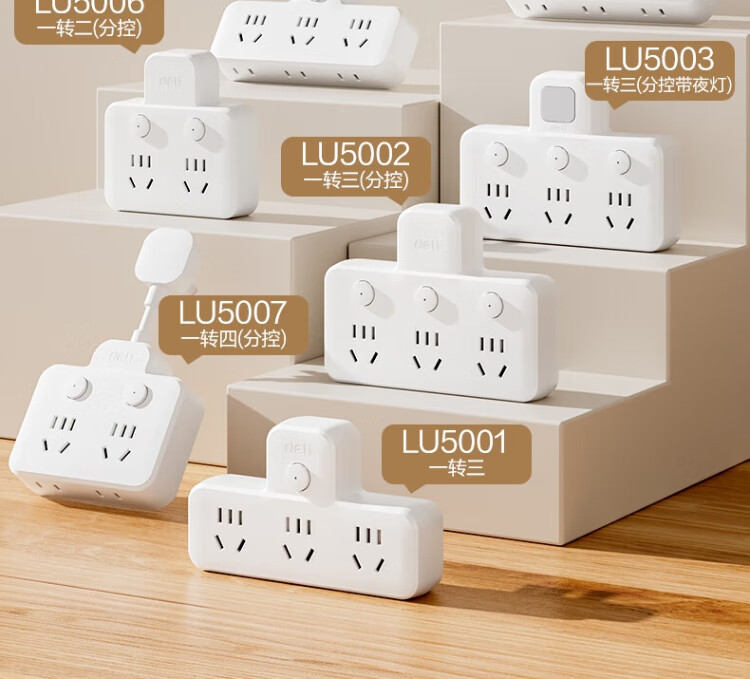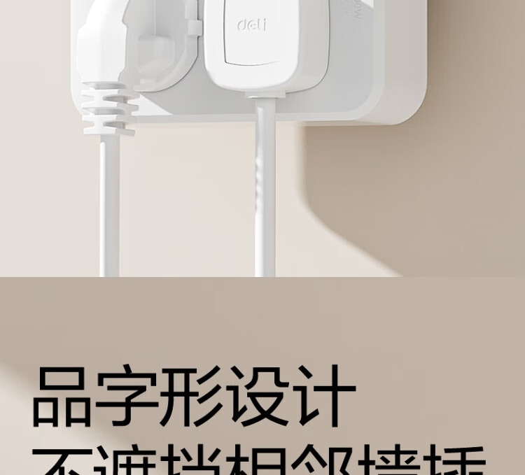 得力(deli)3C认证国标插座 品字形无线插座/转换插头/电源转换器/一转多插座/插排/排插 分控一转二 LU5006