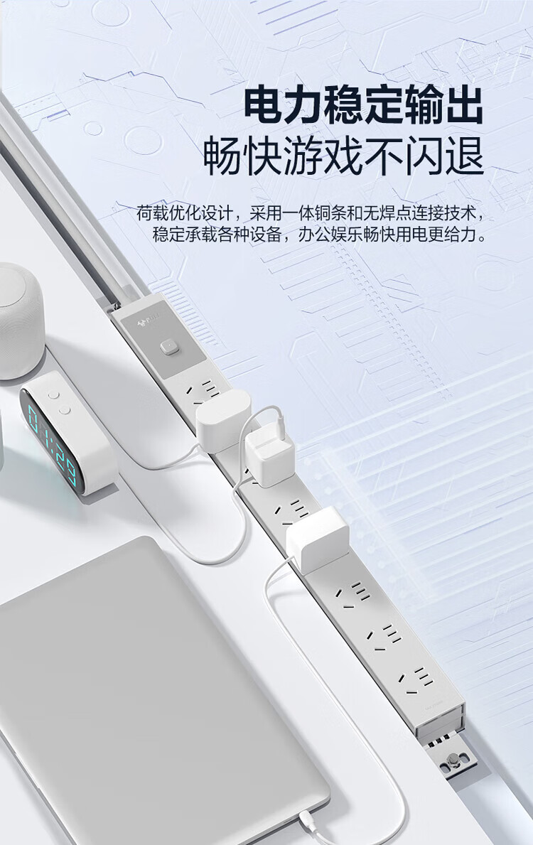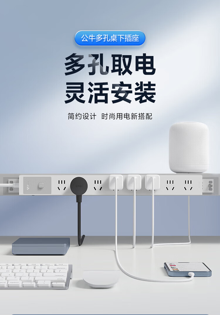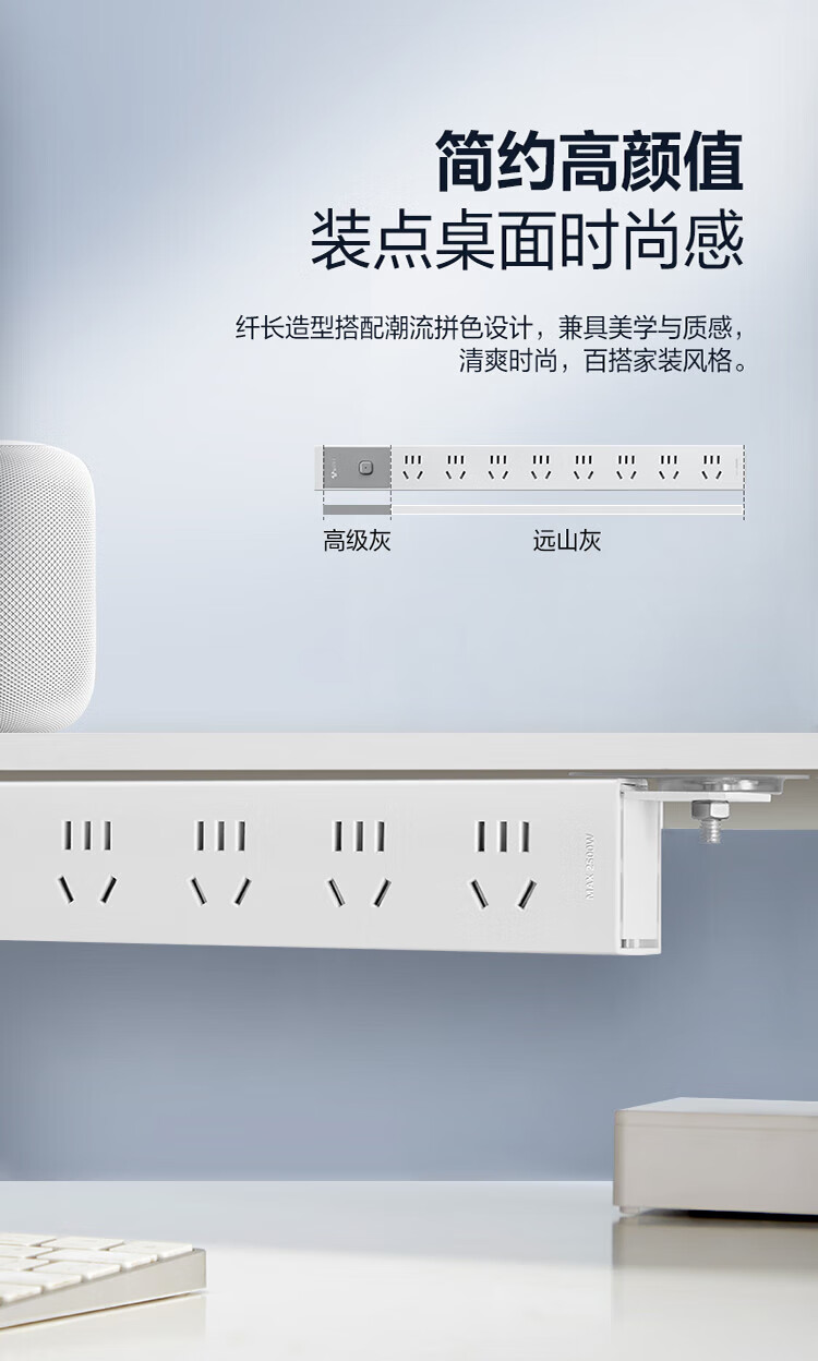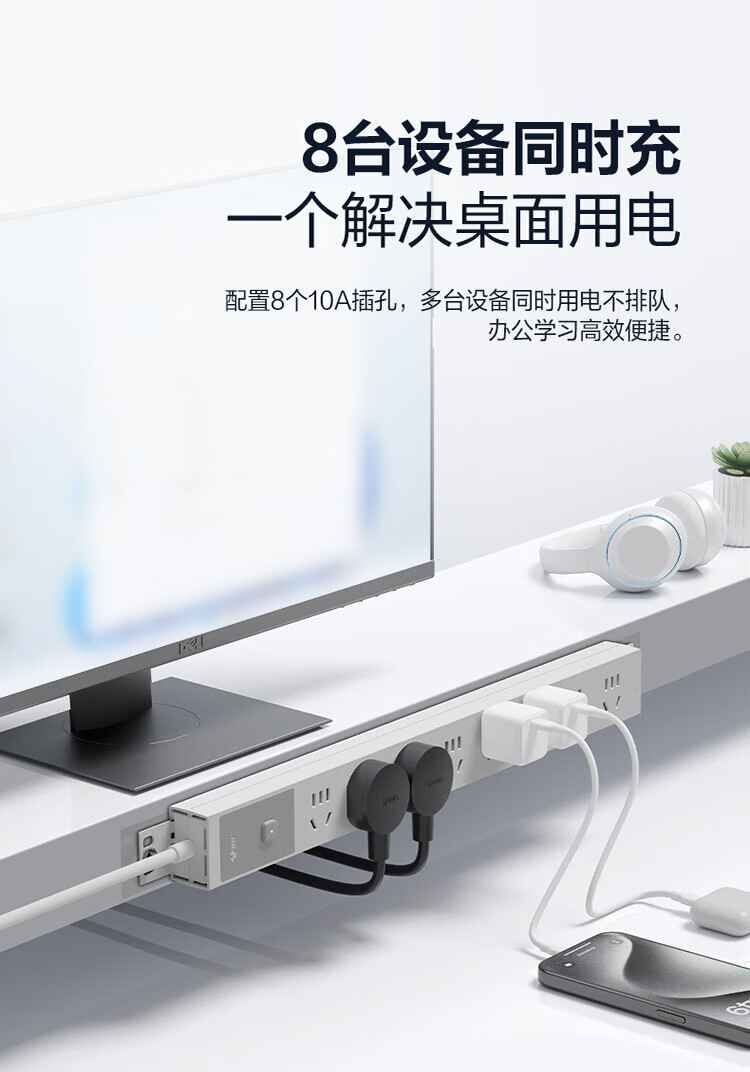 公牛(BULL)PDU桌面过载超功率保护桌下电竞机柜插座/插线板/插排/排插 8位总控开关1.8米规格 GNE-P108E