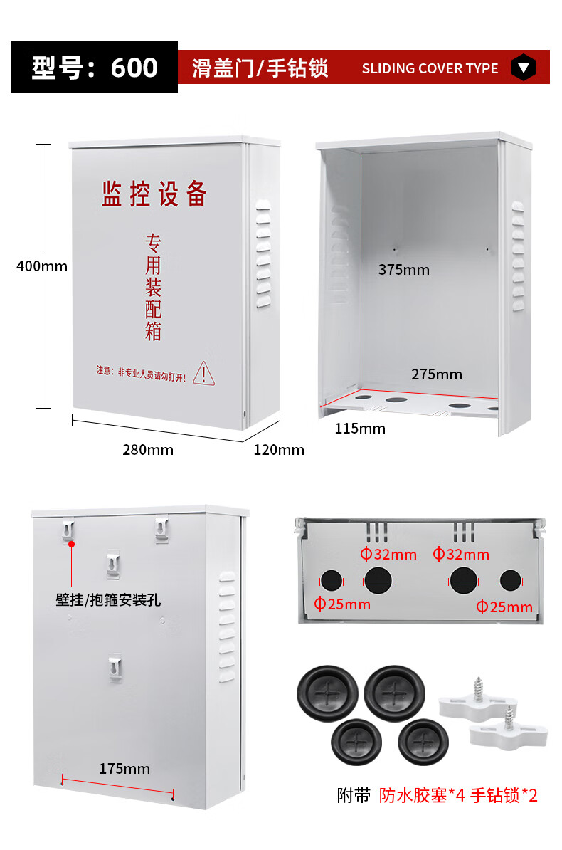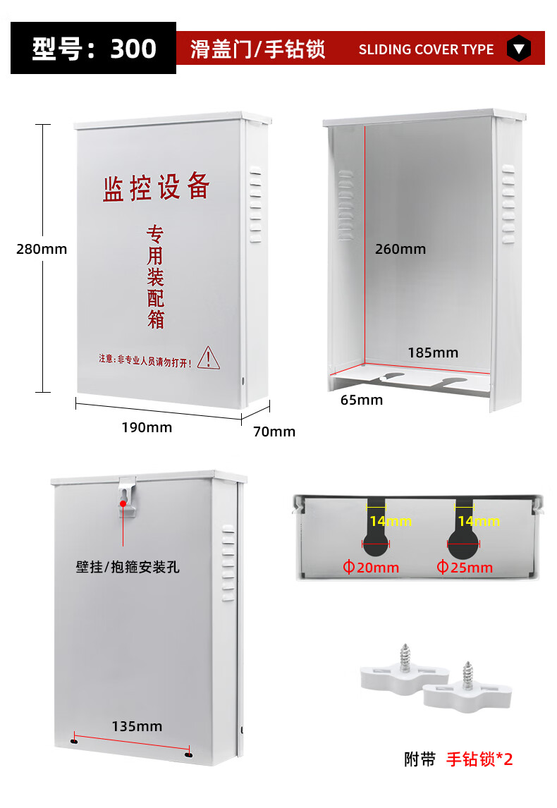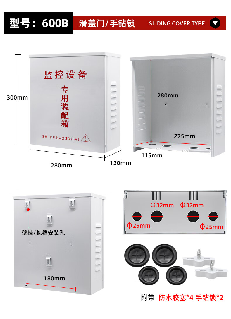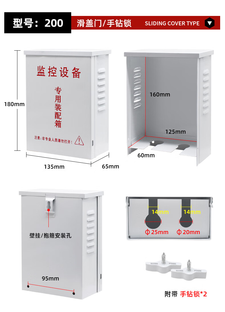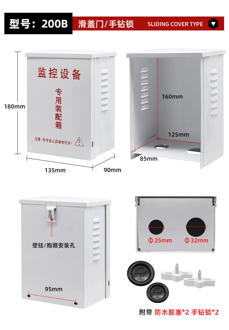 Security LeCroy monitoring waterproof box outdoor outdoor rainproof centralized power supply box security network weak current equipment distribution box 180*130*65mm
