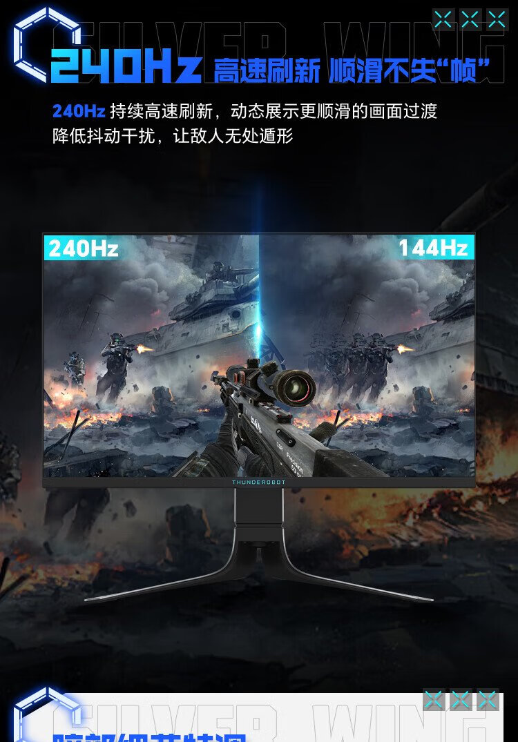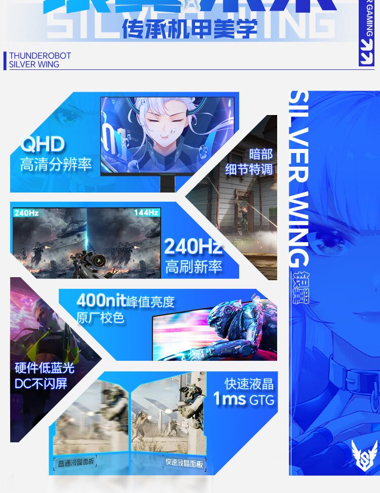 Thor Silver Wing 27-inch 2K240Hz Fast IPS 1ms supports HDR400 fast LCD lifting and rotating e-sports gaming computer monitor KQ27F240L