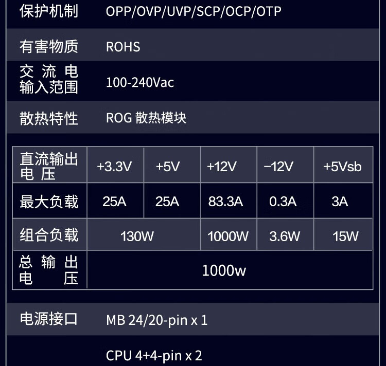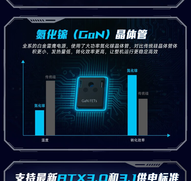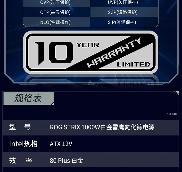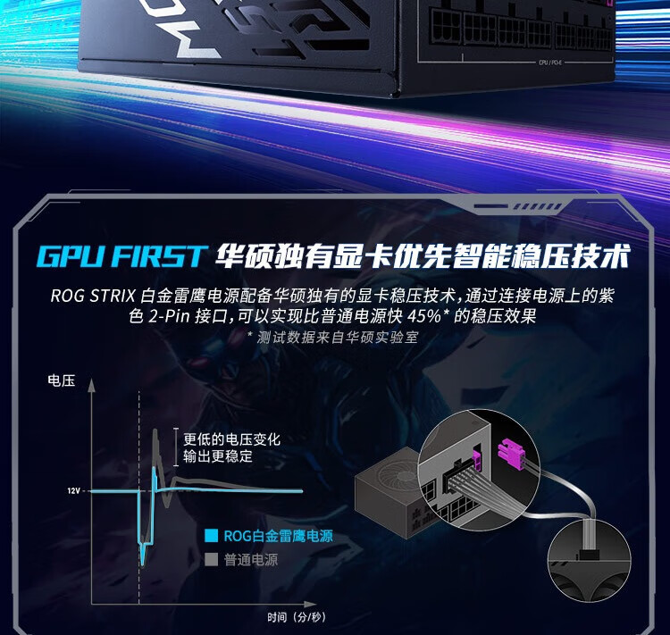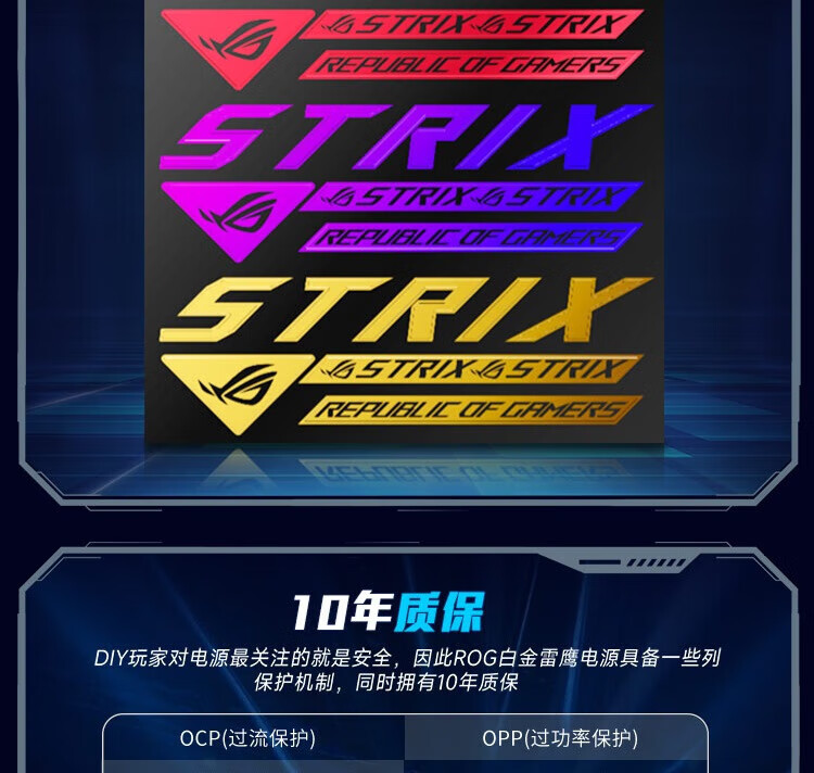 华硕ROG STRIX 白金雷鹰1000W 氮化镓电源 ATX3/显卡优先稳压/全日系电容/全模组/适配40/50系显卡