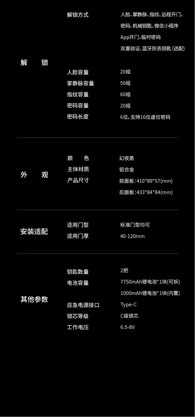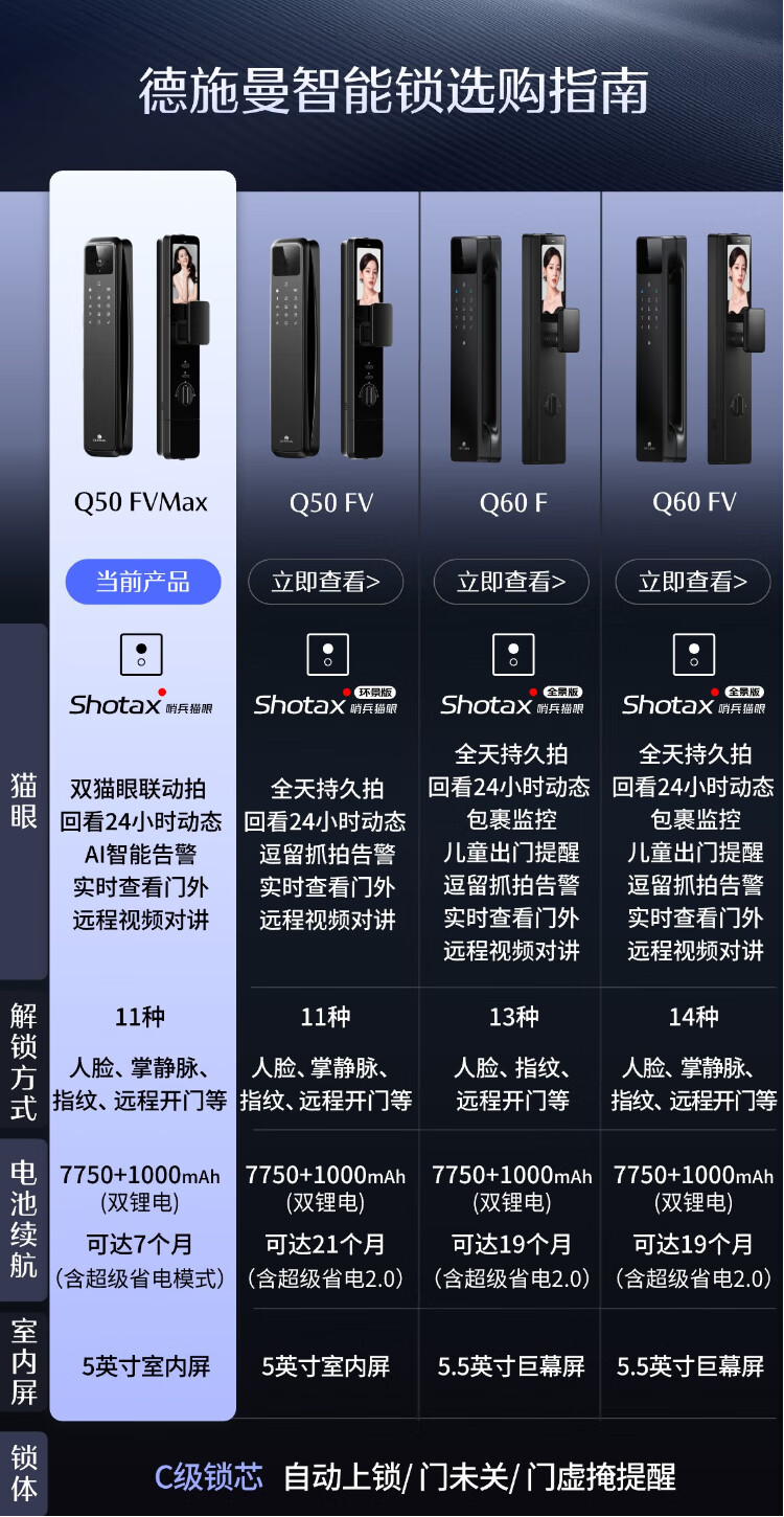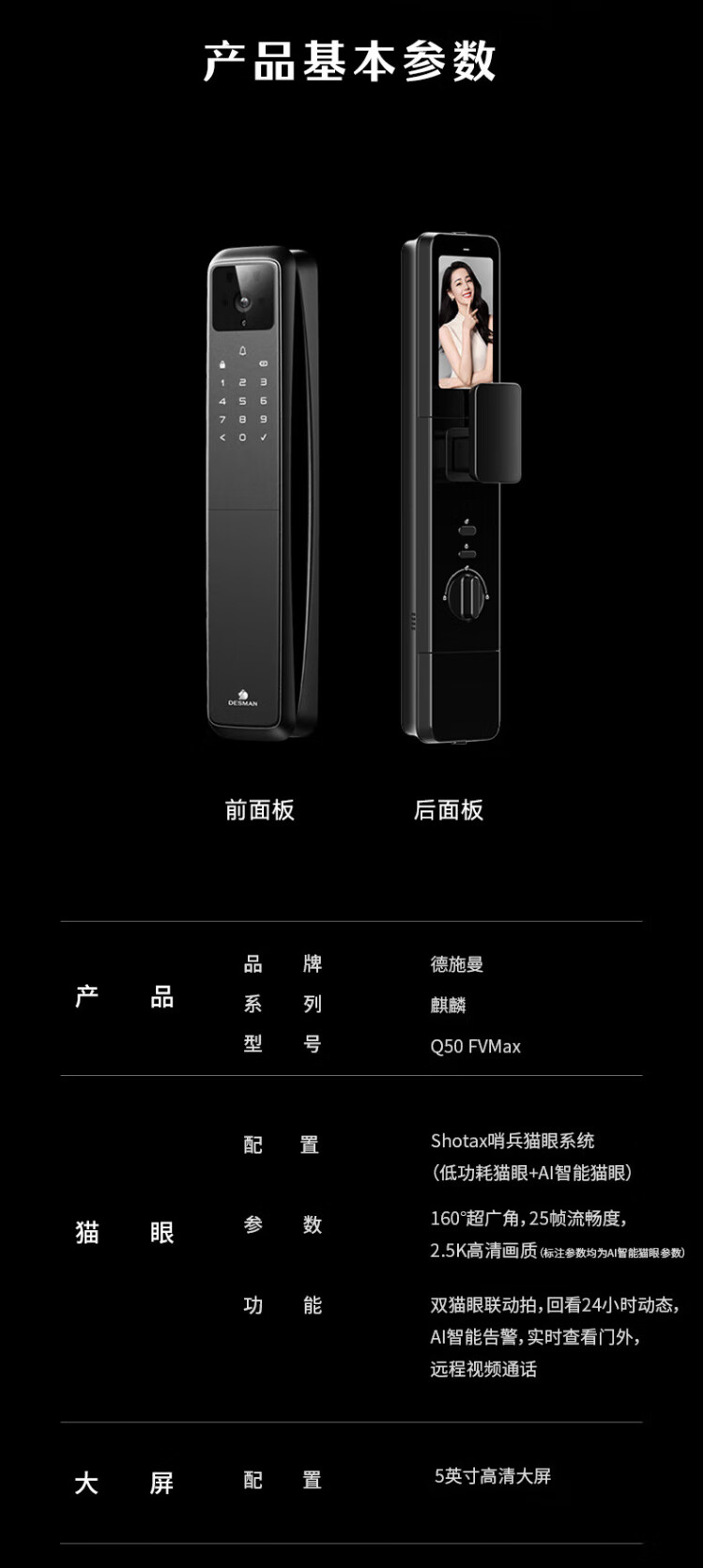 DESMAN smart door lock face palm vein recognition Sentinel visual cat eye large screen electronic lock Kirin Q50FVMax