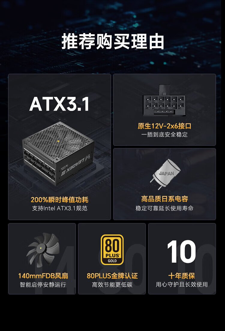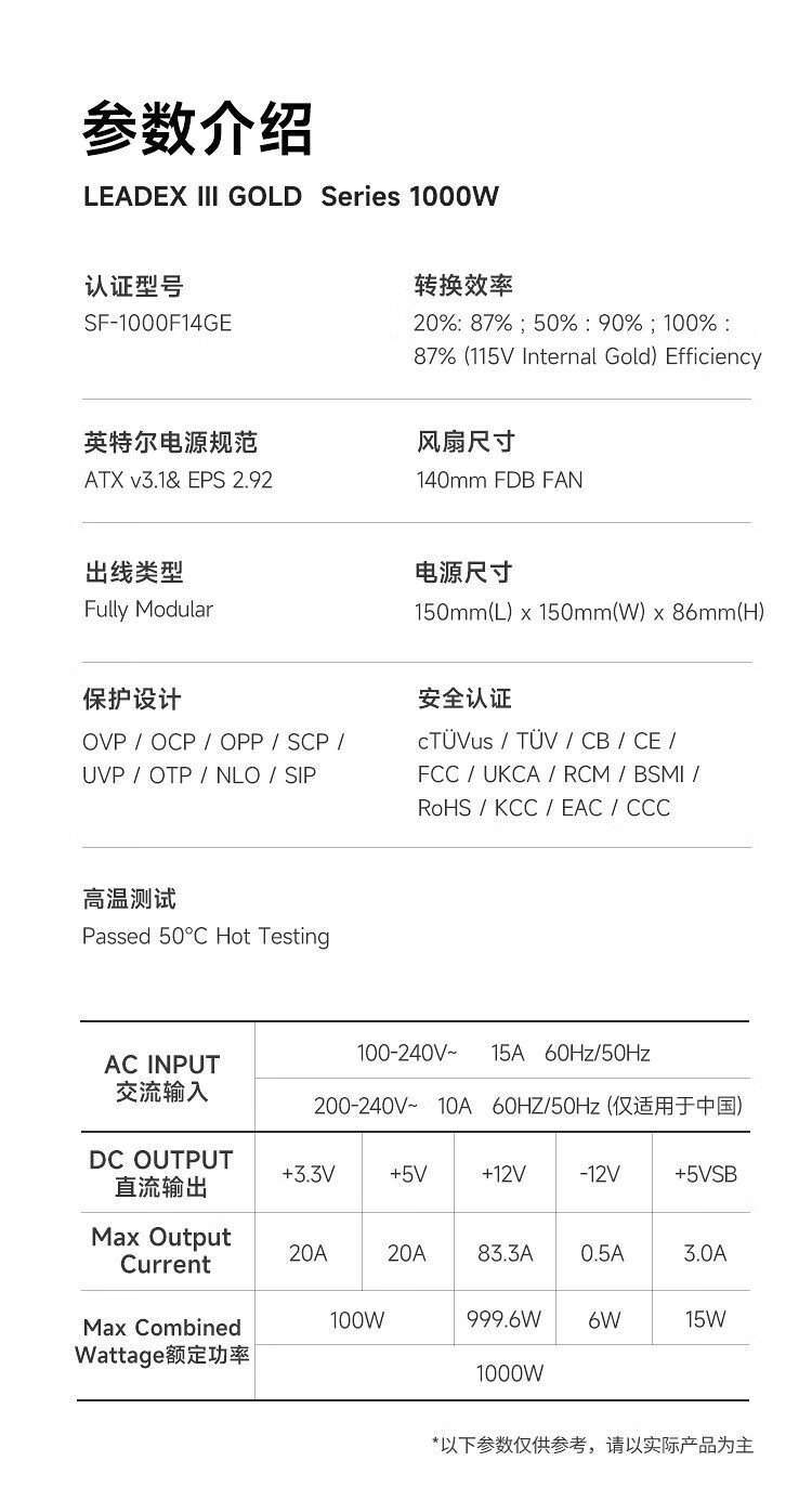 SUPER FLOWER Zhenhua ATX3.1 power supply rated 1000W LEADEX III1000W computer power supply gold medal full model/ten-year warranty/support 5090/9070 graphics card