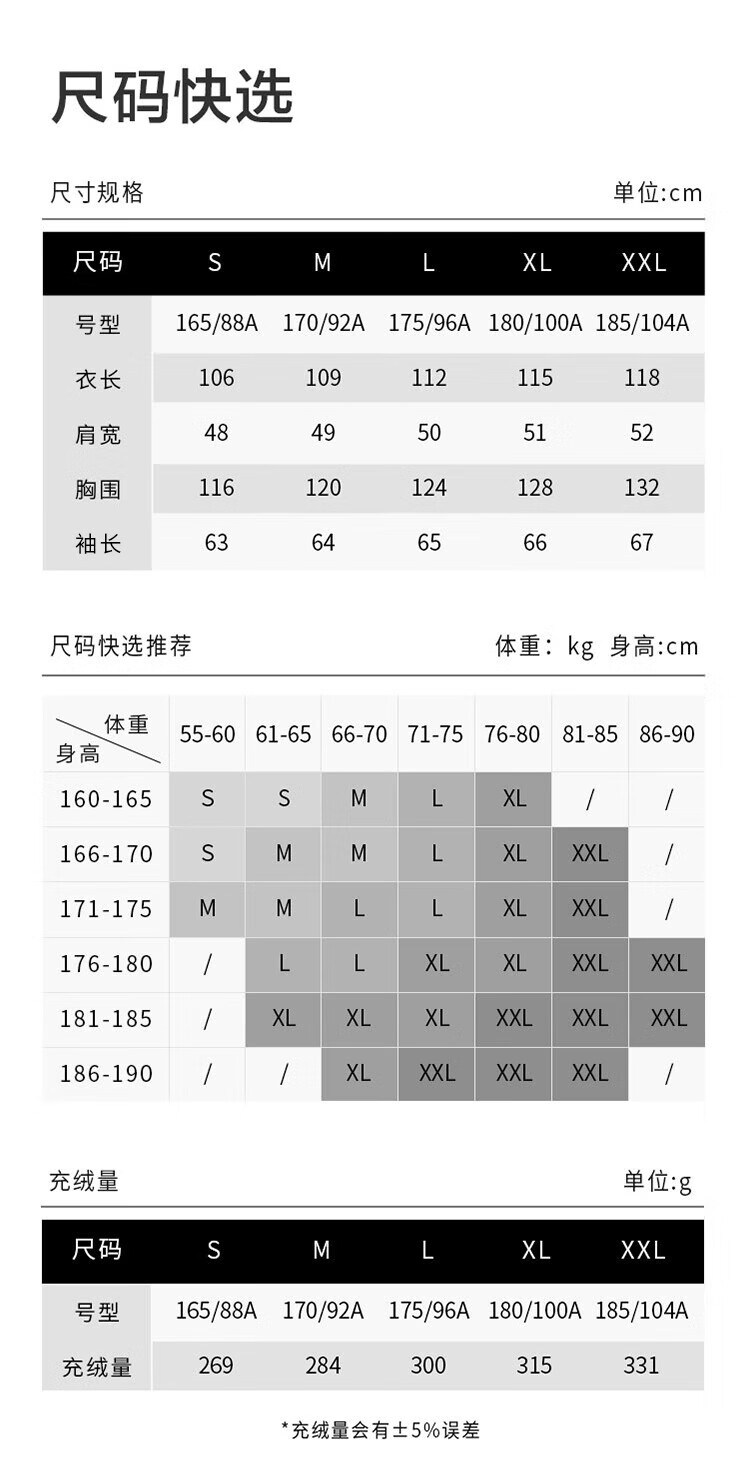 China (cm) 160-165/84-86 165-170 / 88-90 167-172 / 92-96 168-173 / 98-102 170-176 / 106-110