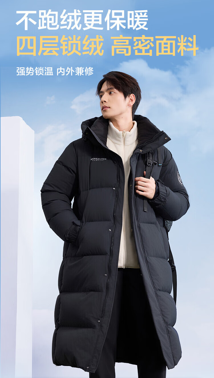 Jing Tokyo Made Down Jacket Men's 25 Autumn and Winter New 90 Duck Down Clothes Long Loose Hooded Warm Jacket Black L