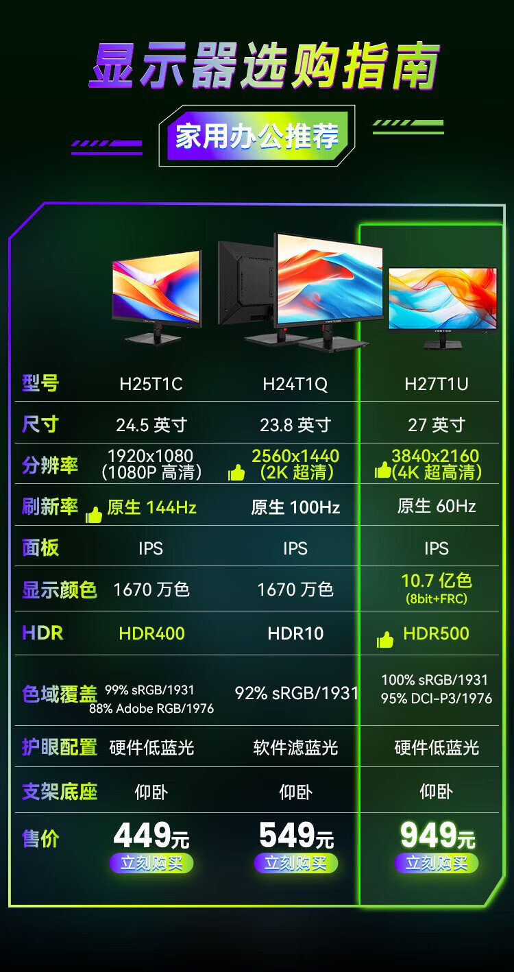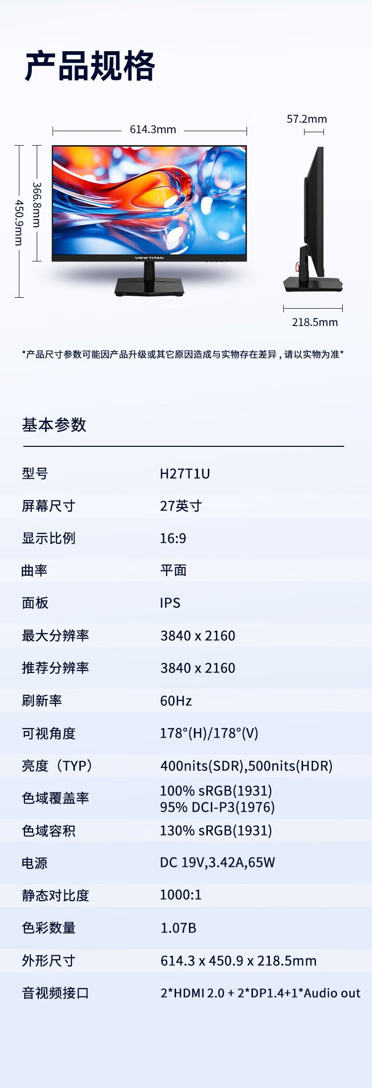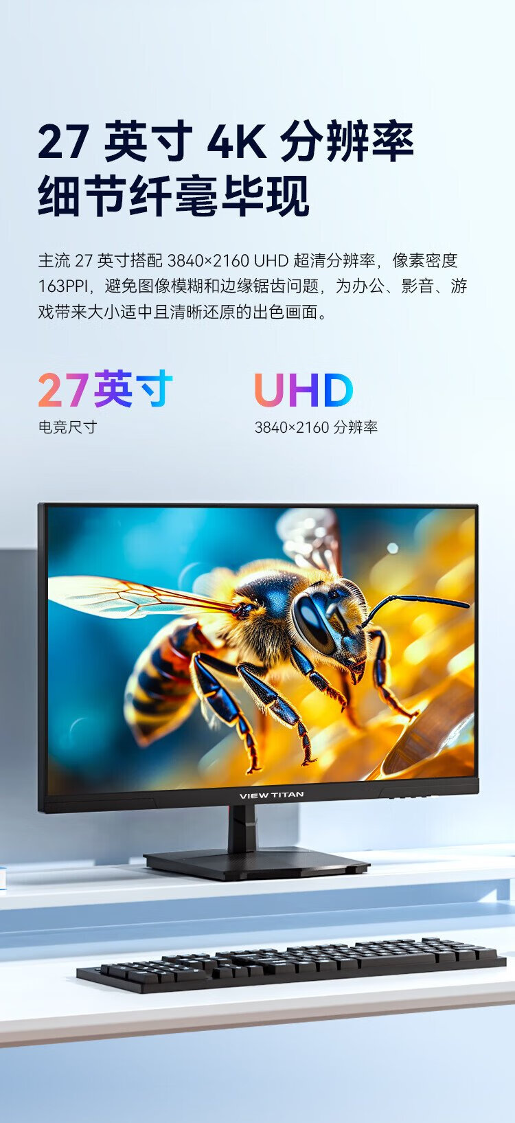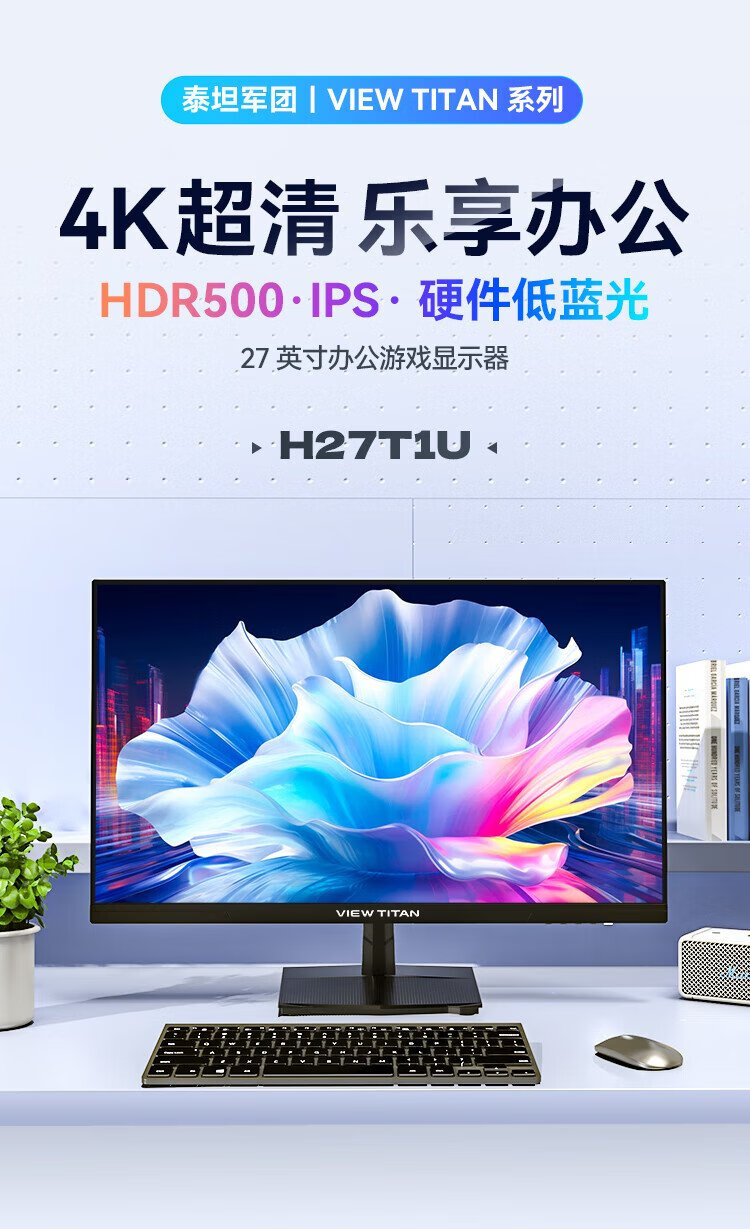 Titan Legion 27-inch monitor 4K ultra-clear hardware low blue light 95% DCI-P3 500nits high brightness IPS technology hard screen computer office monitor H27T1U