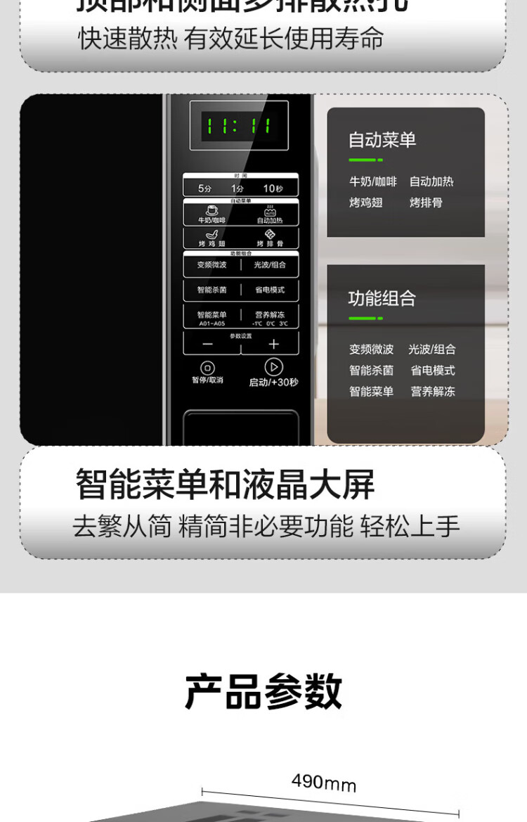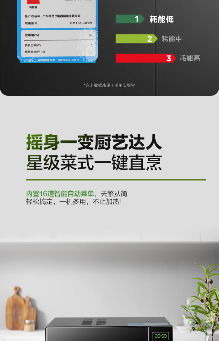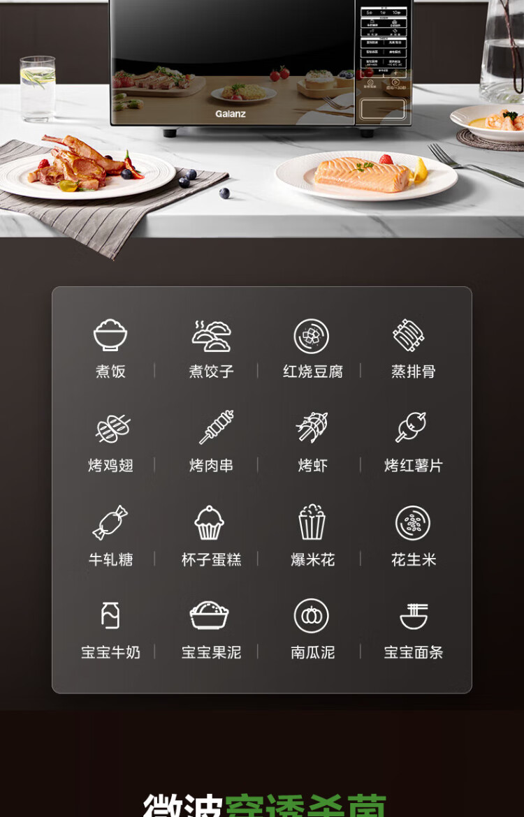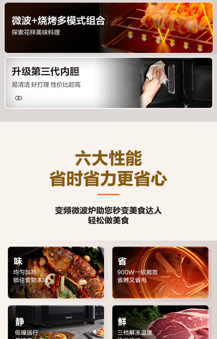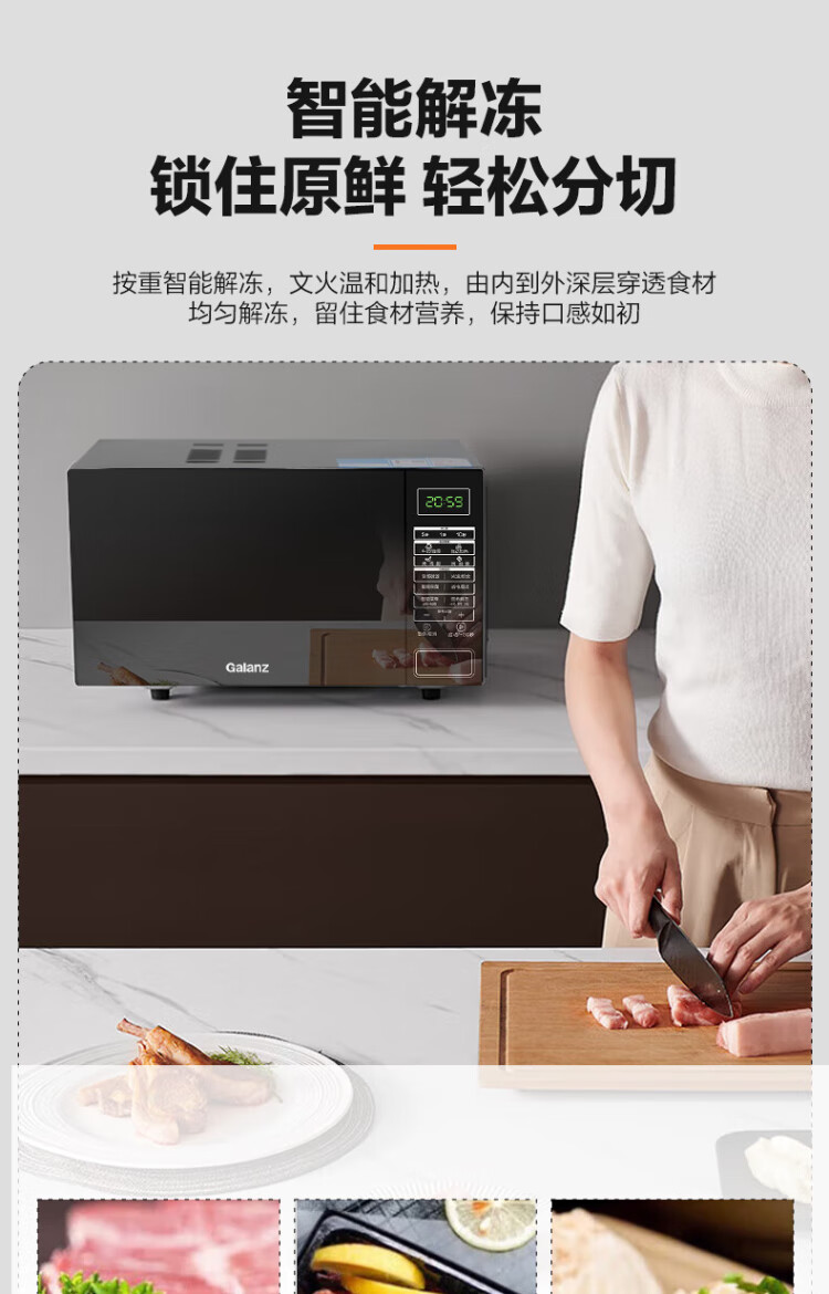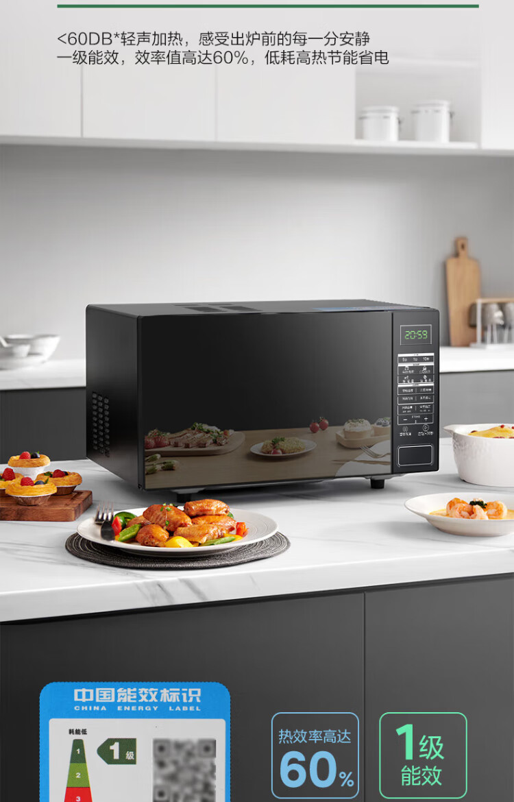 Galanz inverter microwave oven all-in-one machine 900 watts fast heating, energy saving, first-level energy efficiency, household 23 liter flat plate, easy to clean, can be grilled and defrosted BM1S1-GF3V