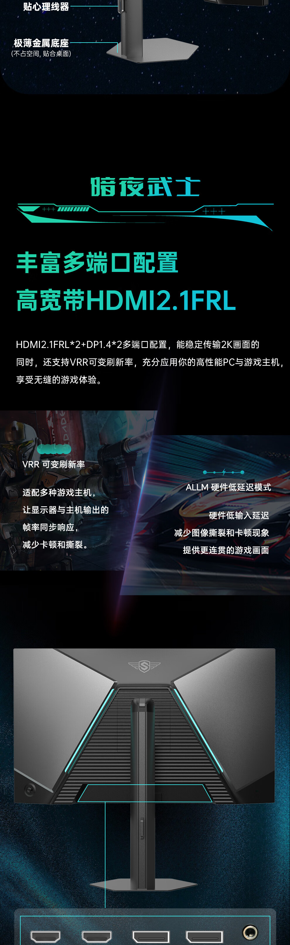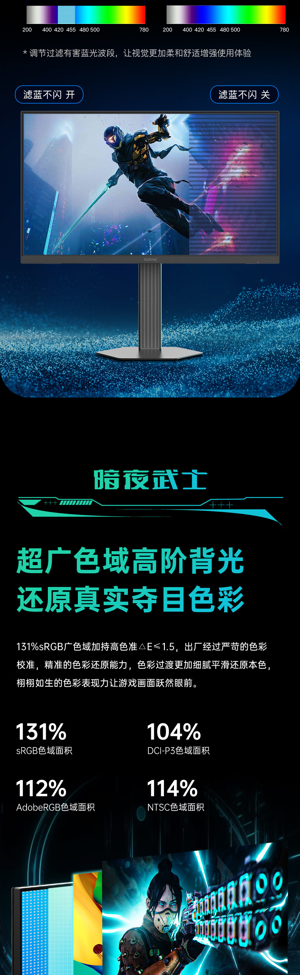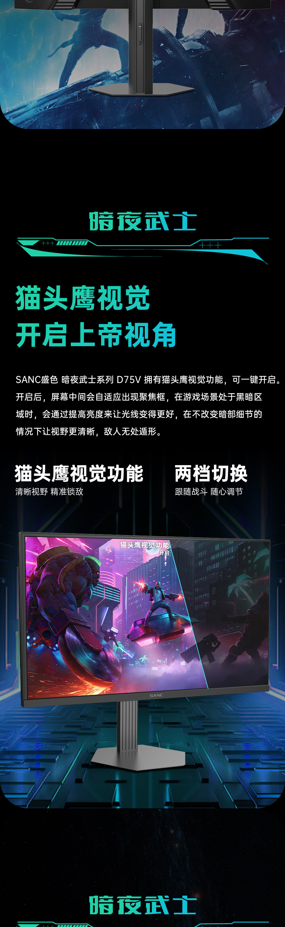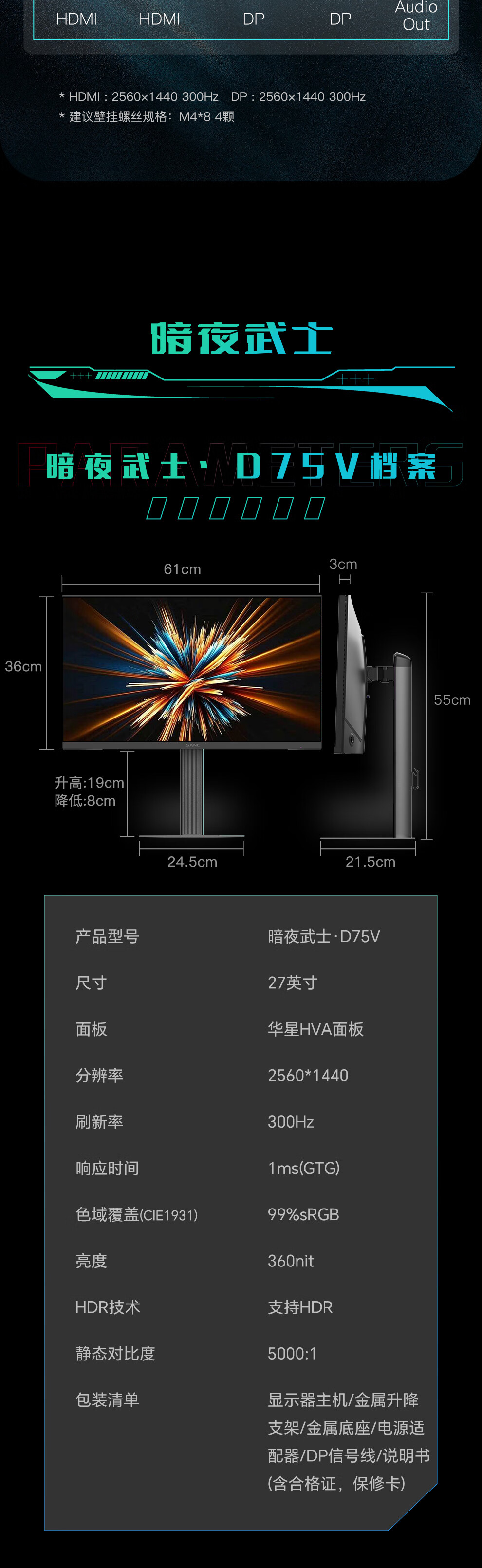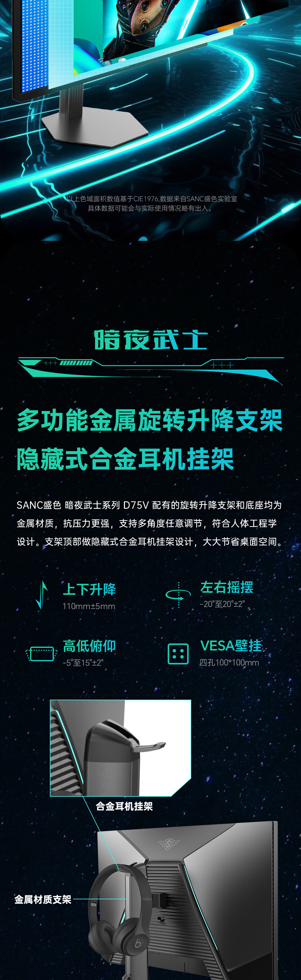 SANC盛色27英寸2K300Hz HVA快速液晶5000:1高对比度 硬件低蓝光 1ms旋转升降 电竞显示器屏幕 D75V