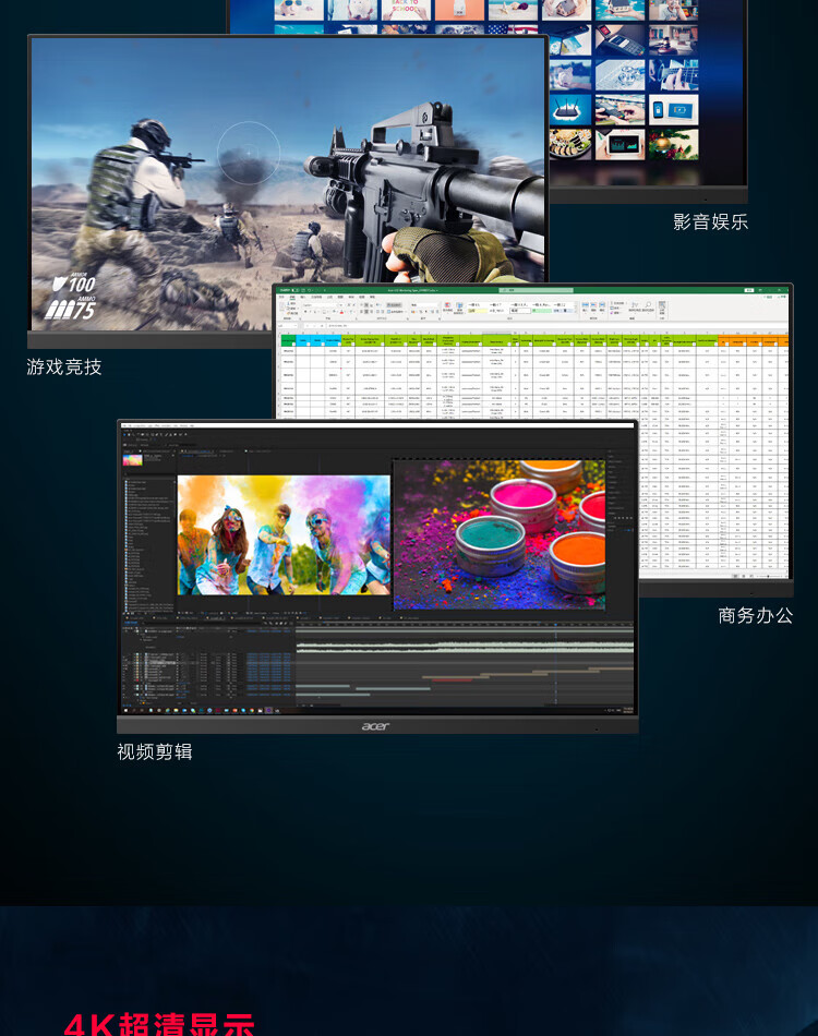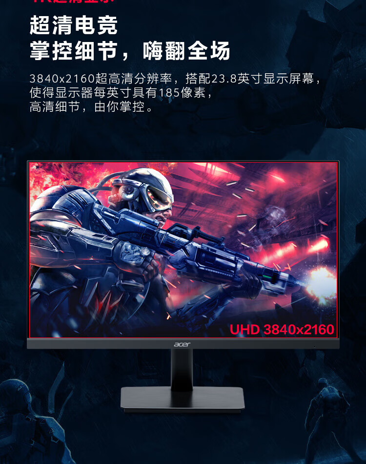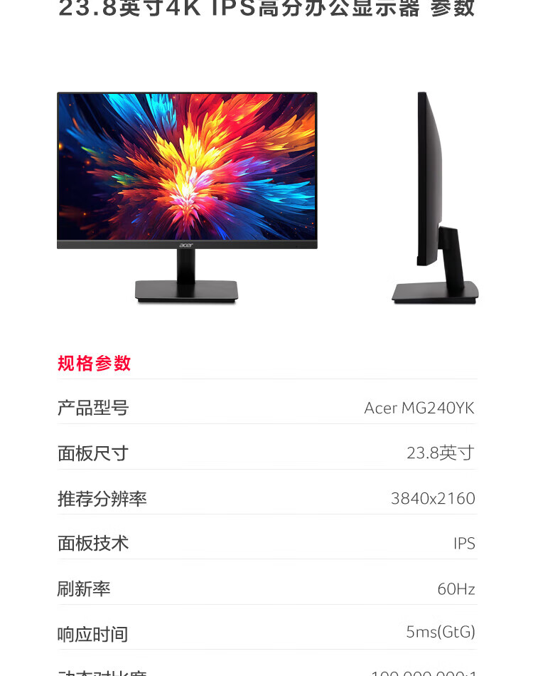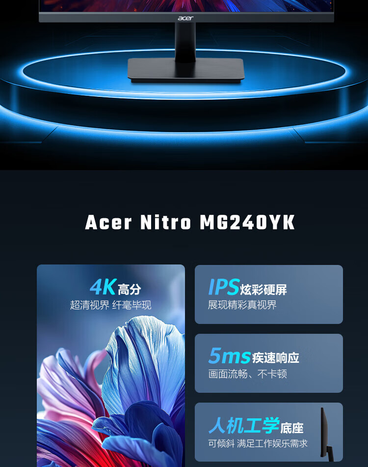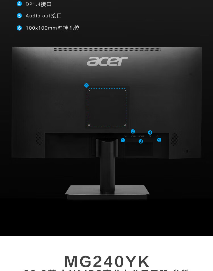 Acer 23,8-Zoll-IPS-4K+HDMI/DP-Dual-Interface-Monitor für Gewerbe/Büro MG240YK biipx