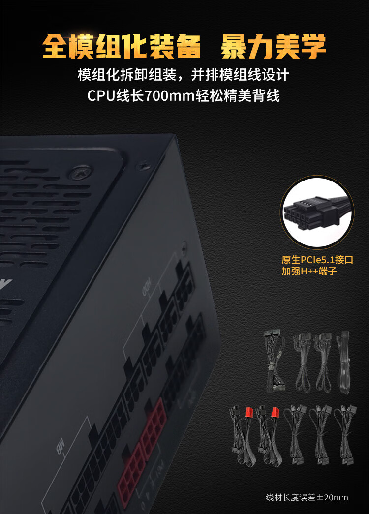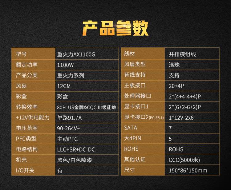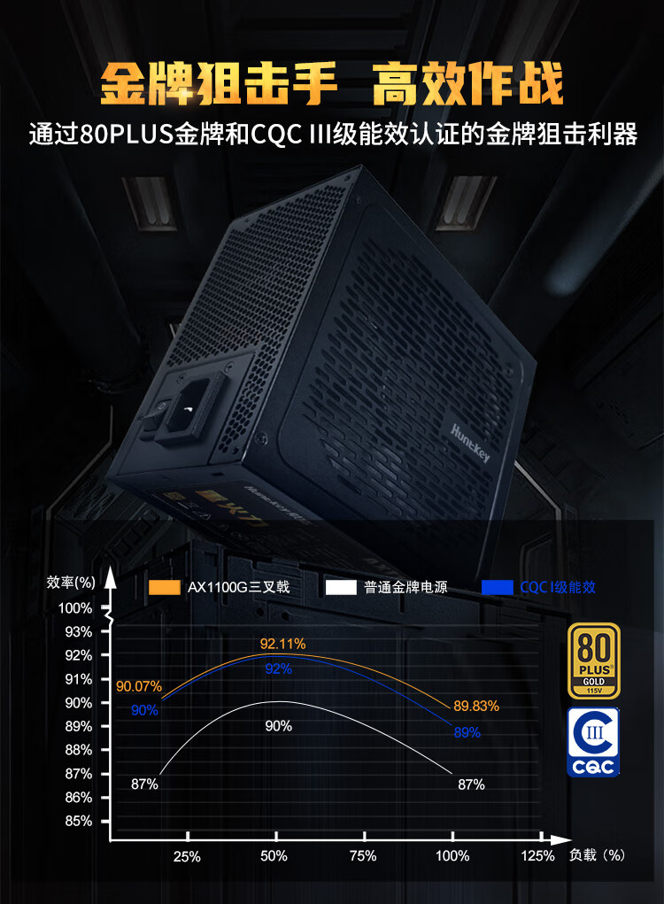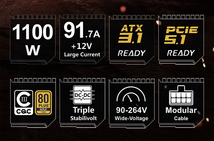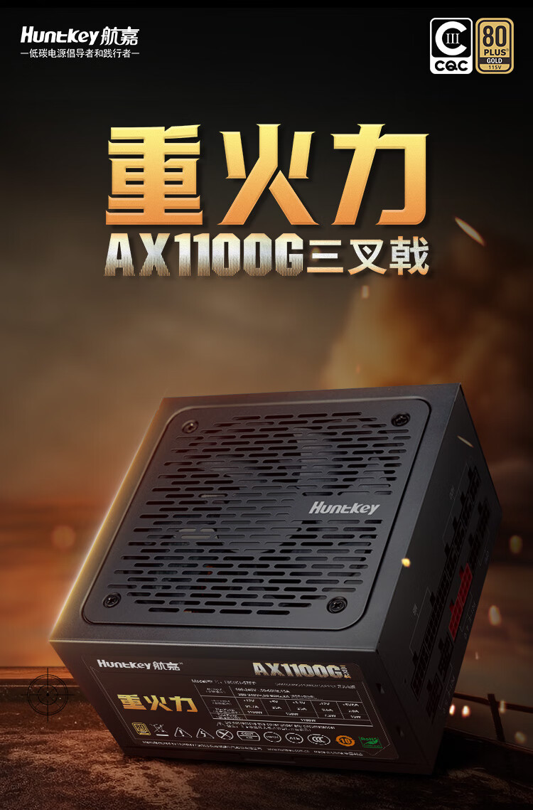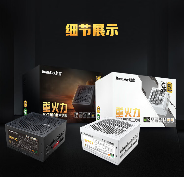 Huntkey Heavy Firepower AX1100G White Trident Gold Medal 1100W Netzteil (80PLUS Gold Medal Vollmodus/ATX3.1/PCIe5.1/Vollspannung/Dual-CPU-Netzteil)
