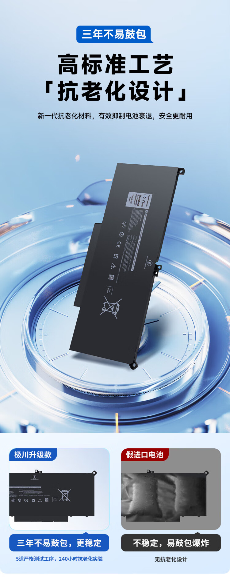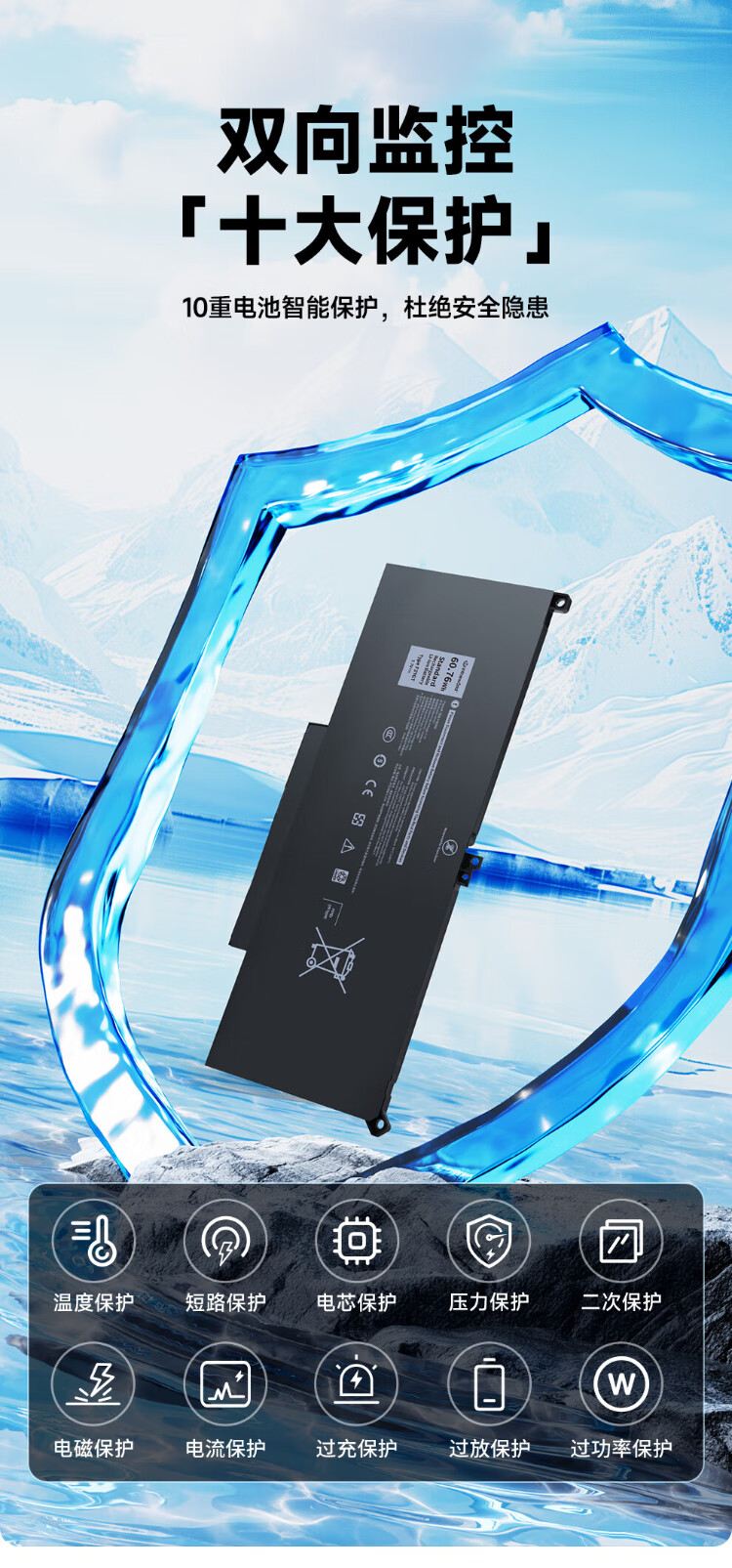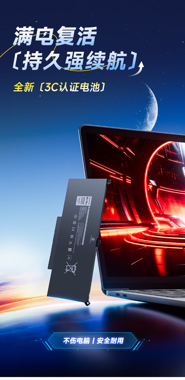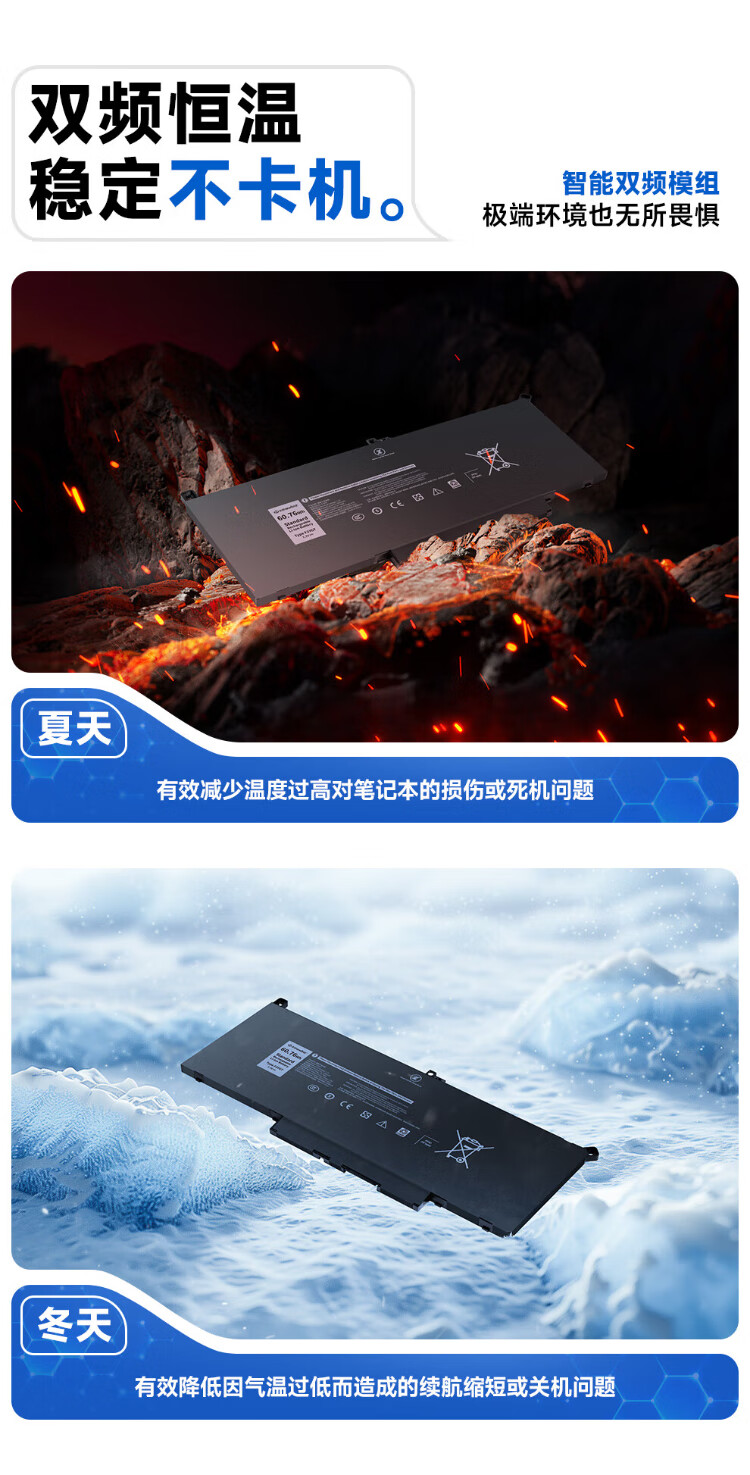 极川 适配dell戴尔Latitude 7490 7390 7290 7280 7380 7480 F3YGT P73G笔记本电脑电池内置更换