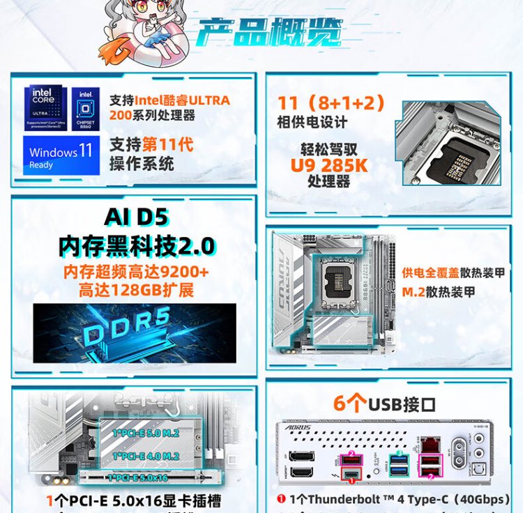 GIGABYTE mini ice sculpture B860I AORUS PRO ICE DDR5 motherboard supports CPU Ultra U7-265K U5-245K LGA 1851