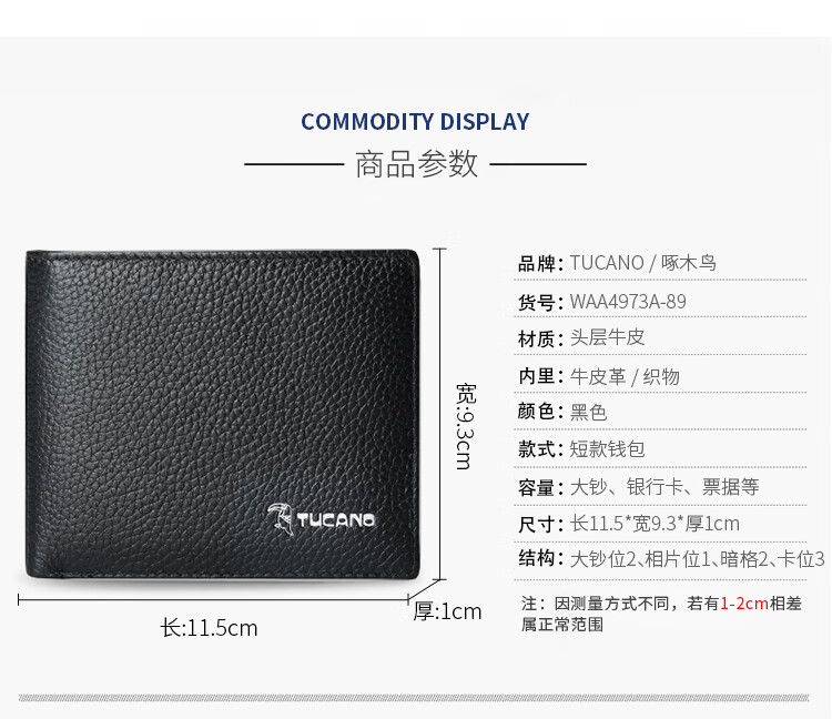 Woodpecker (TUCANO) short leather wallet 2025 practical Father's Day gift for husband and boyfriend practical and high-end card holder