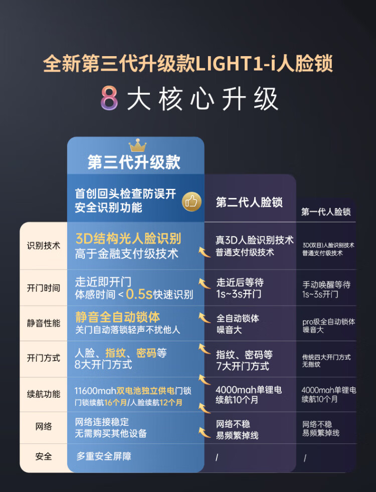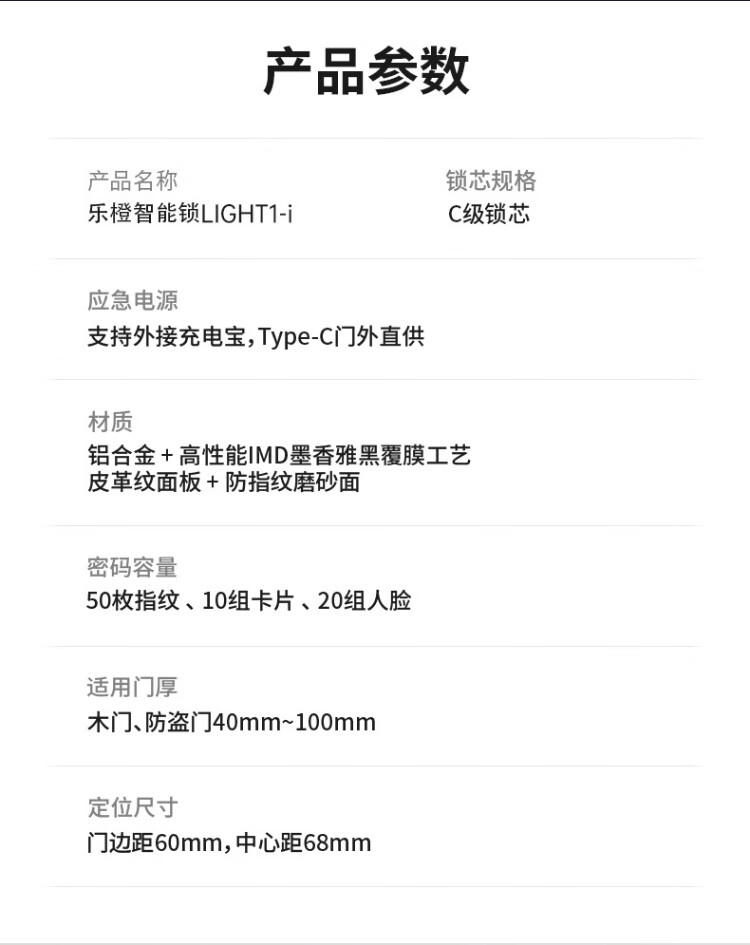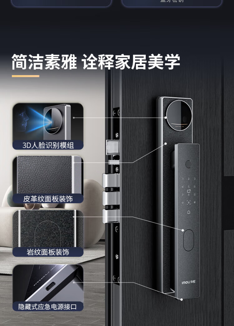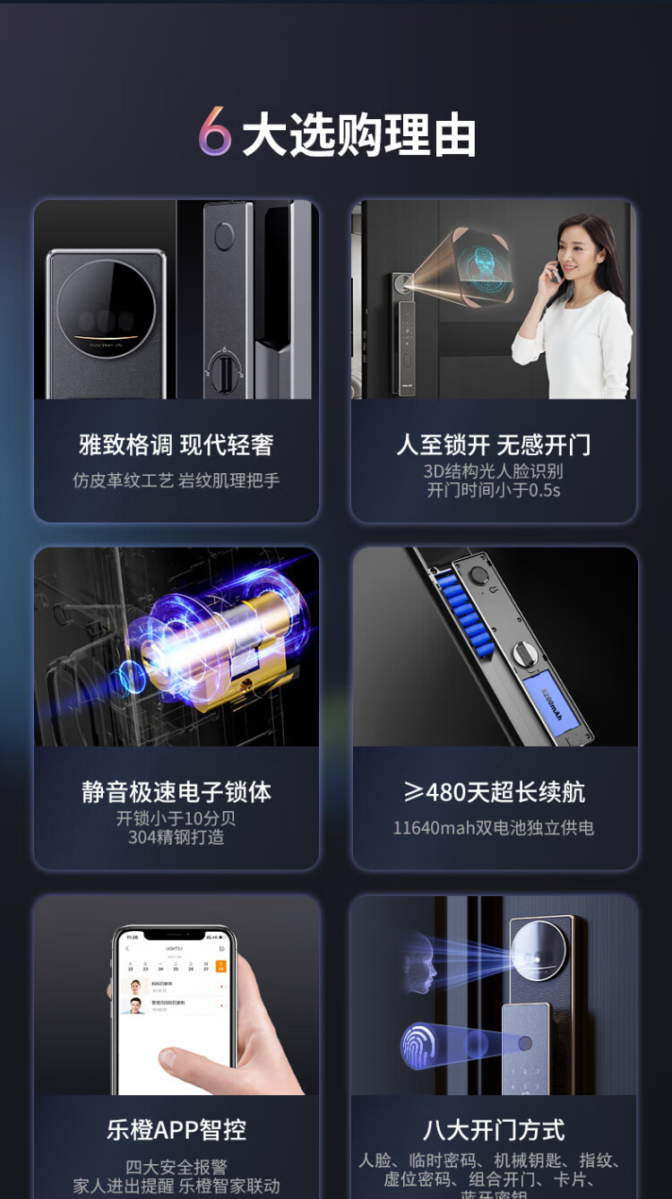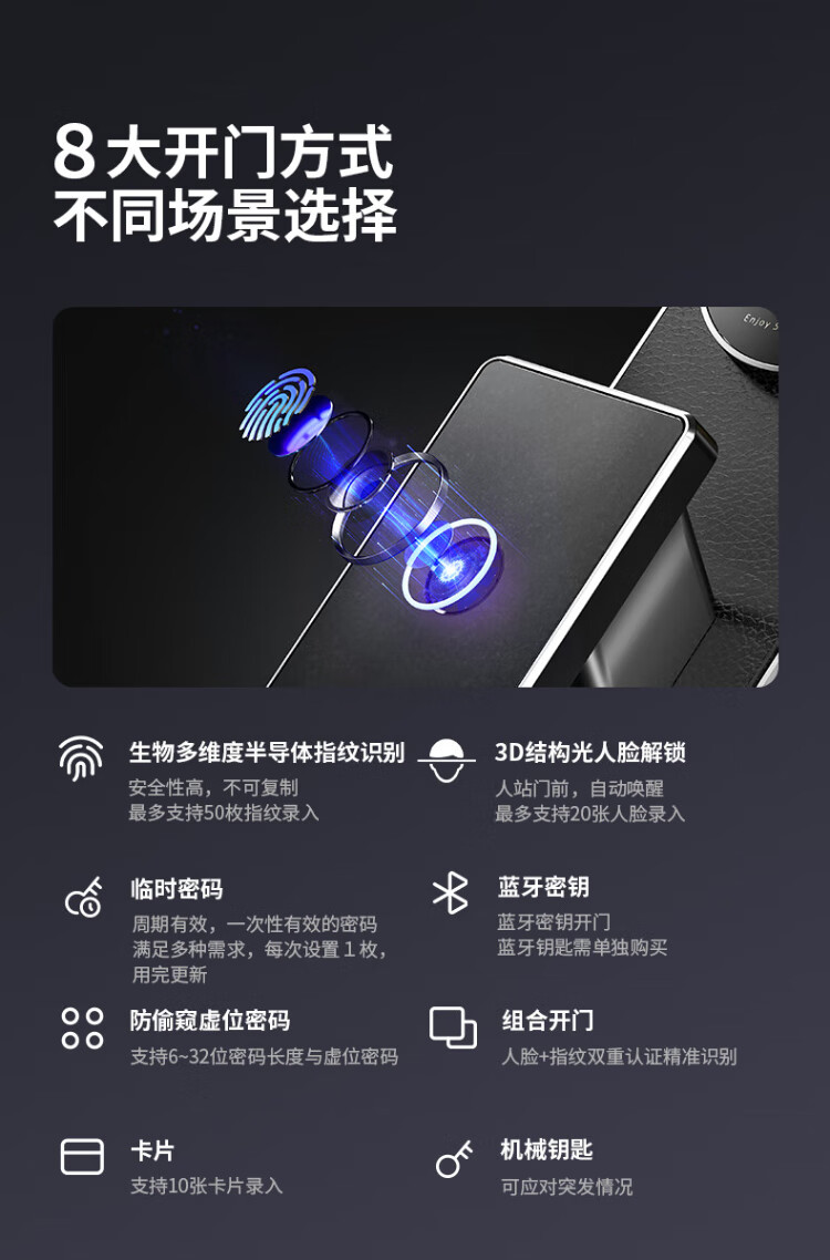 乐橙智能锁星火LIGHT1-i 3D结构光人脸识别家用全自动智能门锁指纹锁密码锁C级锁芯防盗电子门锁