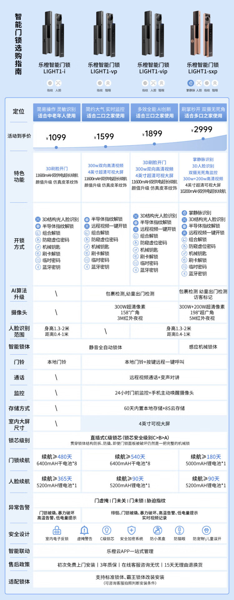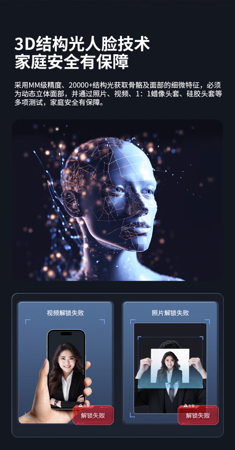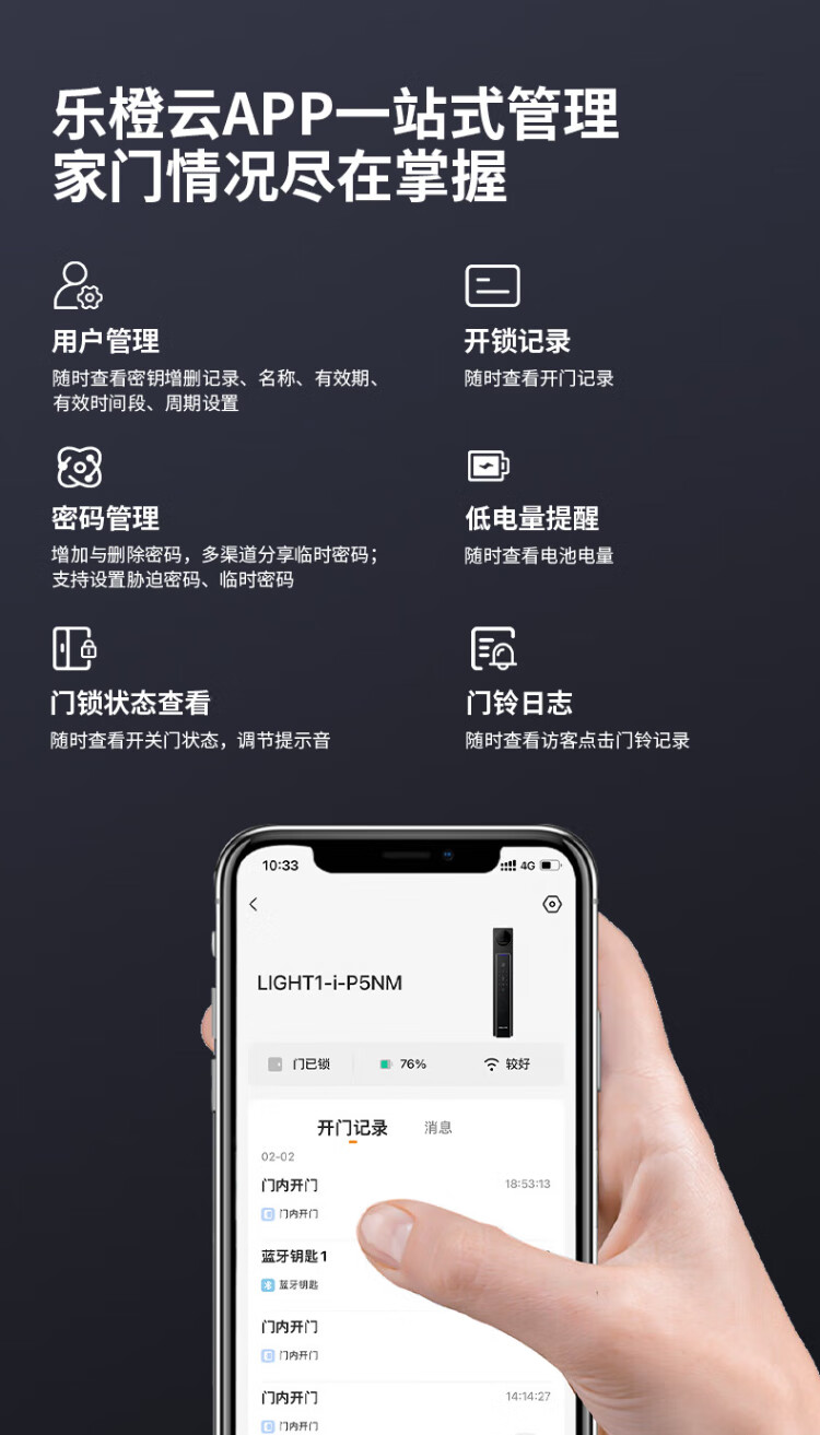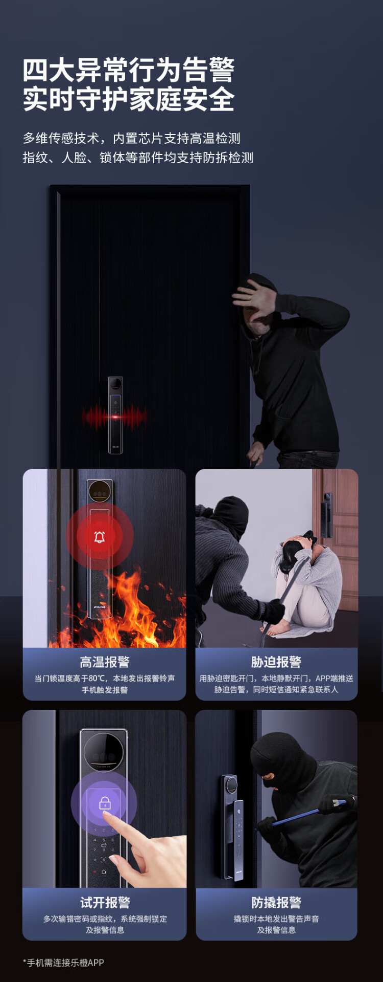 乐橙智能锁星火LIGHT1-i 3D结构光人脸识别家用全自动智能门锁指纹锁密码锁C级锁芯防盗电子门锁