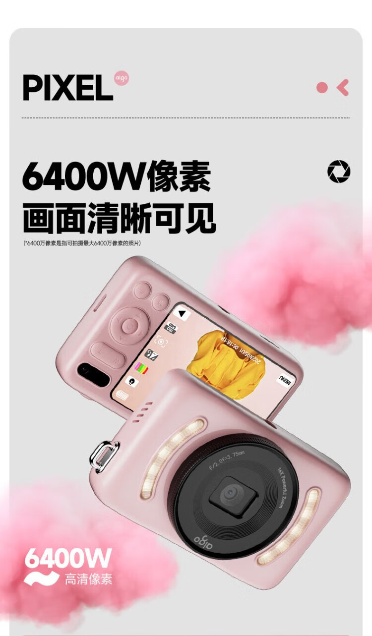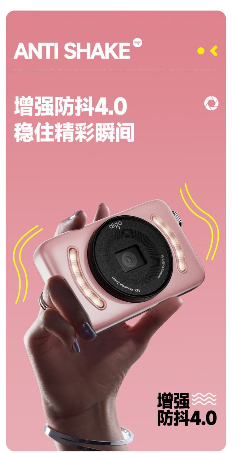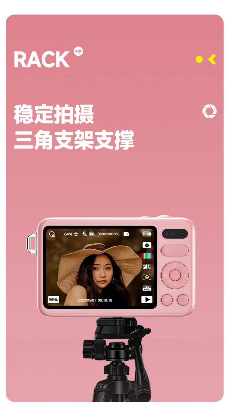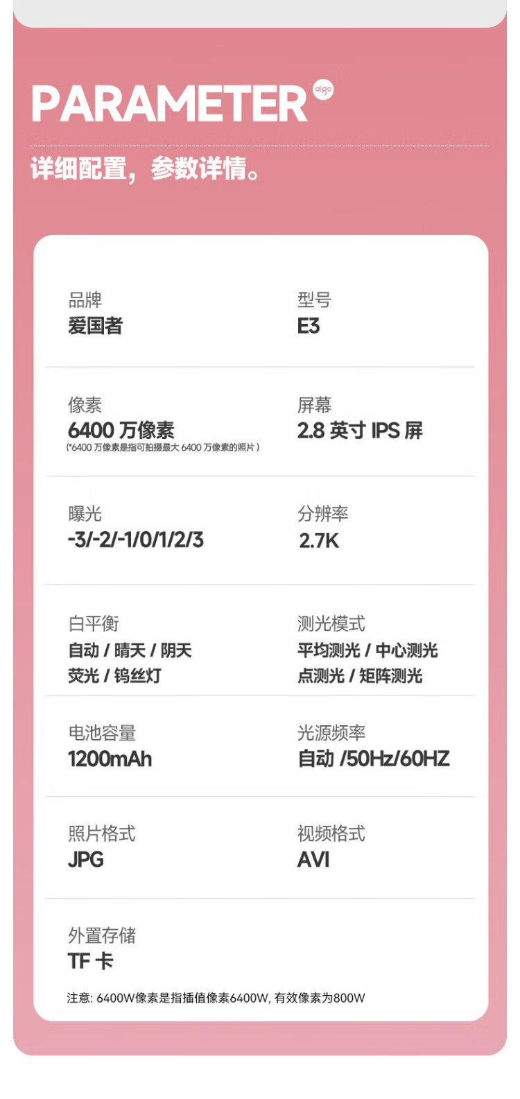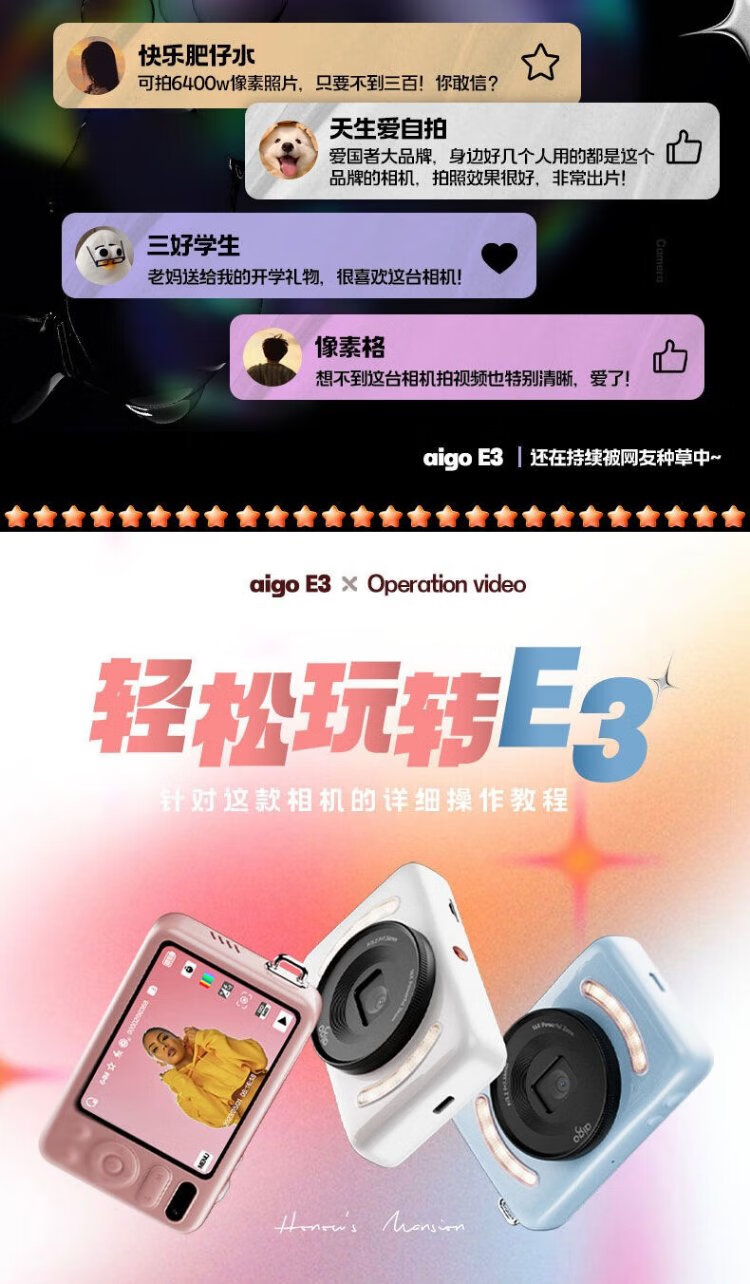 Aigo patriot E3 student digital camera girl card machine campus high-definition travel birthday gift replacement ccd front and rear dual camera can take selfies 64GB white