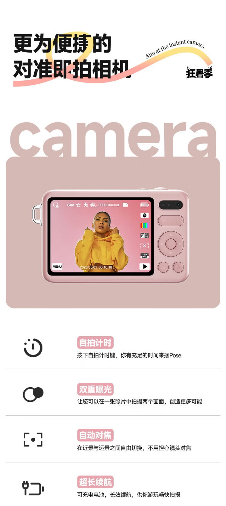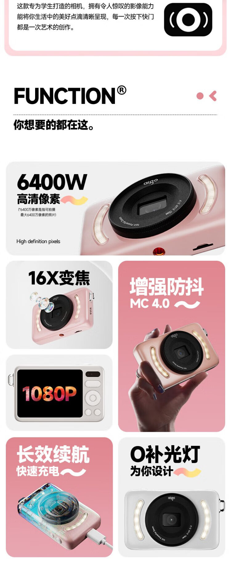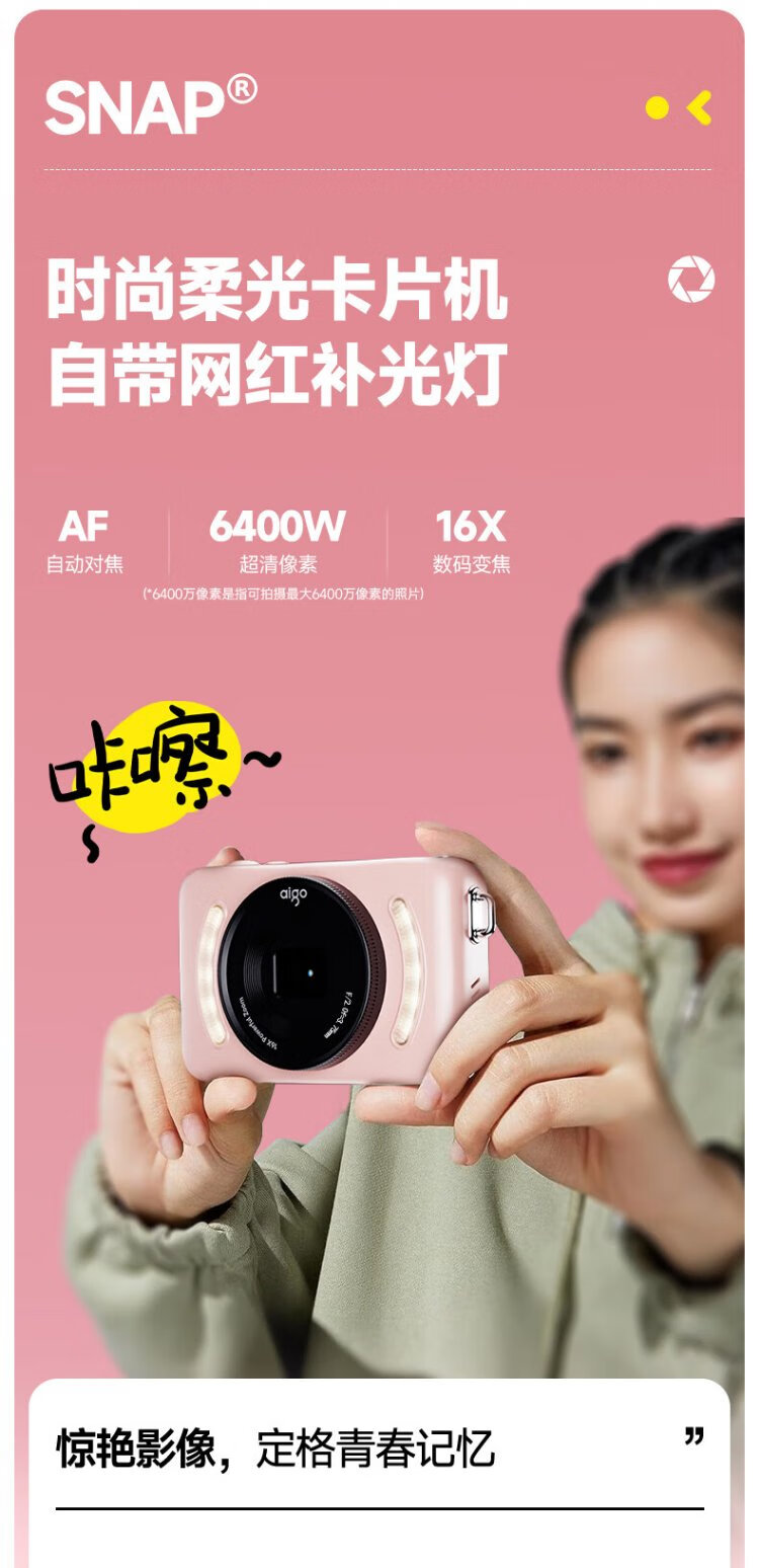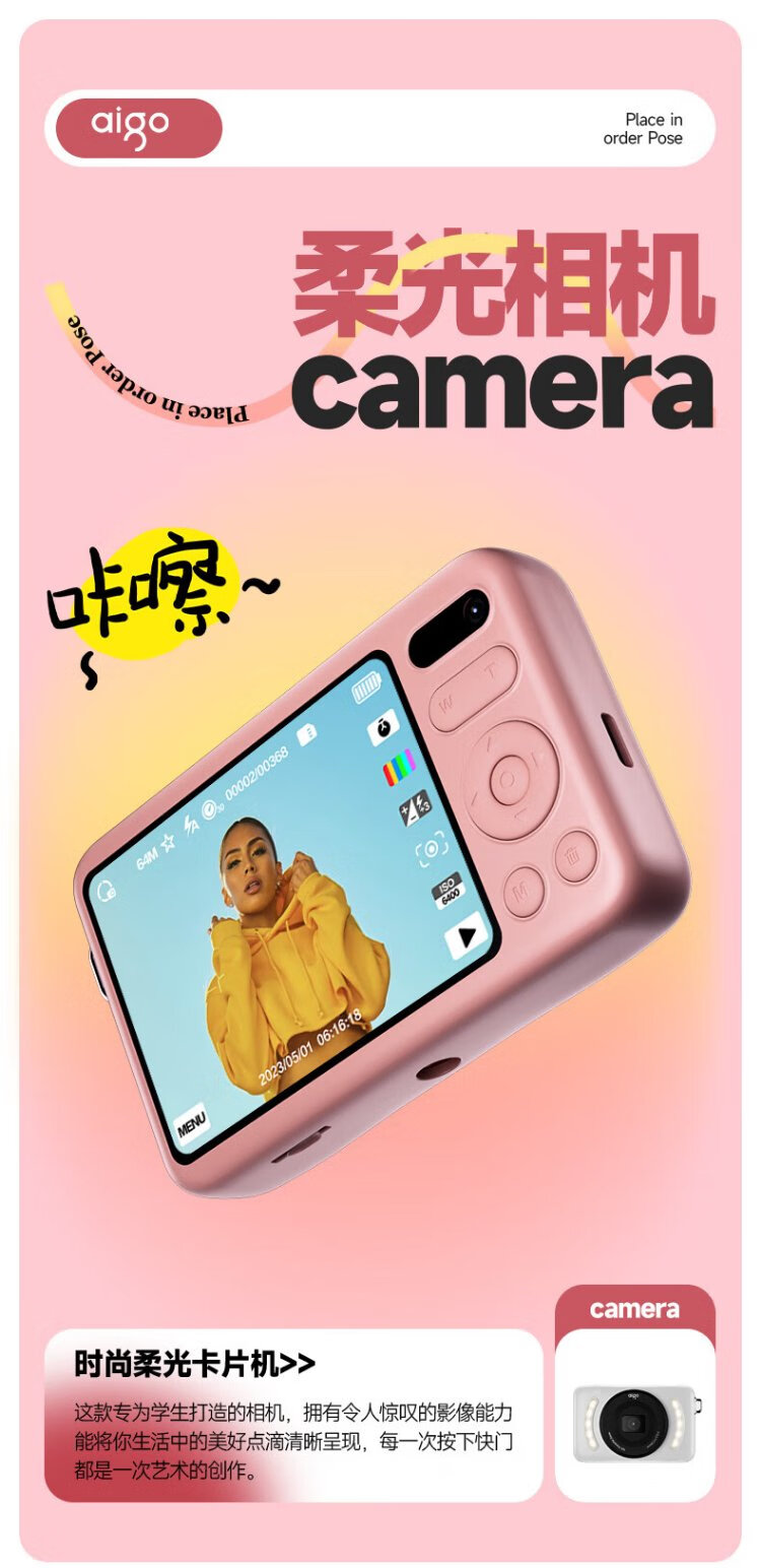 Aigo patriot E3 student digital camera girl card machine campus high-definition travel birthday gift replacement ccd front and rear dual camera can take selfies 64GB white