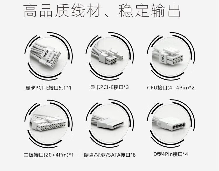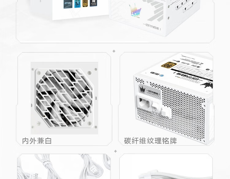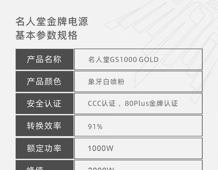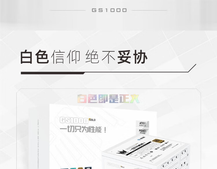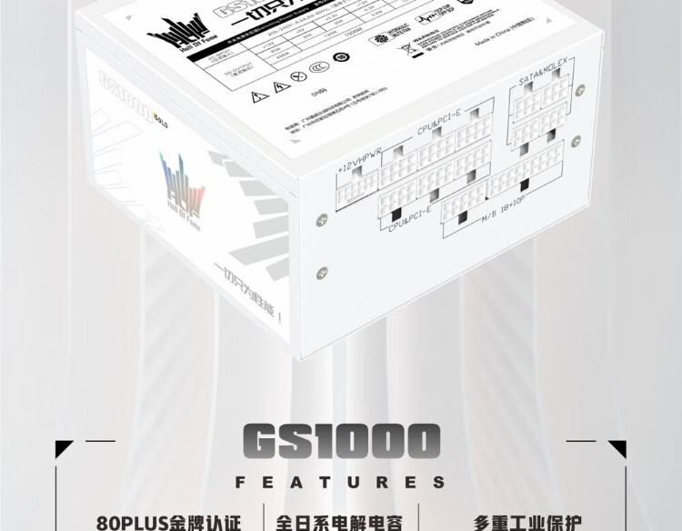 GALAXY Hall of Fame GS1000 Goldmedaille Vollmodul 1000W Computer-Netzteil reinweiß (alle japanischen Elektrolytkondensatoren/atx3.1/PCIE5.1/Ein-Knopf-Start/Stopp/mit Drahtkamm)
