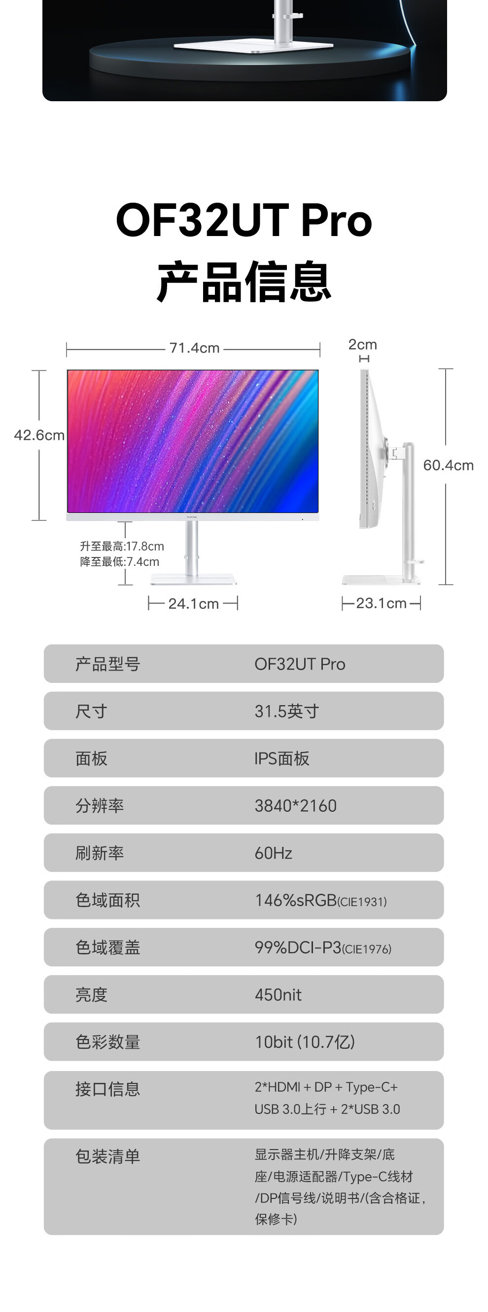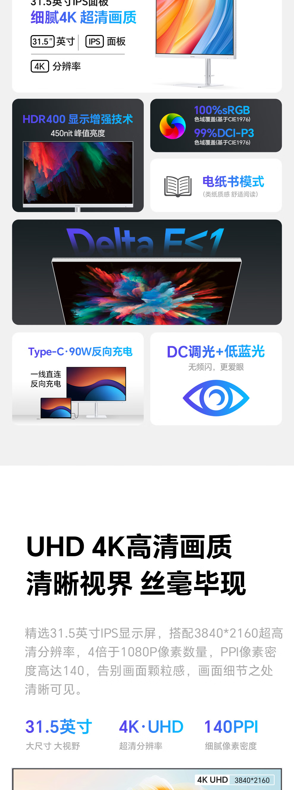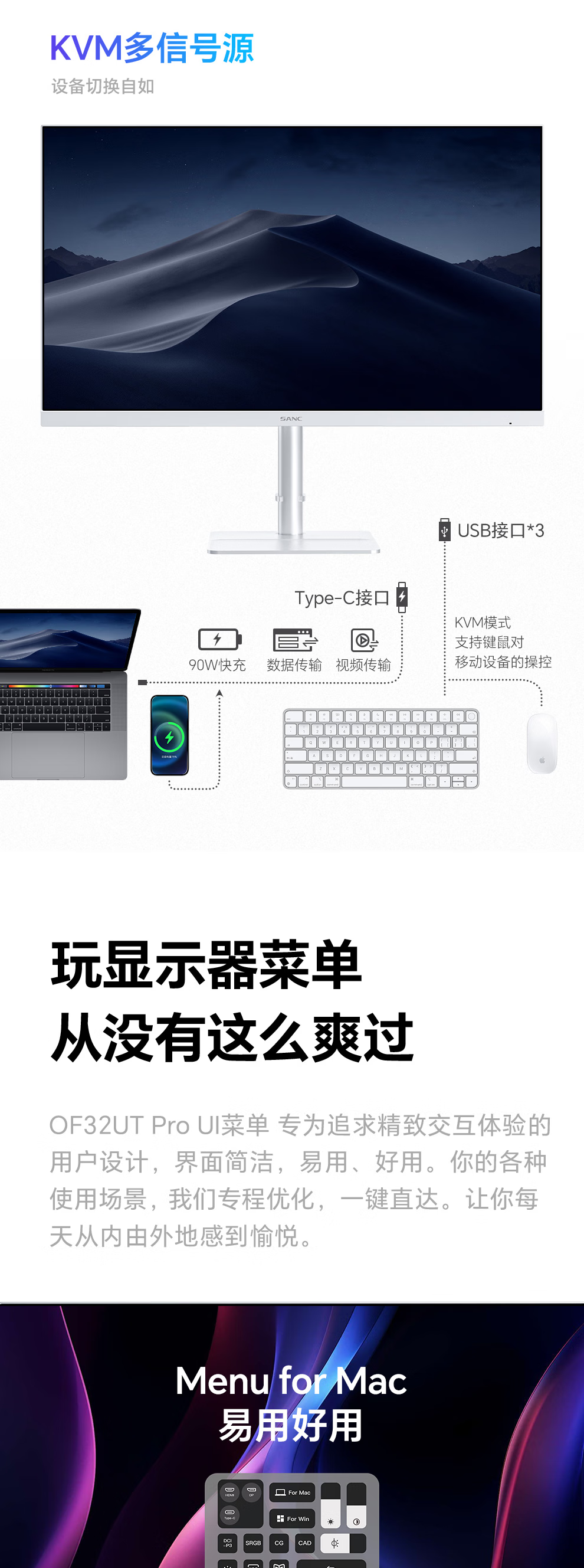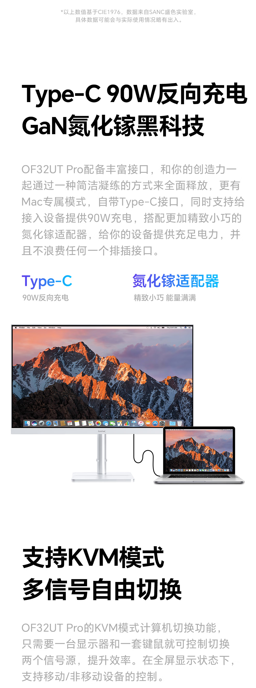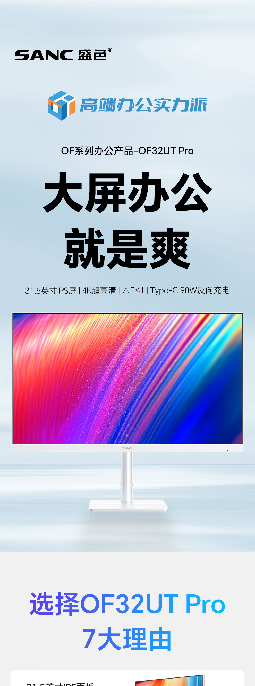 SANC Shengse 31,5-Zoll-4K-IPS-Monitor im professionellen Design, Typ C90W, 99 % P3 breiter Farbraum, 10 Bit HDR400-zertifiziert, TÜV-augenfreundlich, OF32utPro