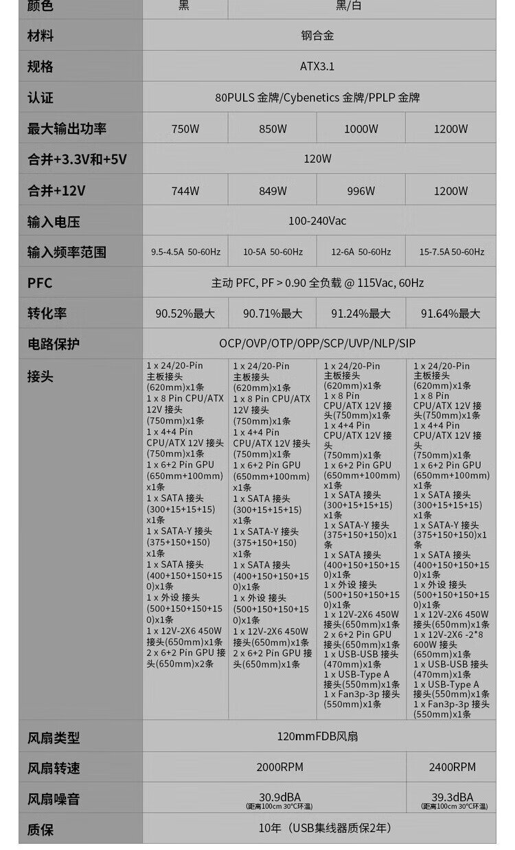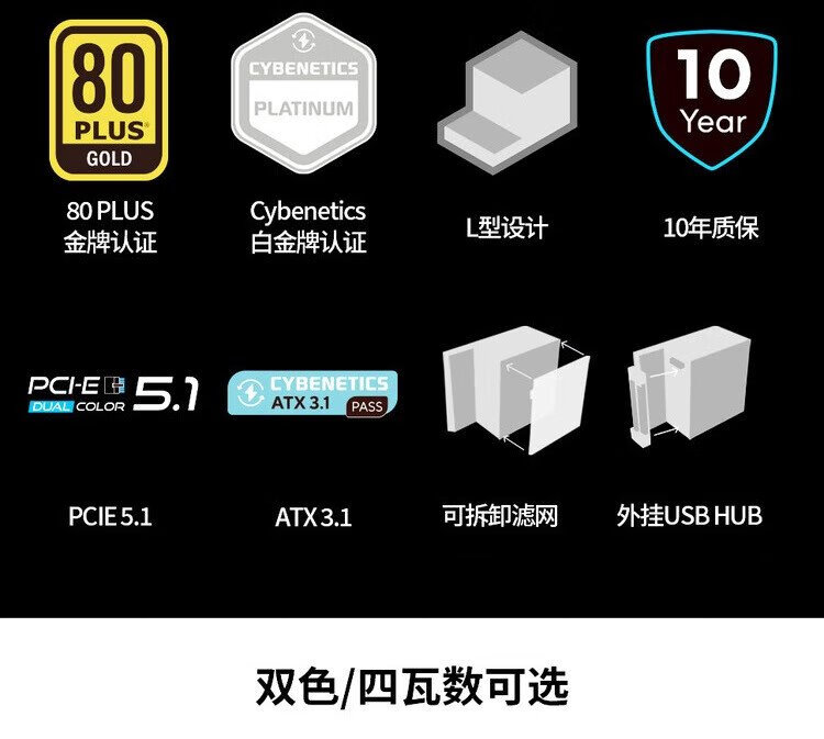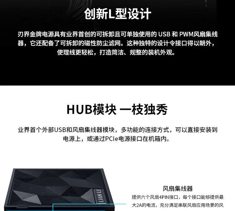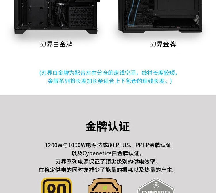 刃界联力Edge 1200W金牌全模组电源(ATX3.1/原生PCI-E5.1/L型设计/可拆滤网/)