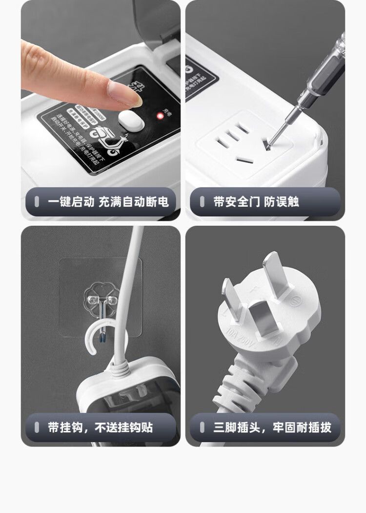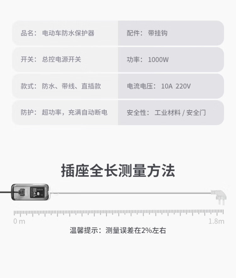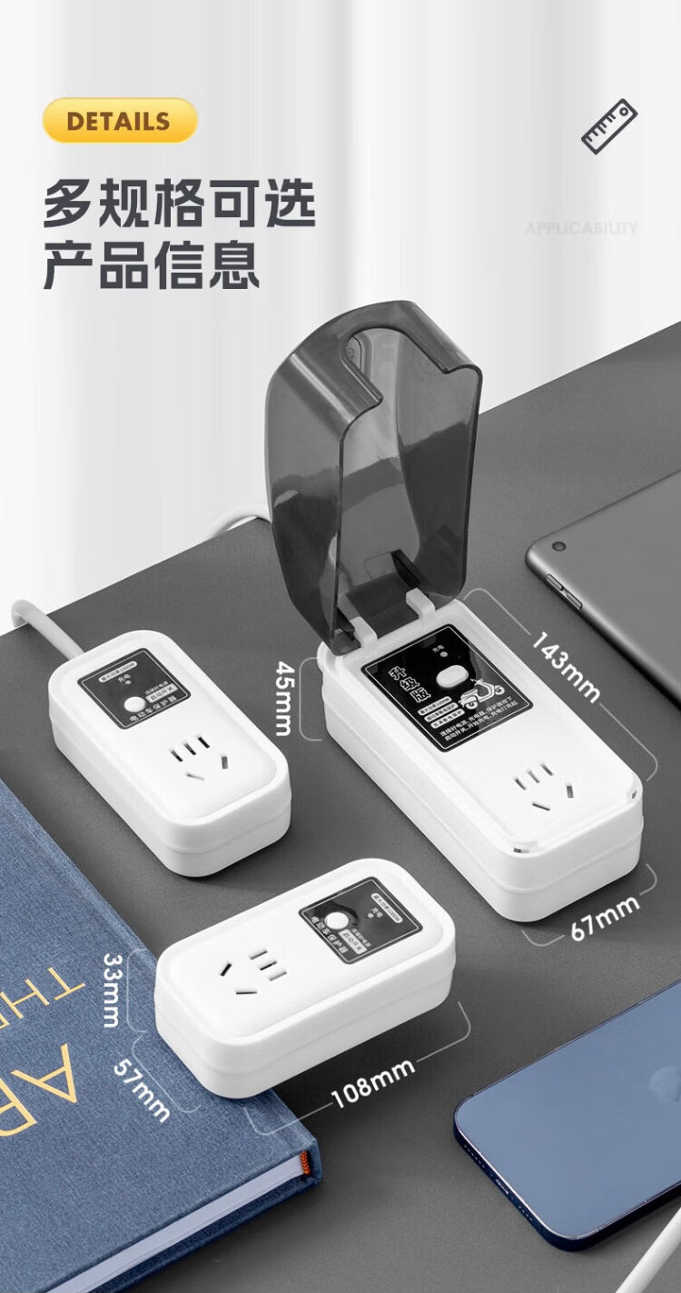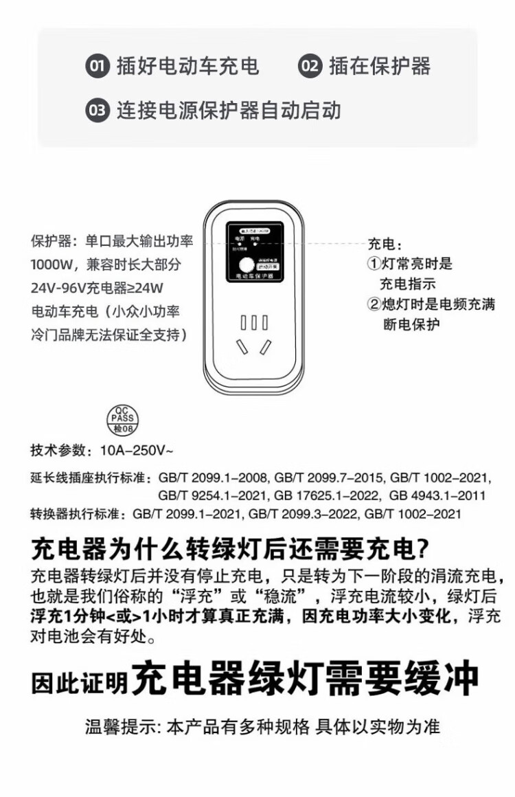 阿乐乐可 【国标20米防水款】电动车充电保护器/充满自动断电/防止过充/防火阻燃/插线板插排接线板