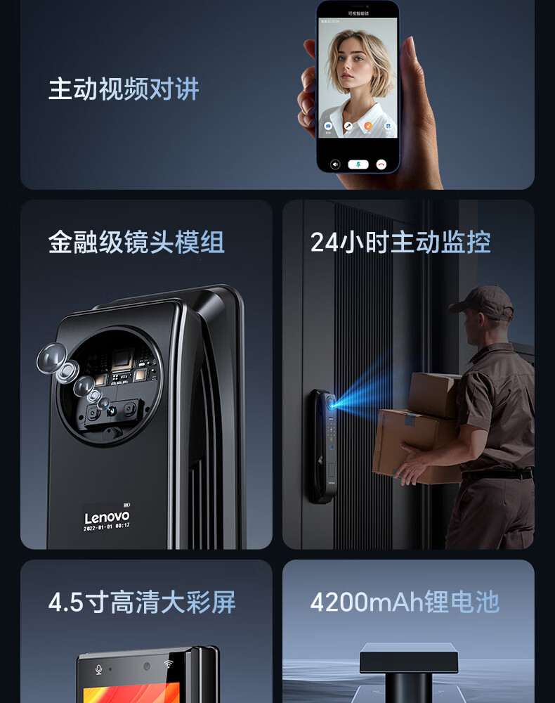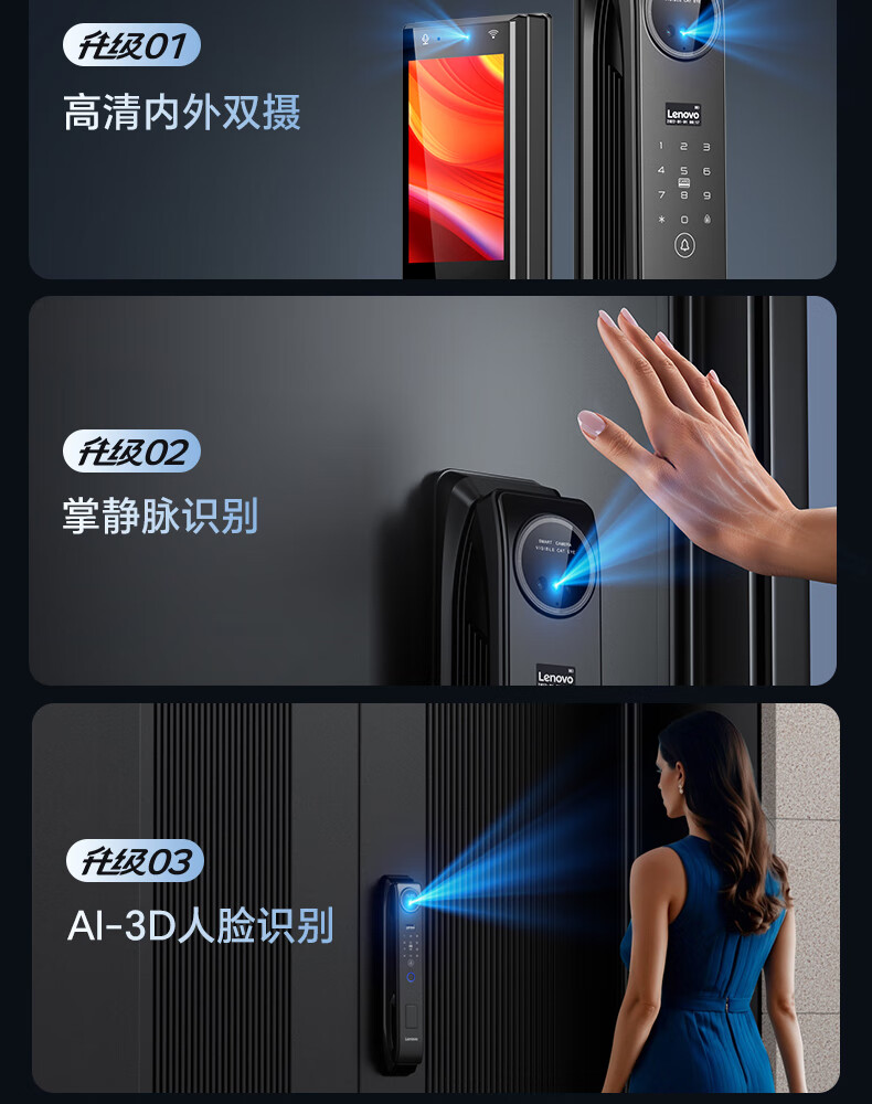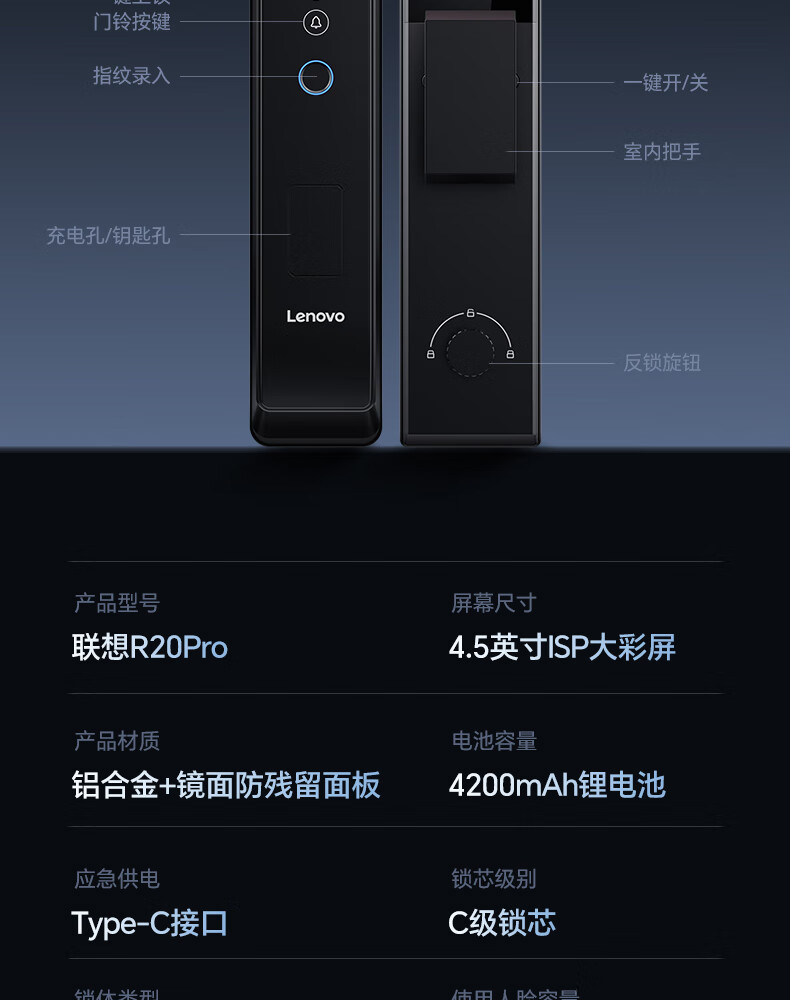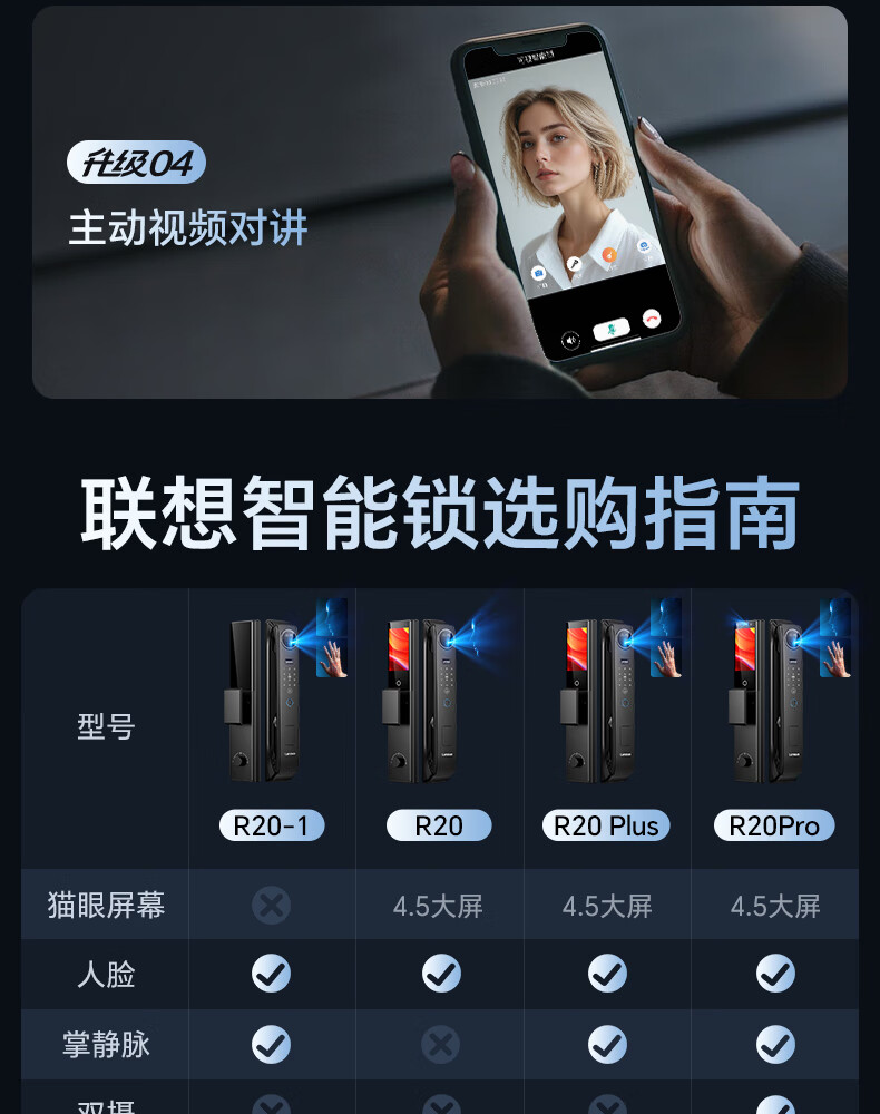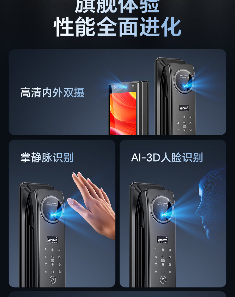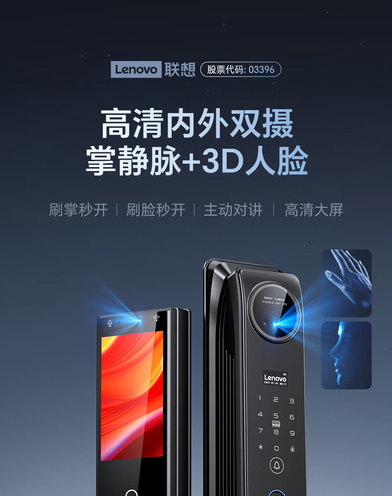 联想R20 Pro 掌静脉 智能门锁 指纹锁 3D人脸识别 智能锁 双摄像 电子锁 入户门 密码锁 电子锁 全自动