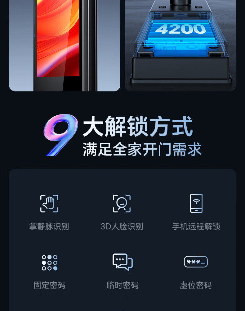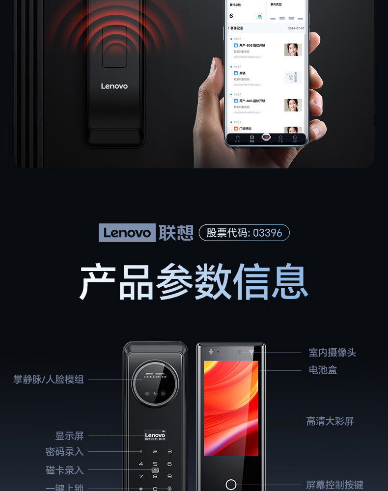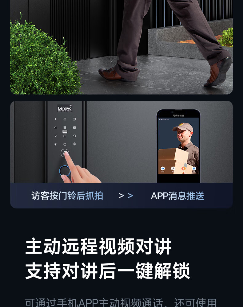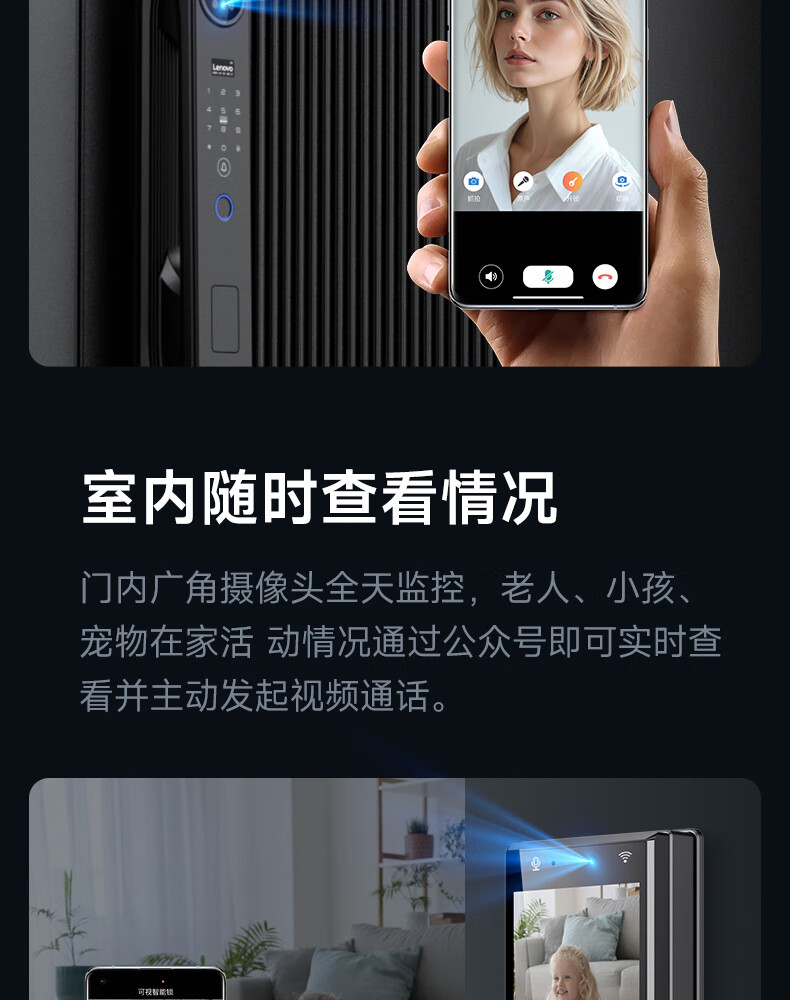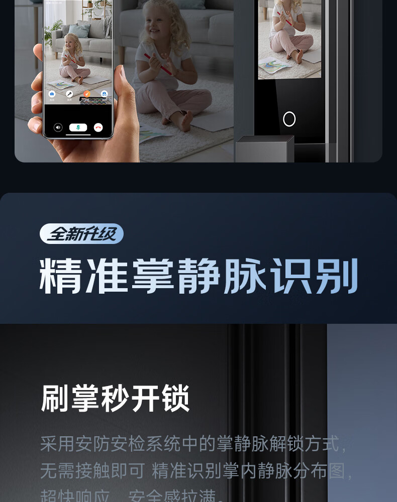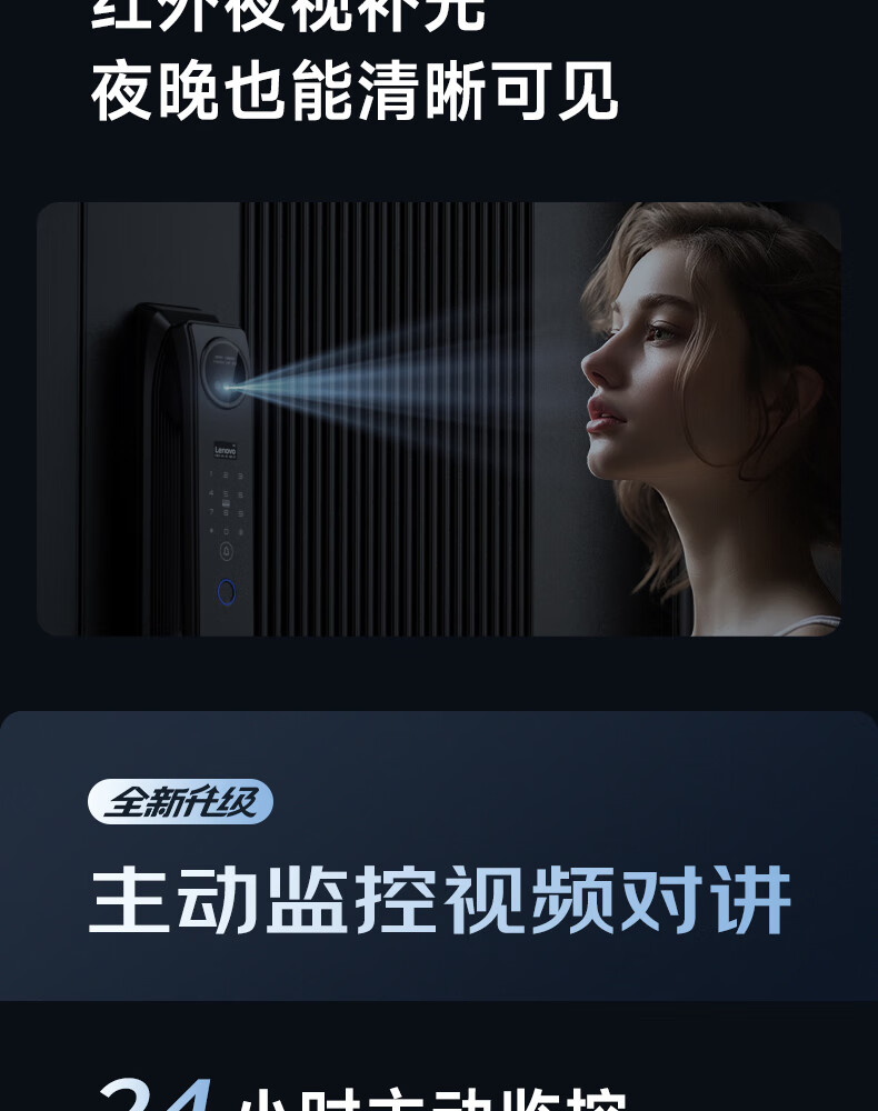 联想R20 Pro 掌静脉 智能门锁 指纹锁 3D人脸识别 智能锁 双摄像 电子锁 入户门 密码锁 电子锁 全自动