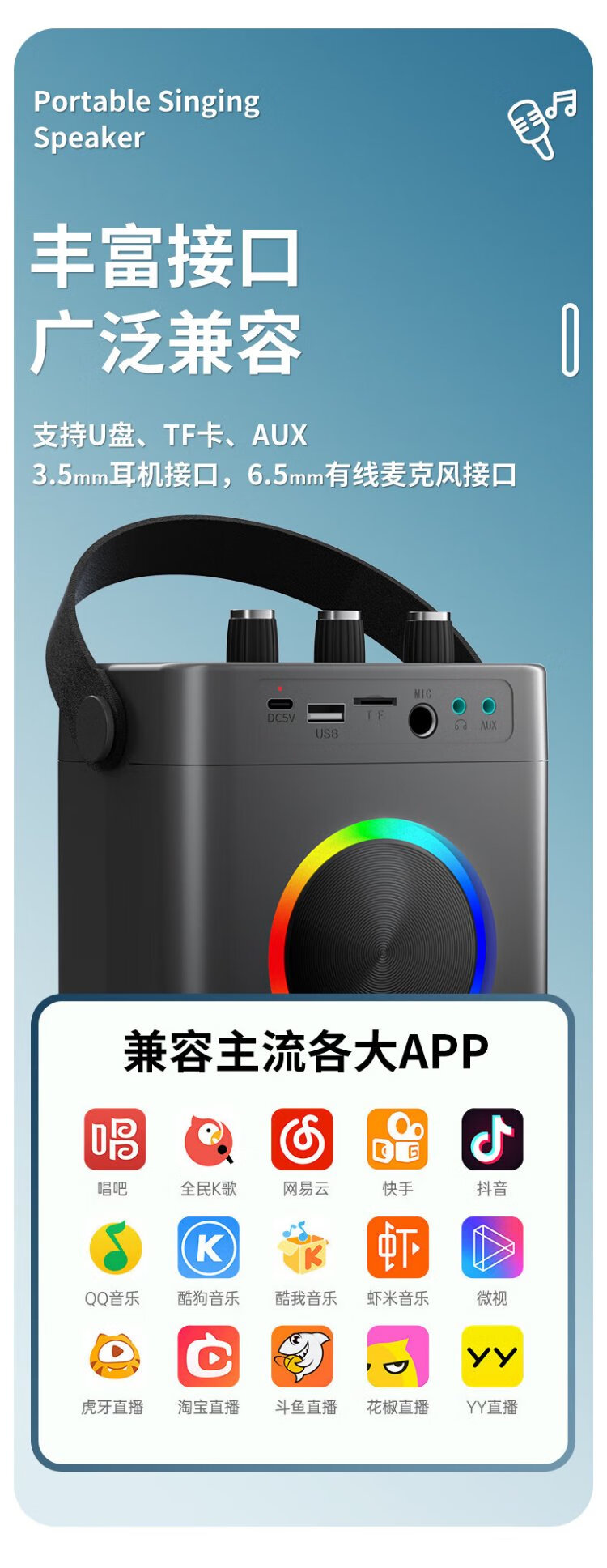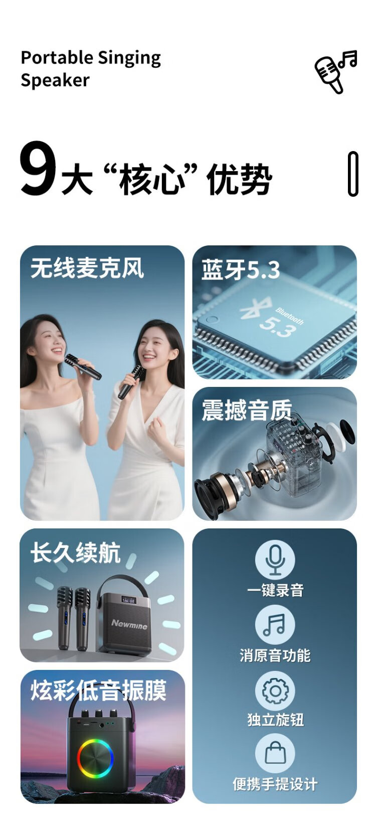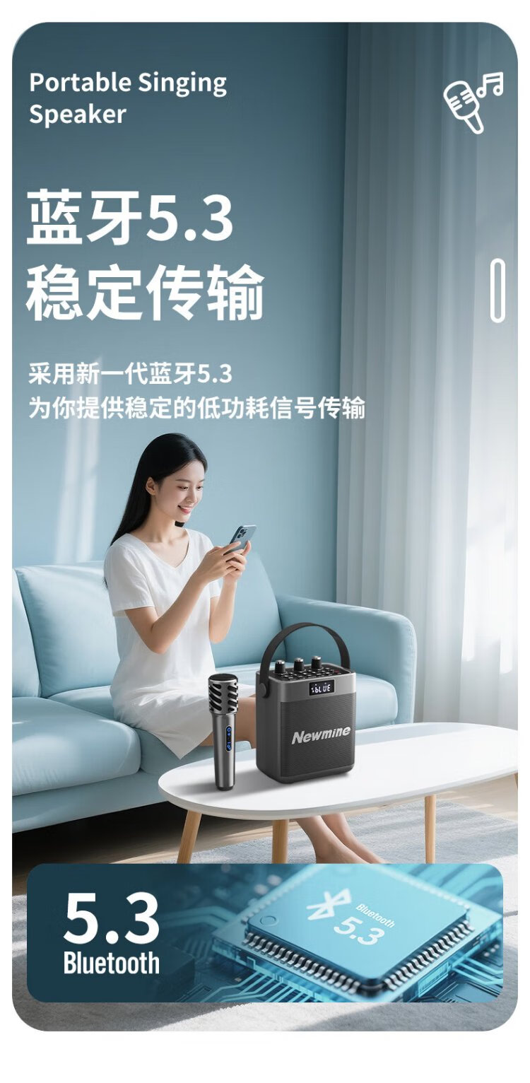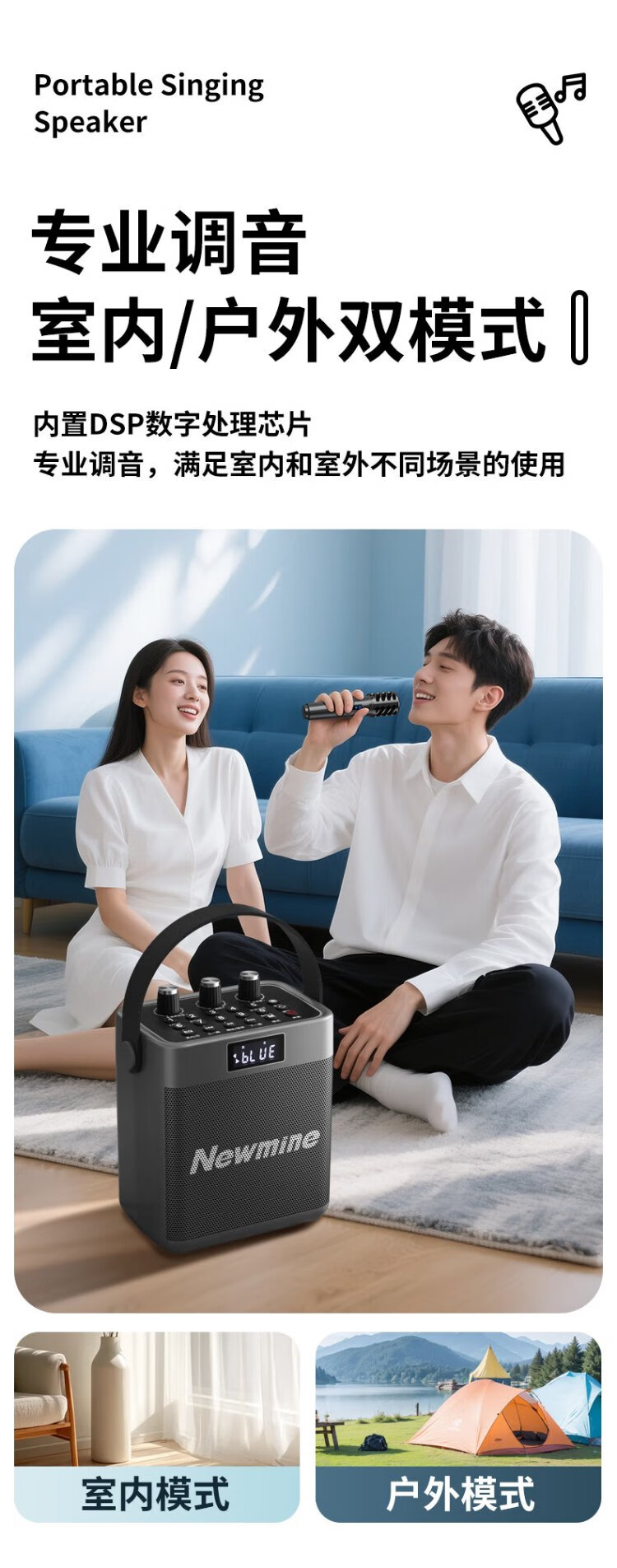 Newmine K519 Bluetooth audio maison karaoké haut-parleur lecteur de musique haute puissance hifi haute qualité sans fil extérieur portable haut-parleur portable cadeau pratique super longue durée de vie de la batterie
