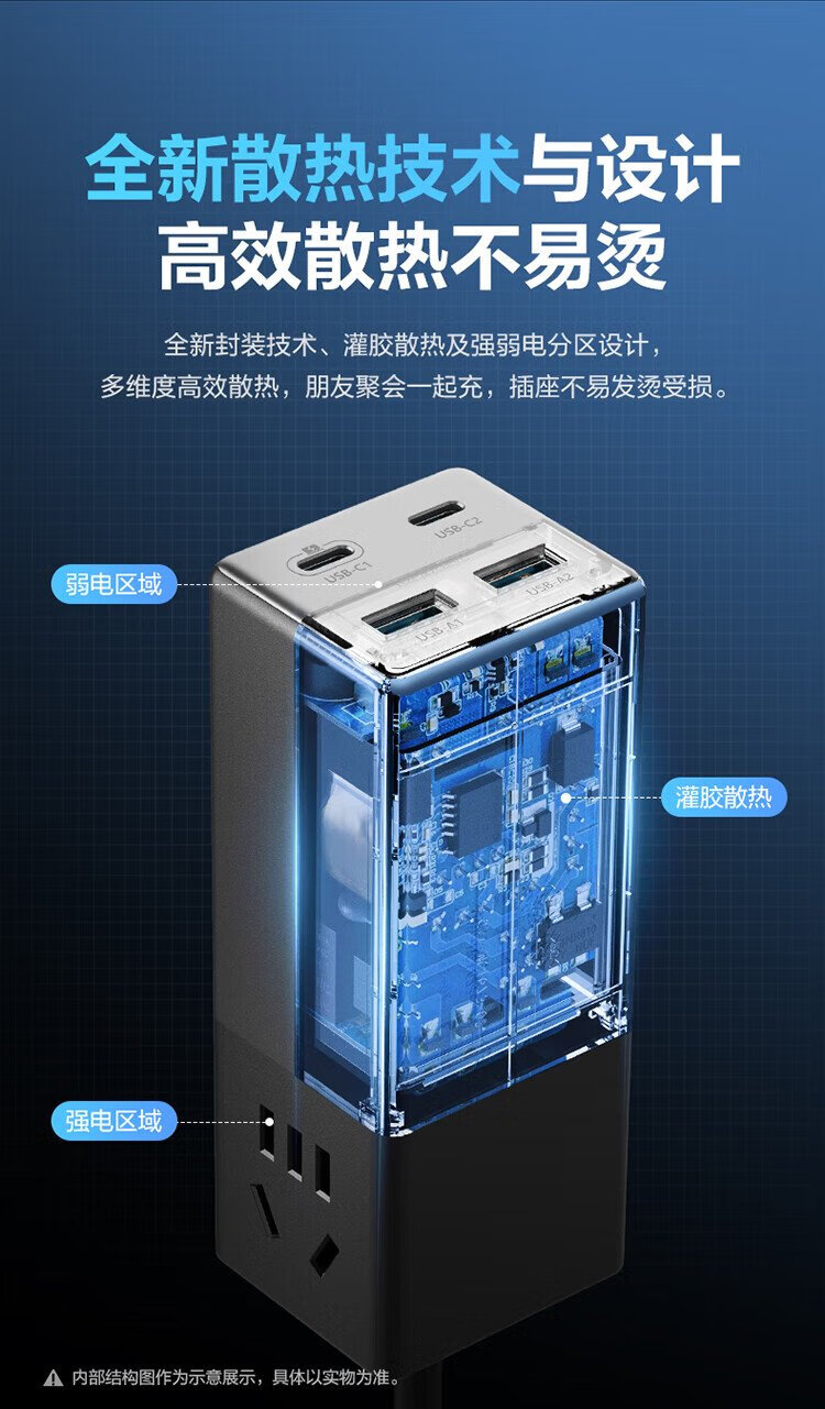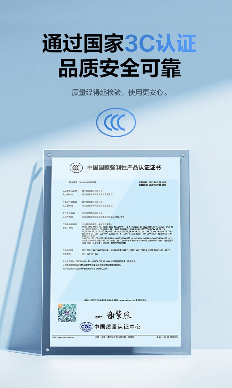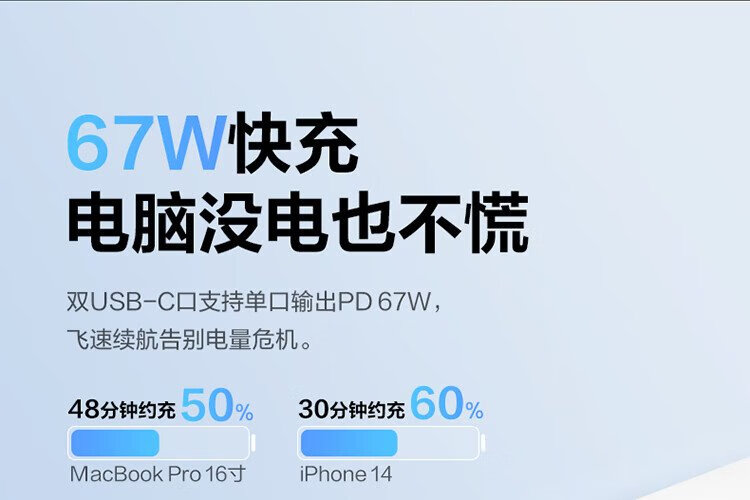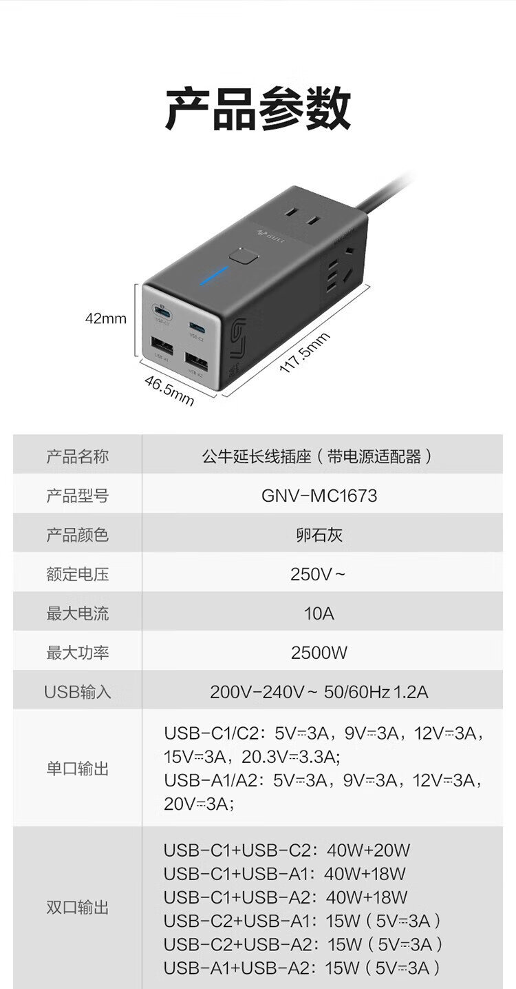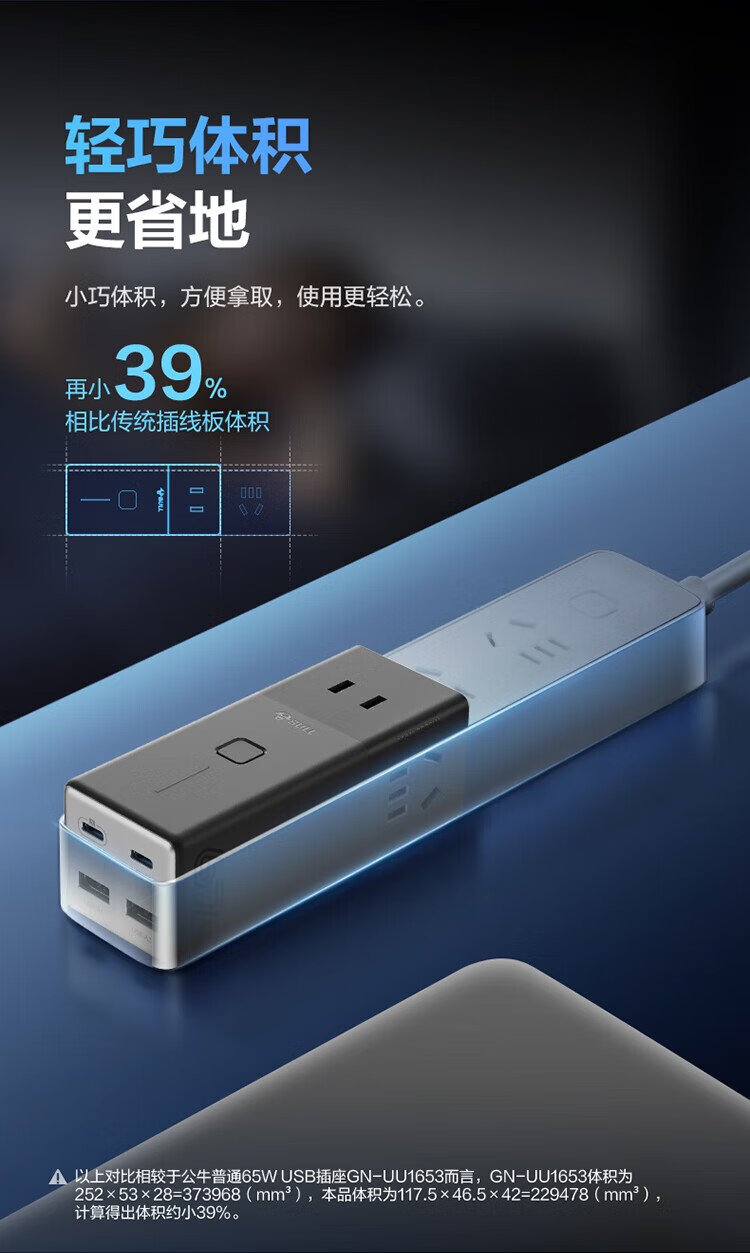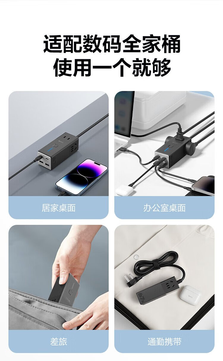 公牛(BULL)氮化镓67W快充笔记本插座/USB插线板便携插排3C认证 适用iphone17 总控开关2C2A+3位全长3米灰色