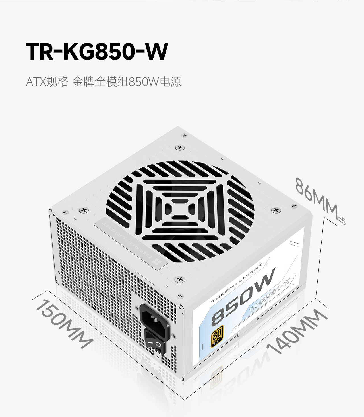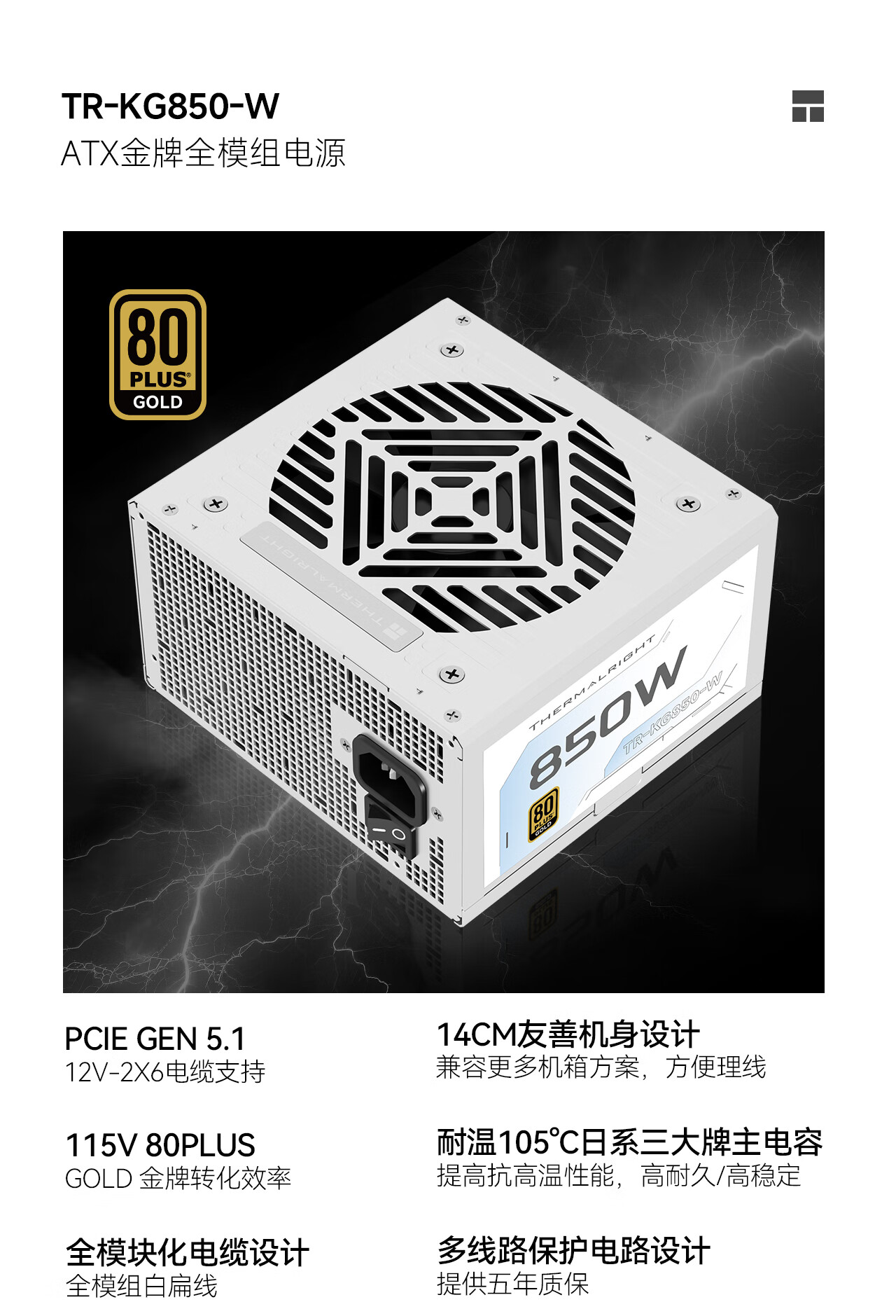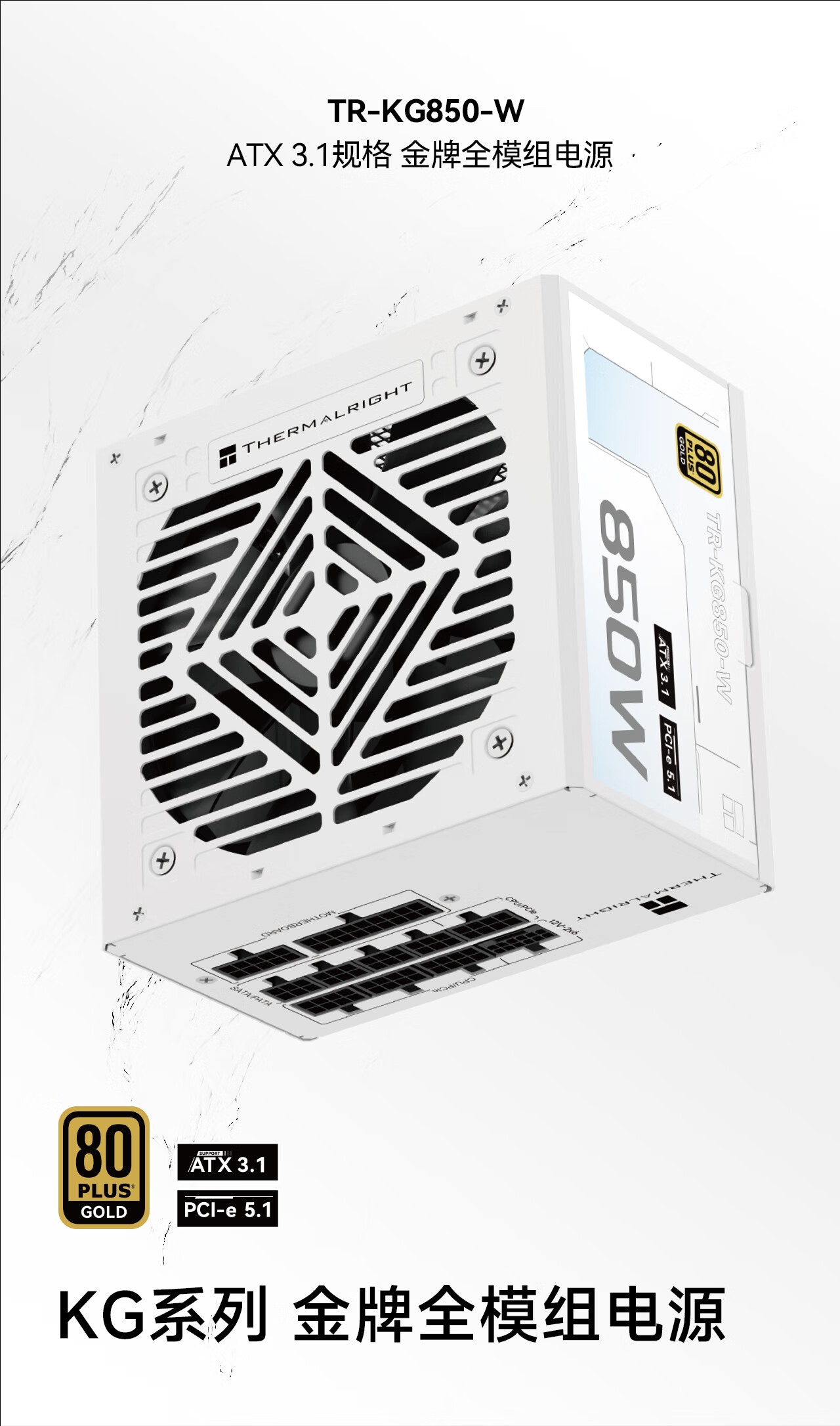 Thermalright(利民) 额定850W TR-KG850-W ATX3.1电源 金牌电源 原生PCIE5.1全模组电源 日系主电容 14CM小电源
