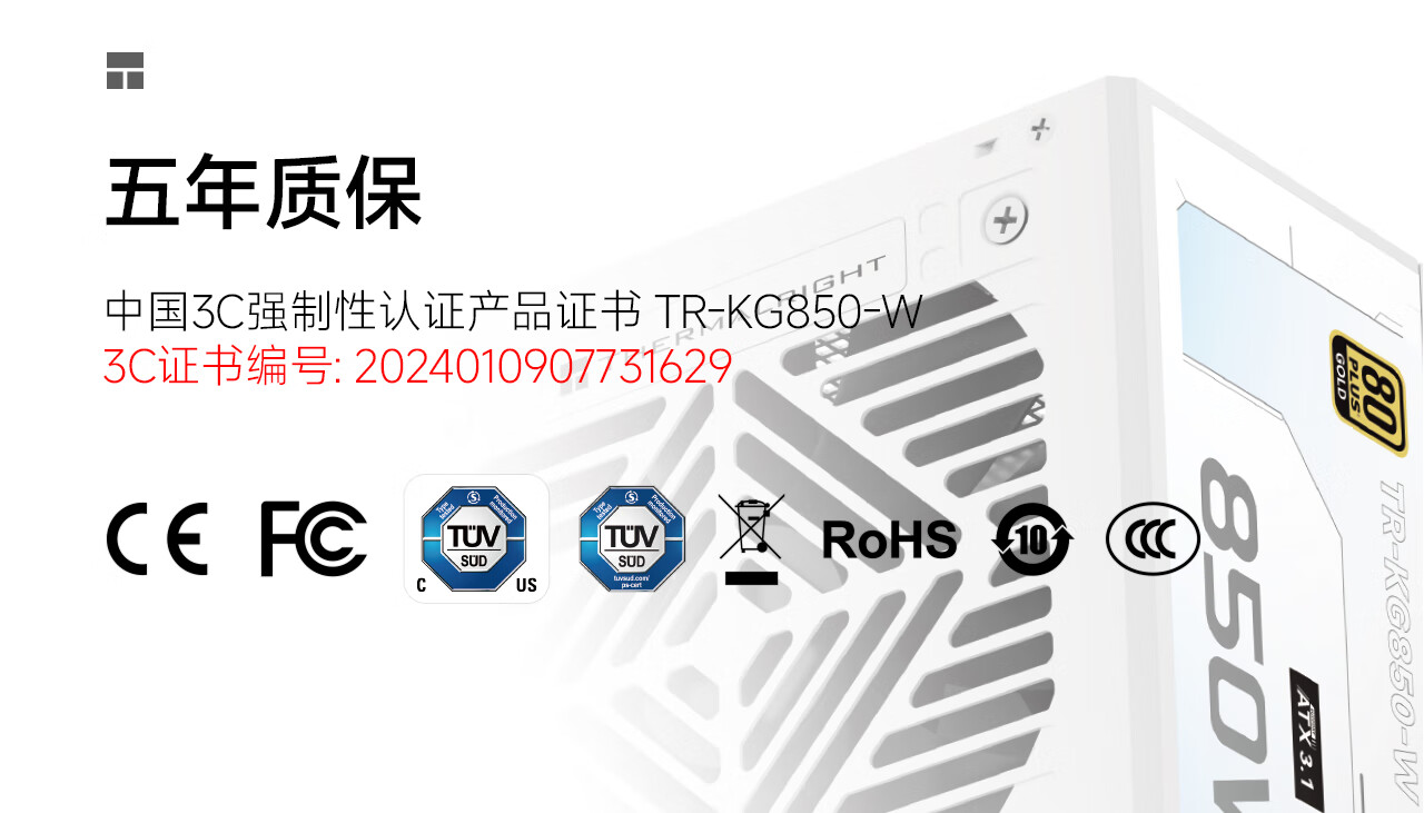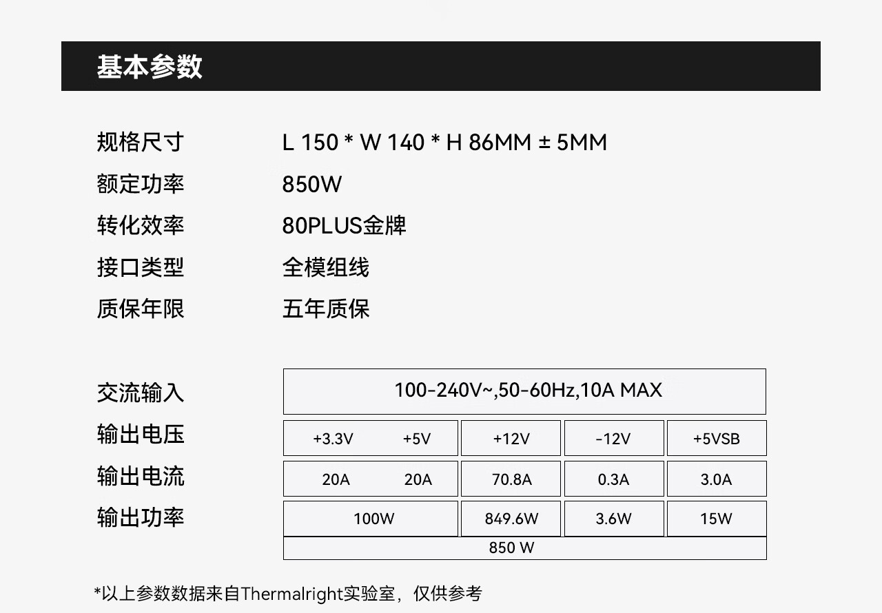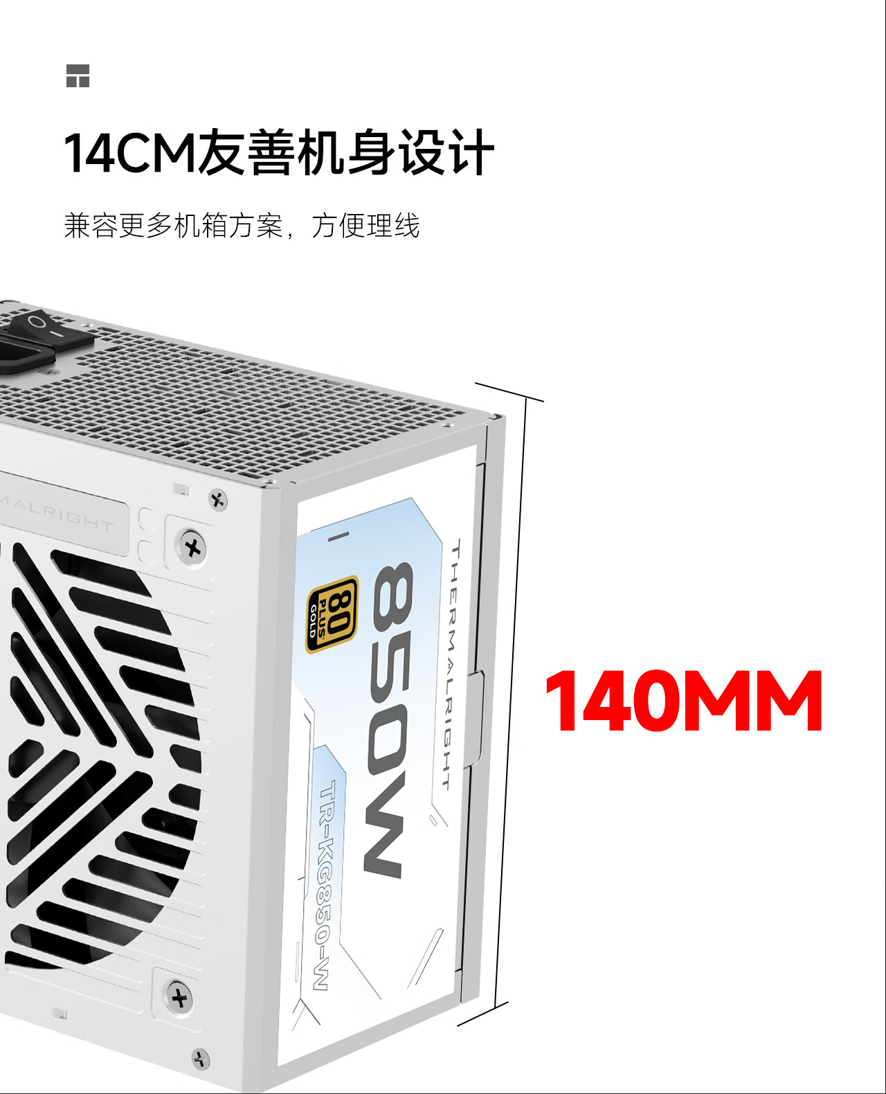 Thermalright(利民) 额定850W TR-KG850-W ATX3.1电源 金牌电源 原生PCIE5.1全模组电源 日系主电容 14CM小电源