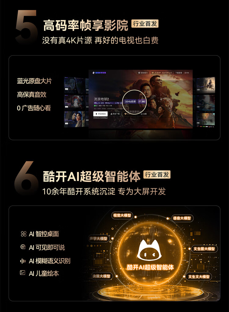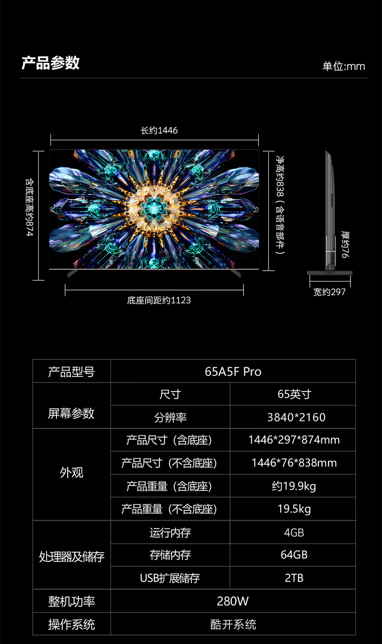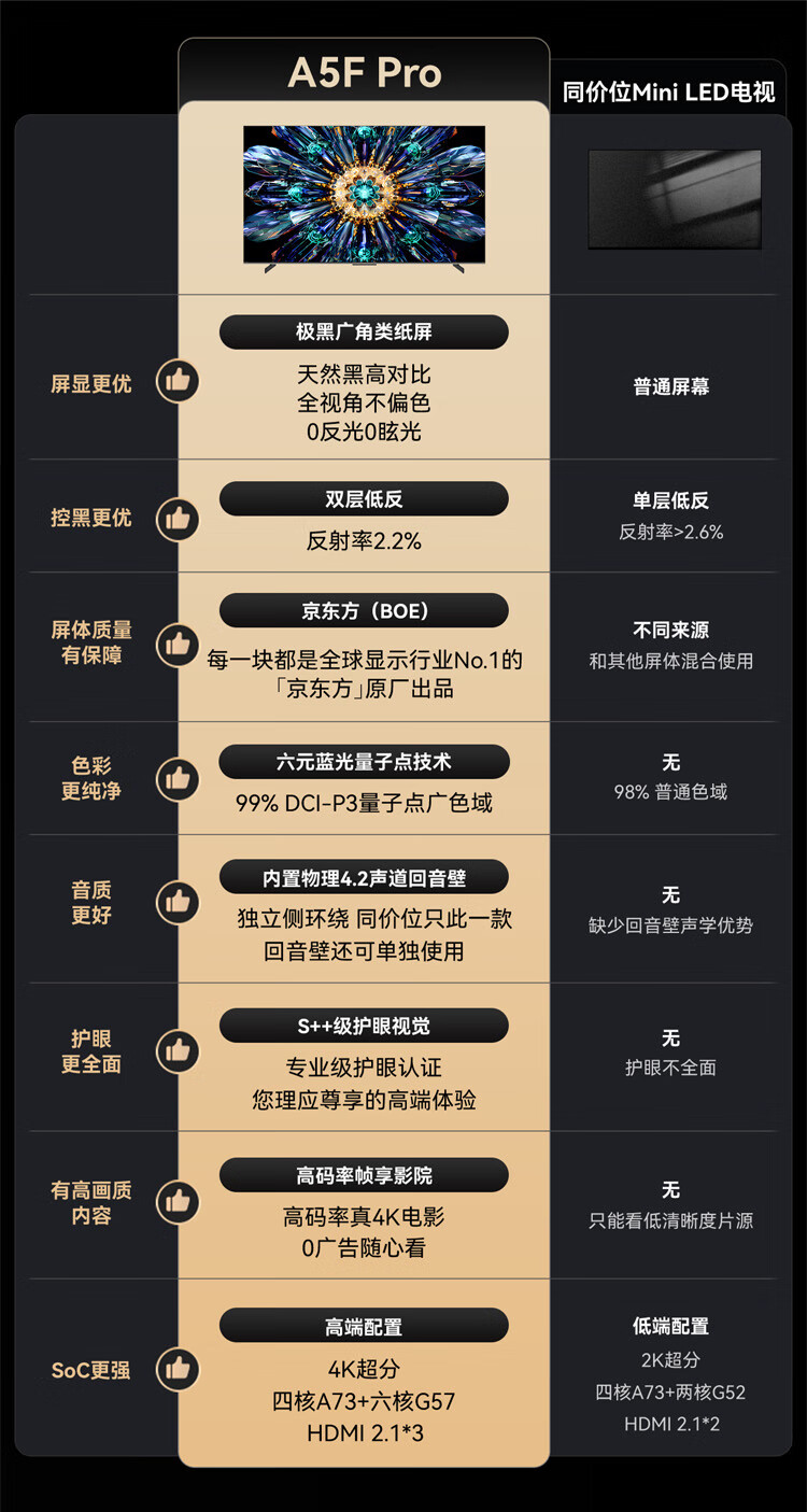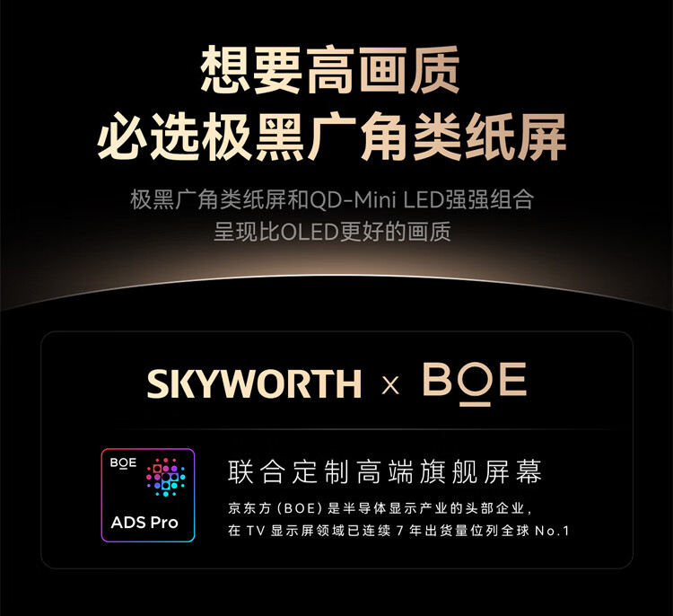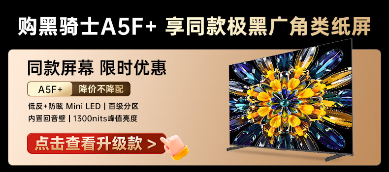 Skyworth TV Black Knight A5F Pro 65-inch 612 partition QD-Mini LED ultra-black wide-angle paper screen Harman echo wall state-subsidized a5f+ upgrade