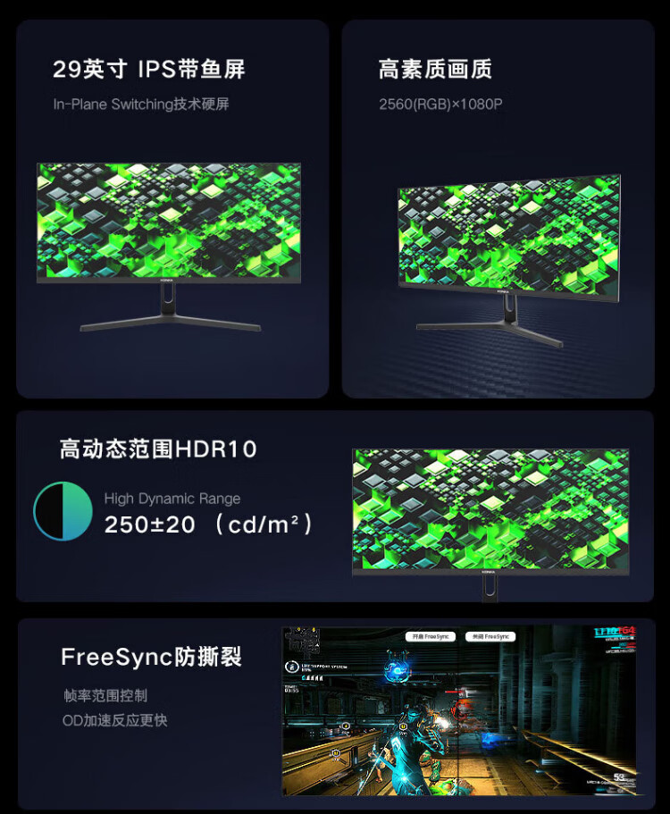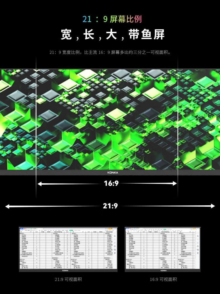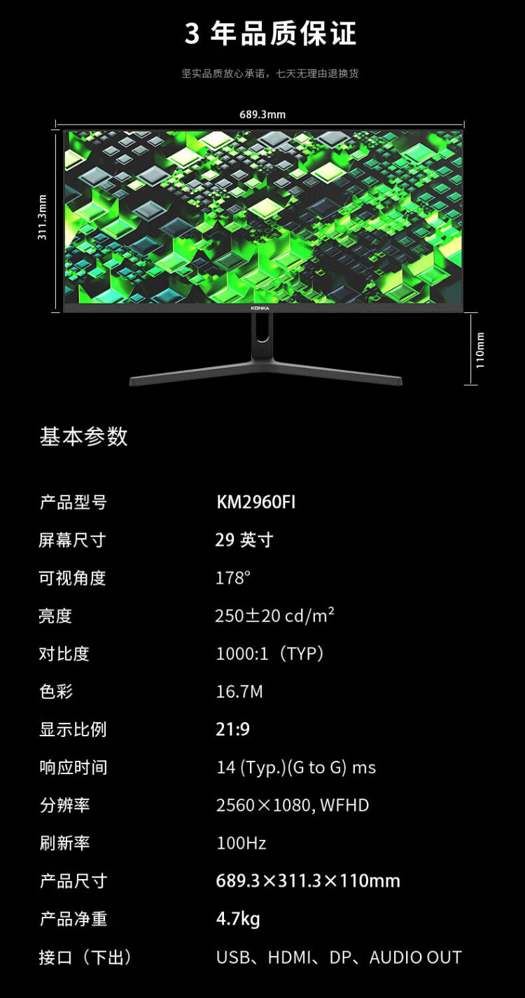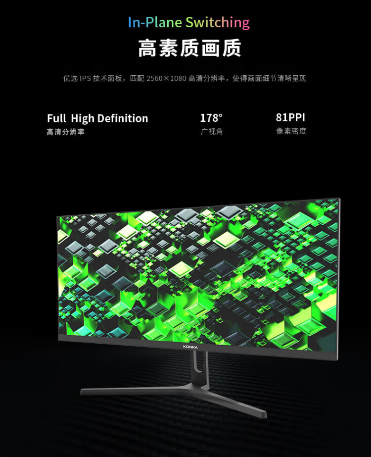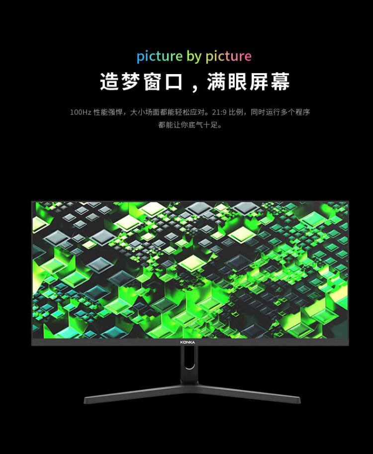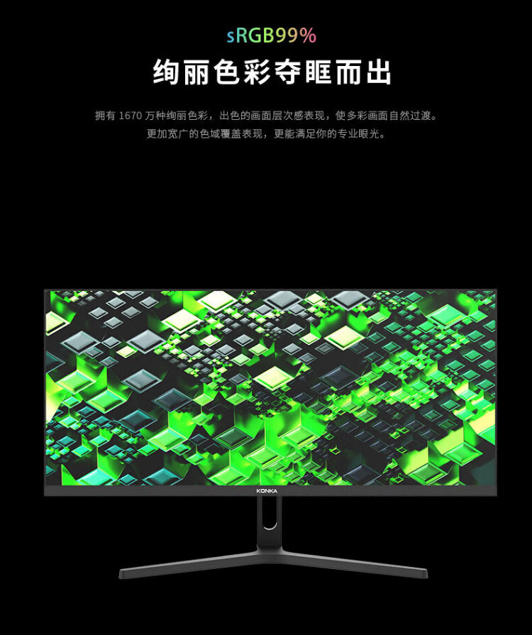 KONKA 29-inch hairtail screen quasi-2K 100Hz high-brush monitor low blue light wide viewing angle IPS e-sports gaming office computer display KM2960FI