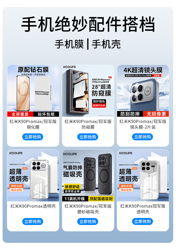 KOOLIFE is suitable for Redmi K90 Promax mobile phone case, Xiaomi Redmi k90promax mobile phone protective cover, lens all-inclusive, simple transparent soft shell, fades fingerprints, outer back shell