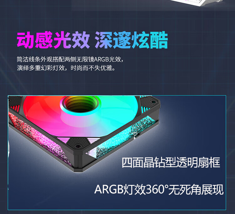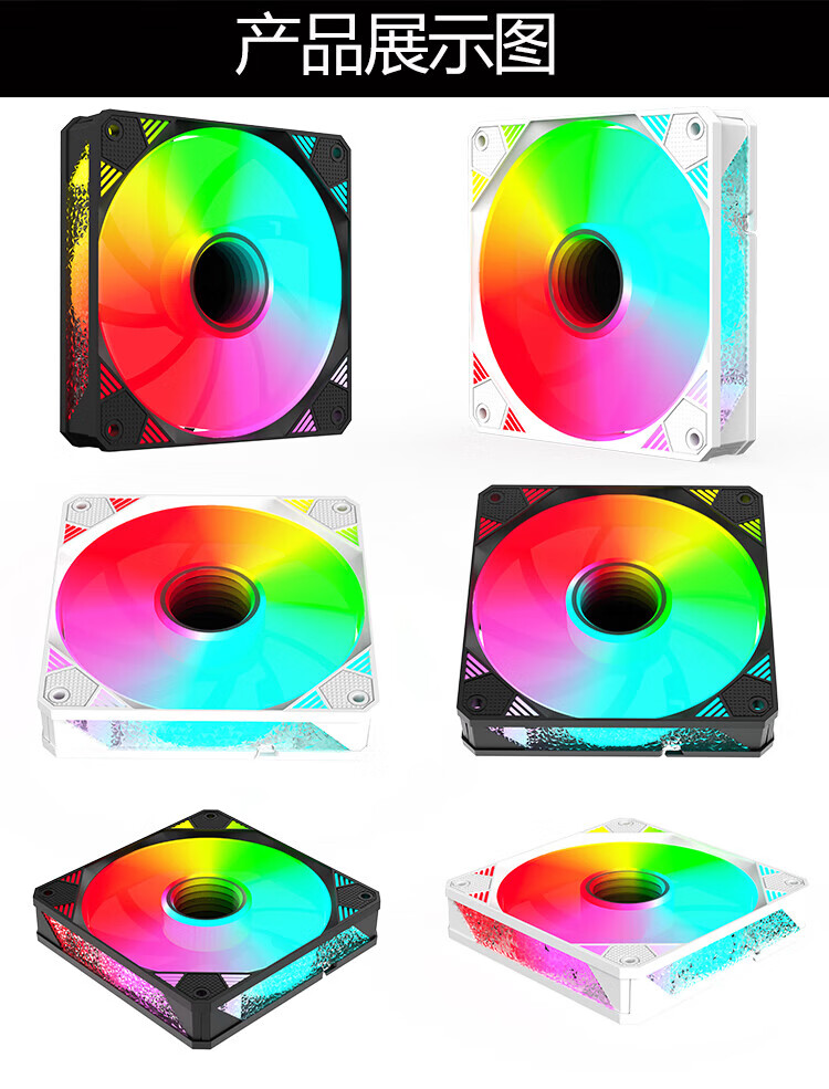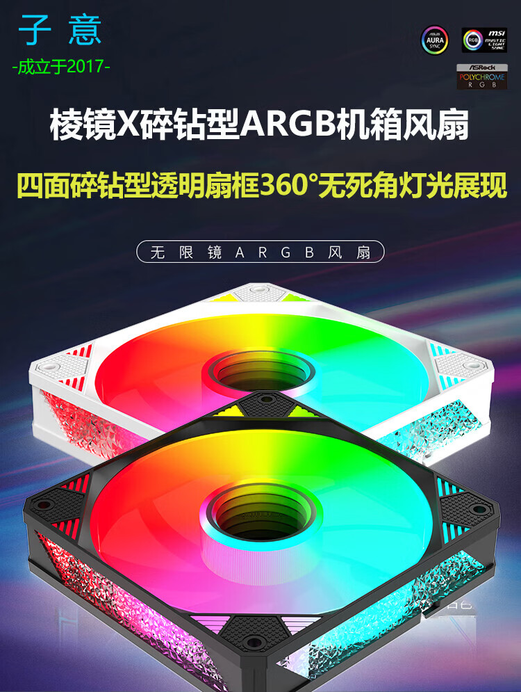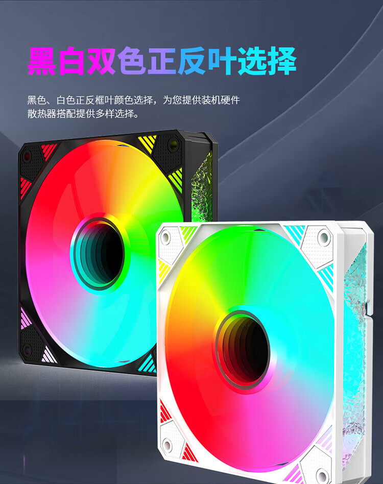 子意棱镜X电脑机箱风扇12cm白色反叶ARGB神光同步降噪风扇ZY-640