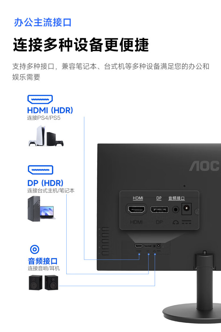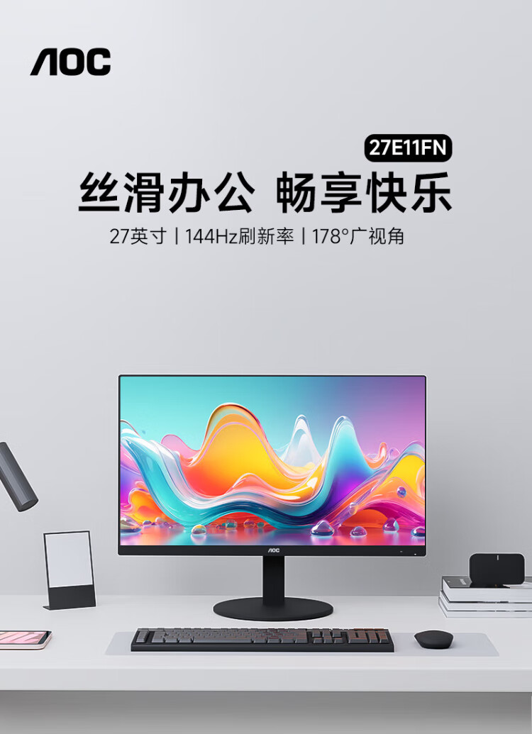 AOC-Monitor 27-Zoll-144-Hz-High-Bürsten-Büro-Spielcomputer-Bildschirm-Hardware, niedriges blaues Licht, Desktop-Erweiterung, Notebook, externer Erweiterungsbildschirm 27E11FN