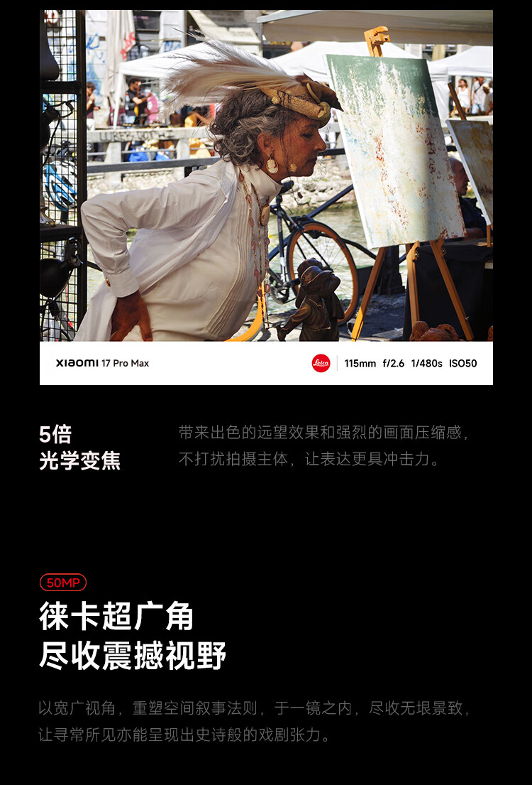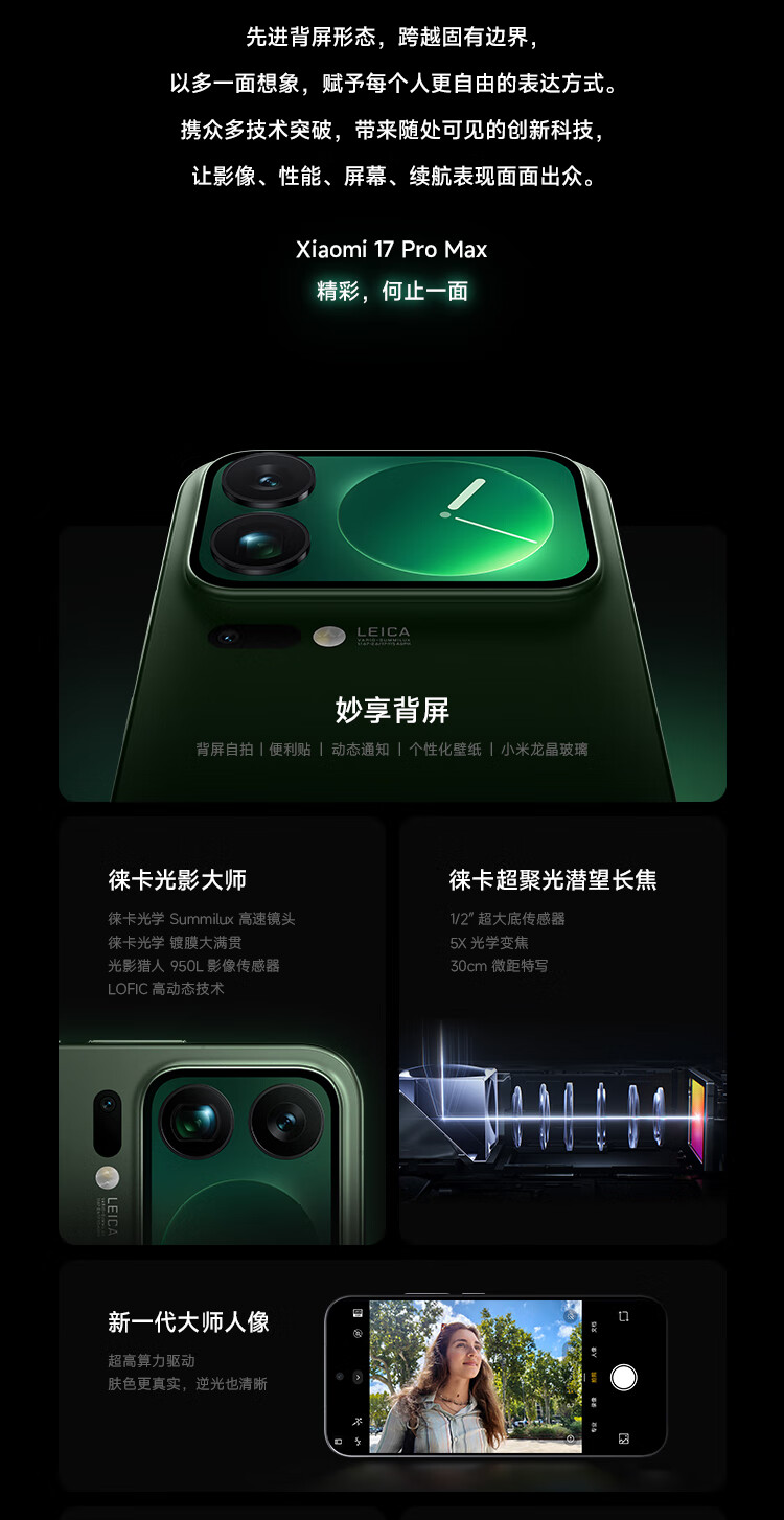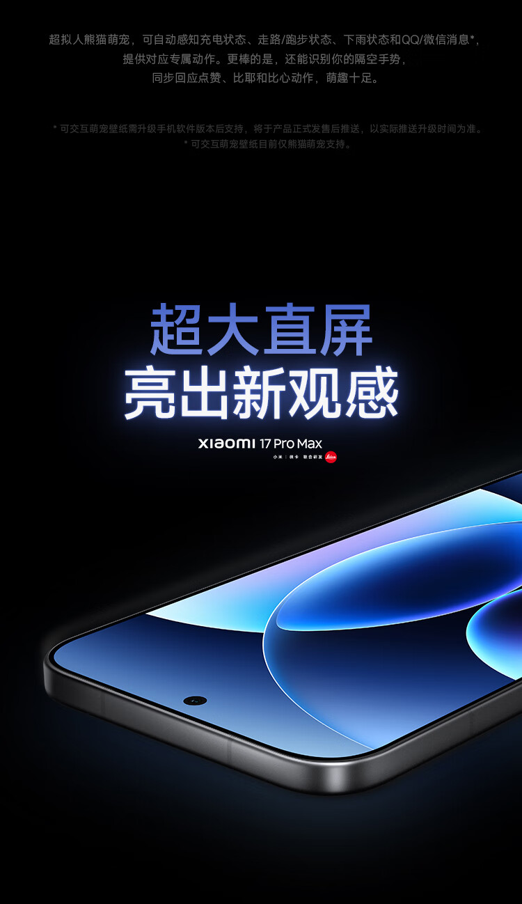 Xiaomi (MI) Xiaomi Mi 17 Pro Max Miaoxiang-Rückbildschirm, 5. Generation, Snapdragon 8 Extreme Edition, 7500 mAh, Xiaomi Jinshajiang-Akku, Schwarz, 16 GB + 1 TB, 5G-Handy