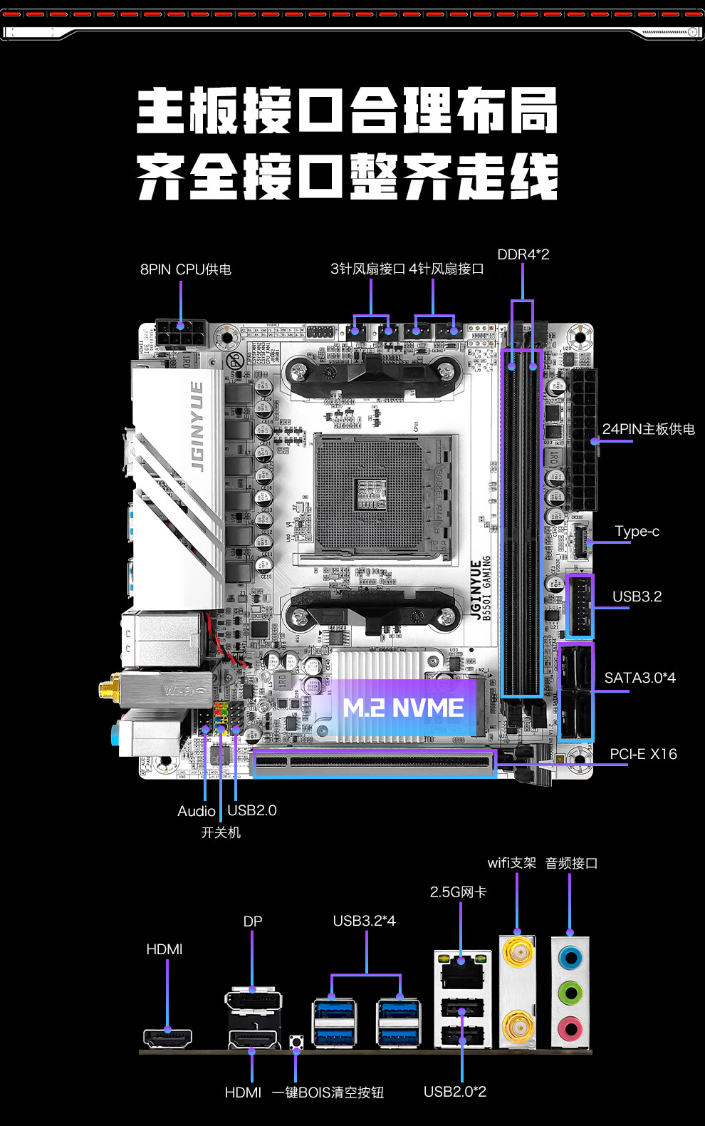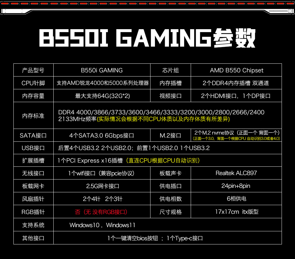 Jingyue B550i GAMING mini ITX motherboard DDR4 memory supports AM4 Ryzen 5600GT/5600/5700X