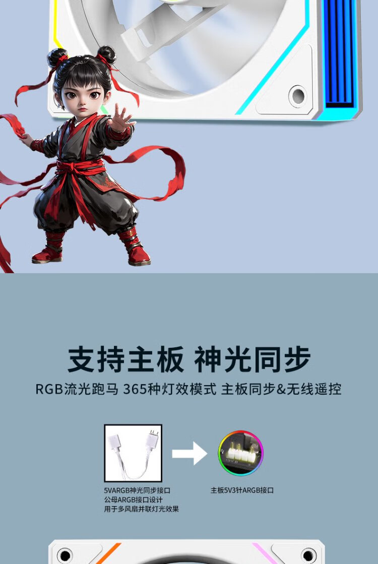 Wanjia Prism 8Pro ARGB fan black reverse blade chassis cooling 12CM fan divine light synchronization 5V3-pin ARGB PWM temperature control speed regulation