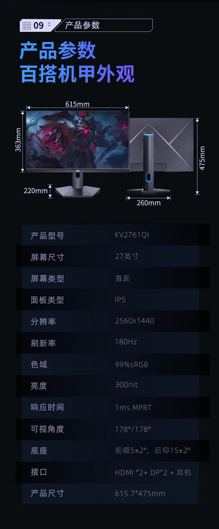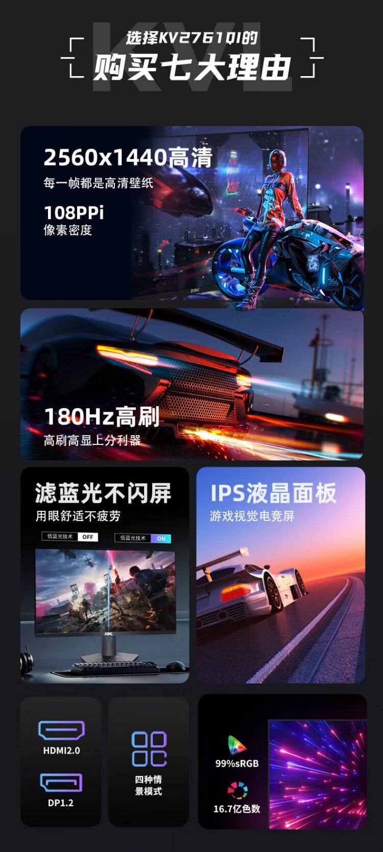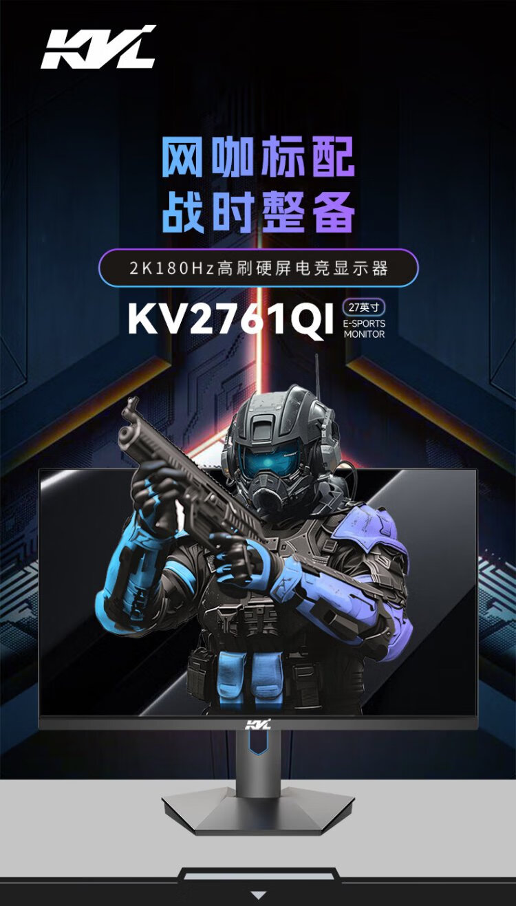 KVL 27-inch 2K HD 180Hz high brush monitor FastIPS wide color gamut low blue light flicker-free 300nit gaming e-sports monitor KV2761QI