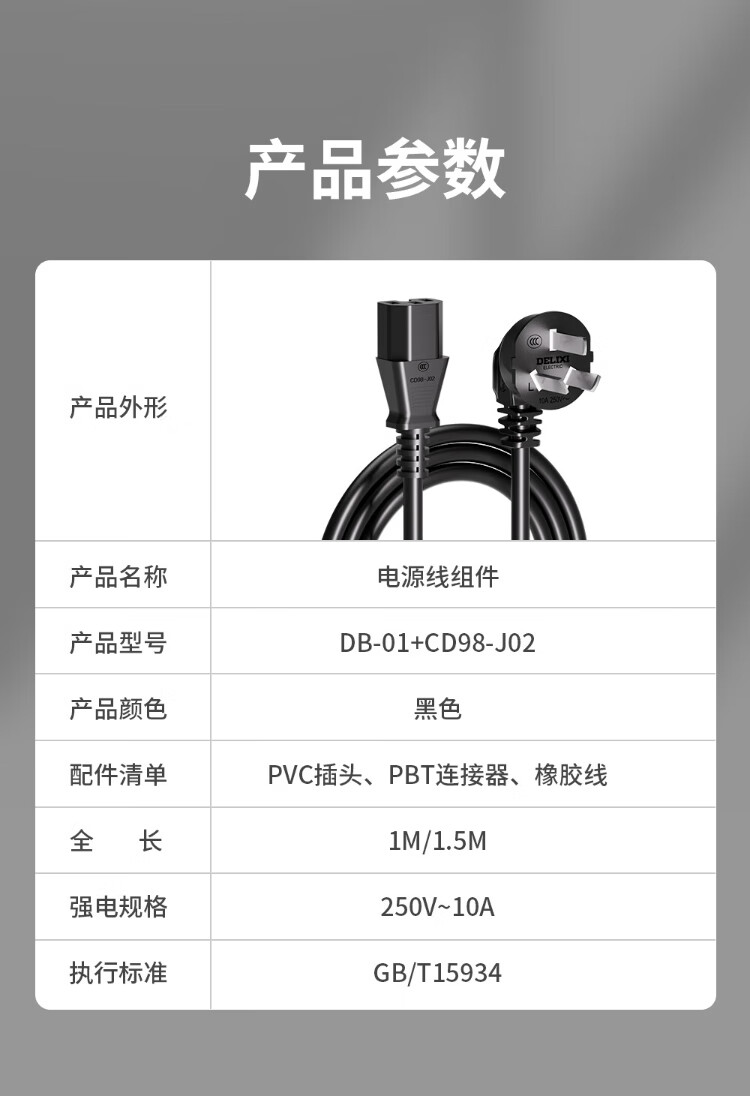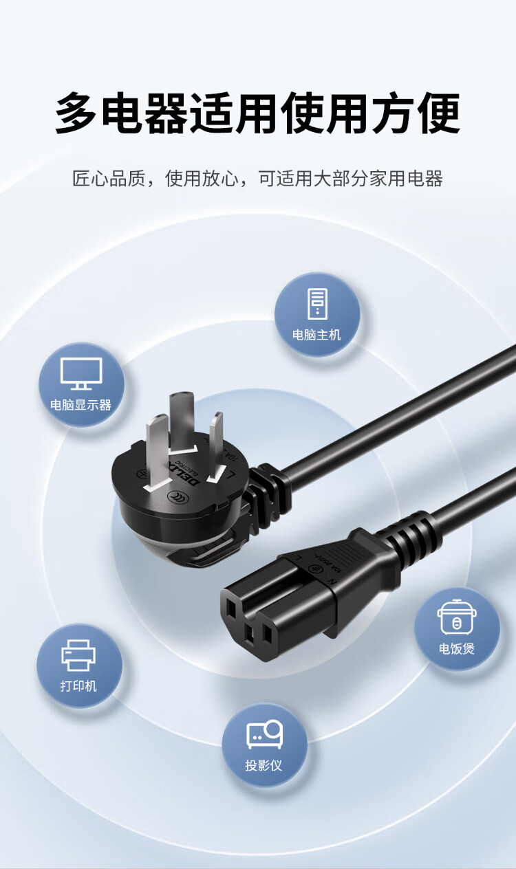 Delixi nationaler Standard Netzkabel Computer Desktop Host Monitor Drei-Loch-Kernprodukt Universaldrucker Reiskocher elektrischer Schnellkochtopf Wok elektronische Waage Sojamilchmaschine 1 Meter