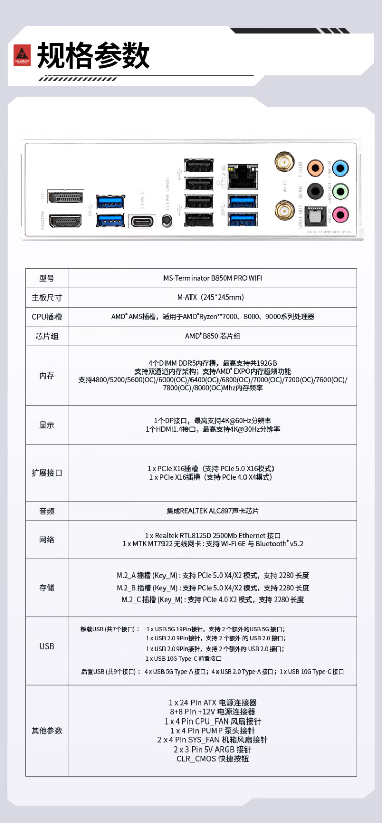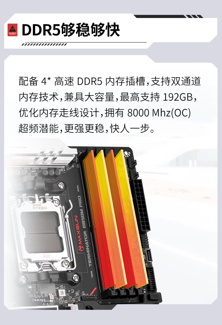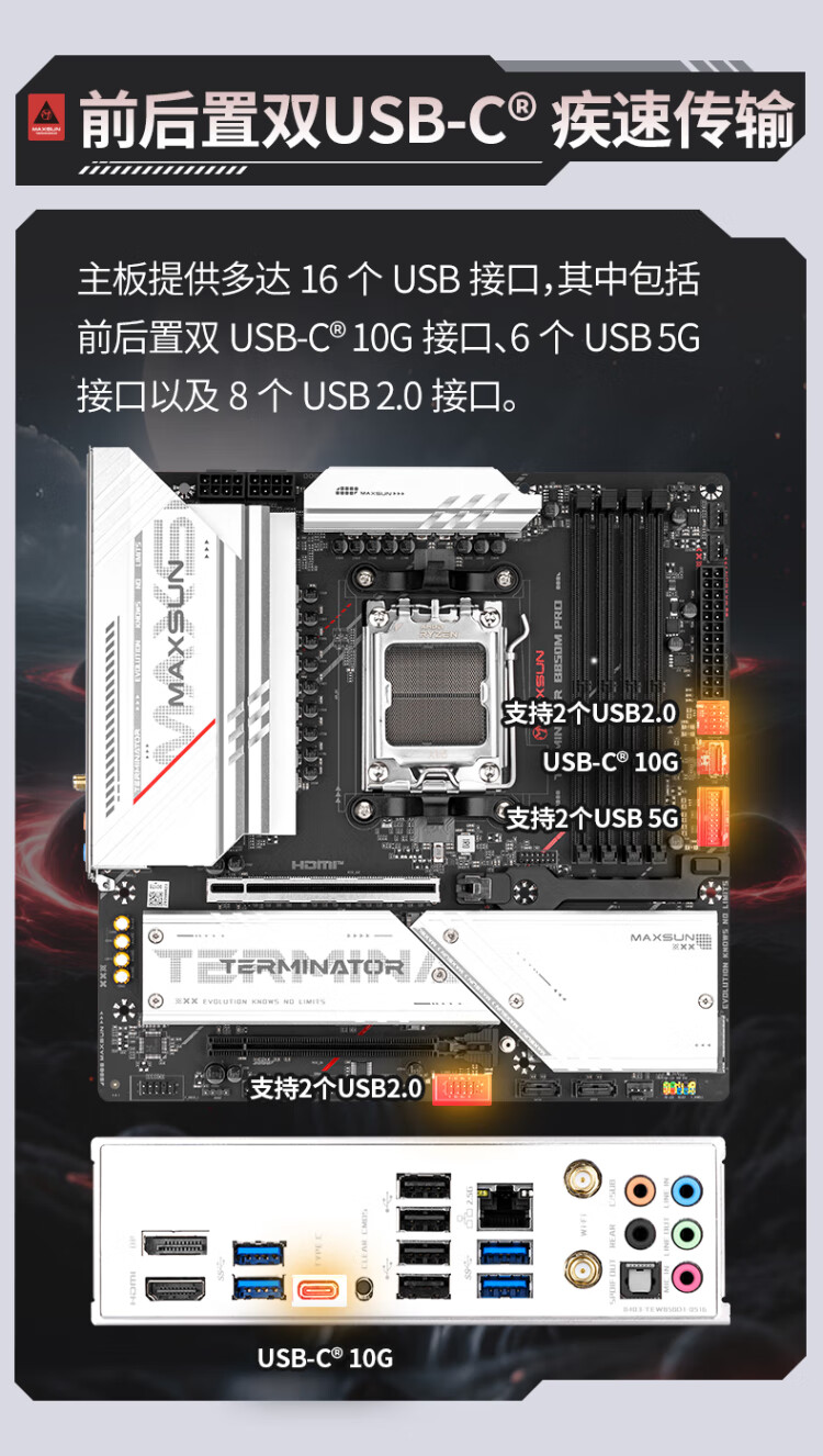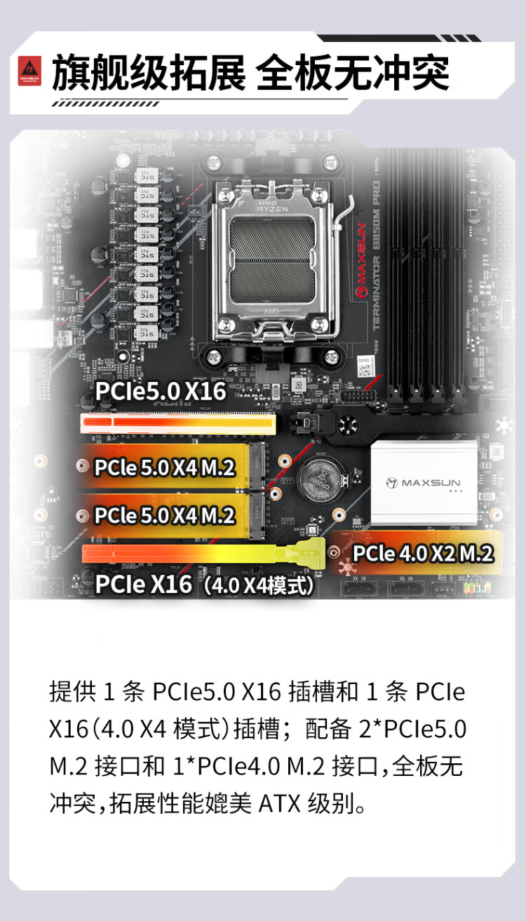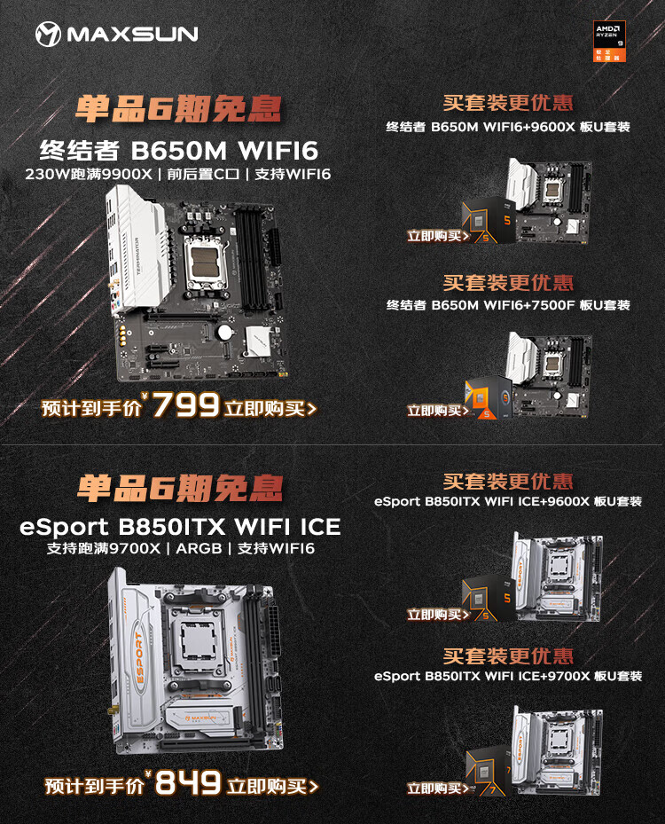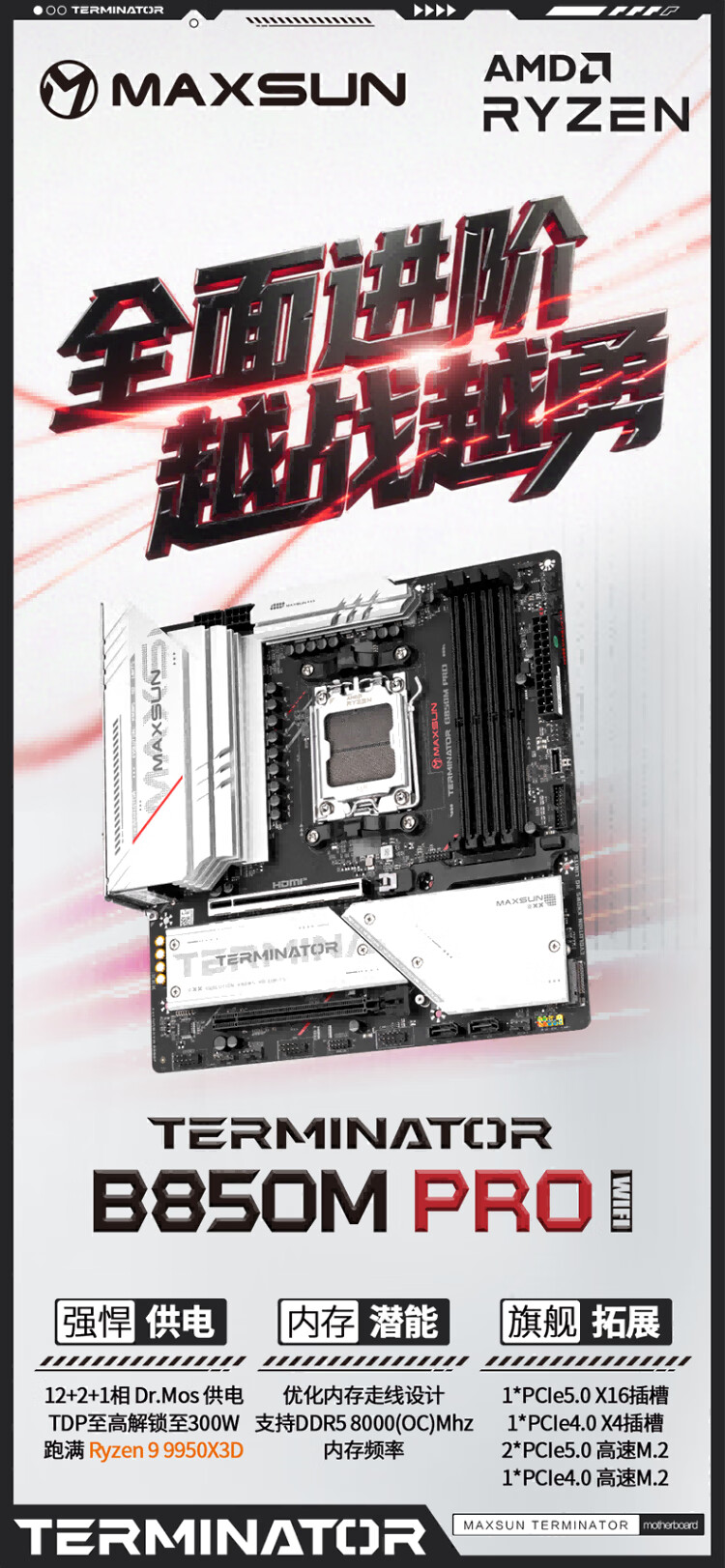MAXSUN Terminator B850M PRO WIFI computer motherboard supports DDR5 CPU 9950X/9800X3D/9700X/9600X/(AMD B850/AM5 interface)