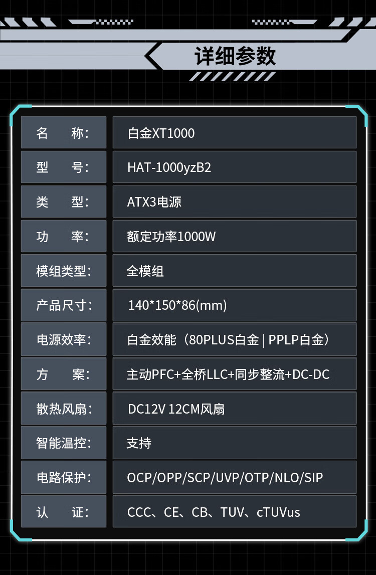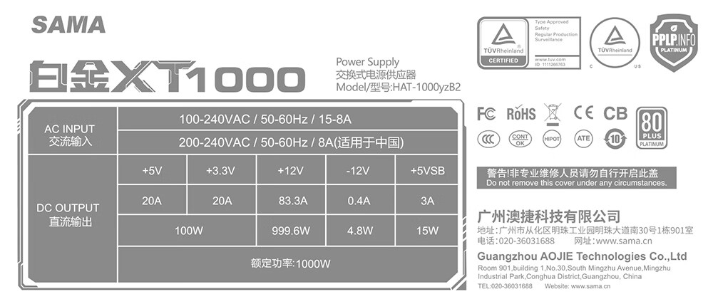 SAMA Platinum XT1000W weißes ATX3-Computer-Netzteil 80PLUS/PPLP-Doppelplatin-Zertifizierung/12V-2x6/Taiwanischer großer Kondensator/geprägtes Kabel/stabilisierte 5090D-Grafikkarte